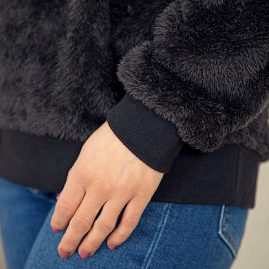 Plush Sherpa Fleece Paw Print Crewneck Pullover