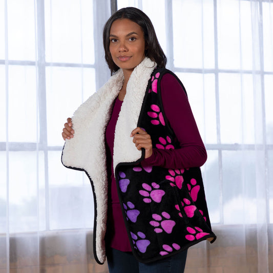 Paw Print Plush Sherpa Fleece-Lined Vest