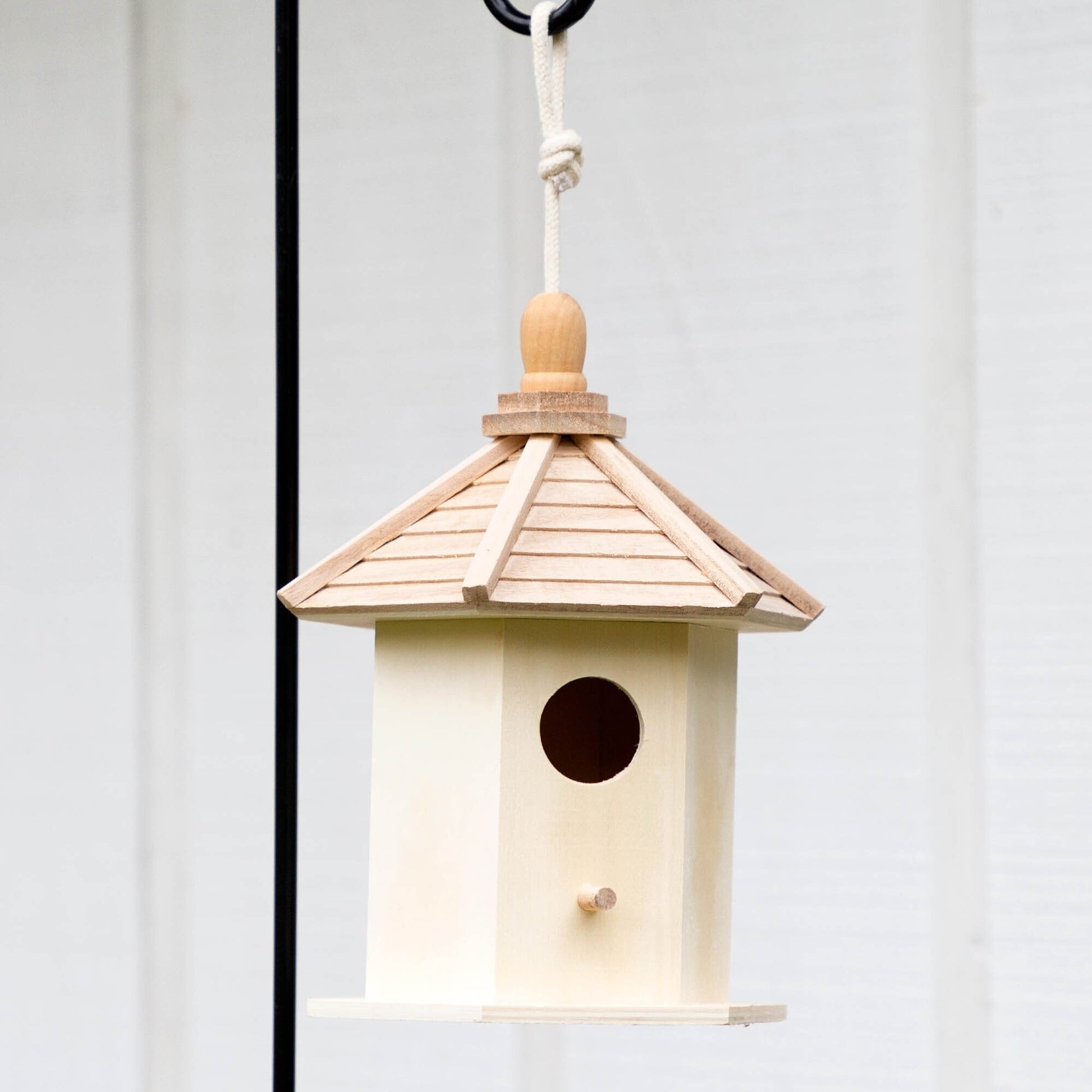 - A medium shelter can be hung from a hook, tree or nailed to a post for use by several birds. With a sturdy roof, it provides protection from the elements for these delicate creatures. A small post provides an easy perch for the birds to look out from and allows for easy exit and entry.