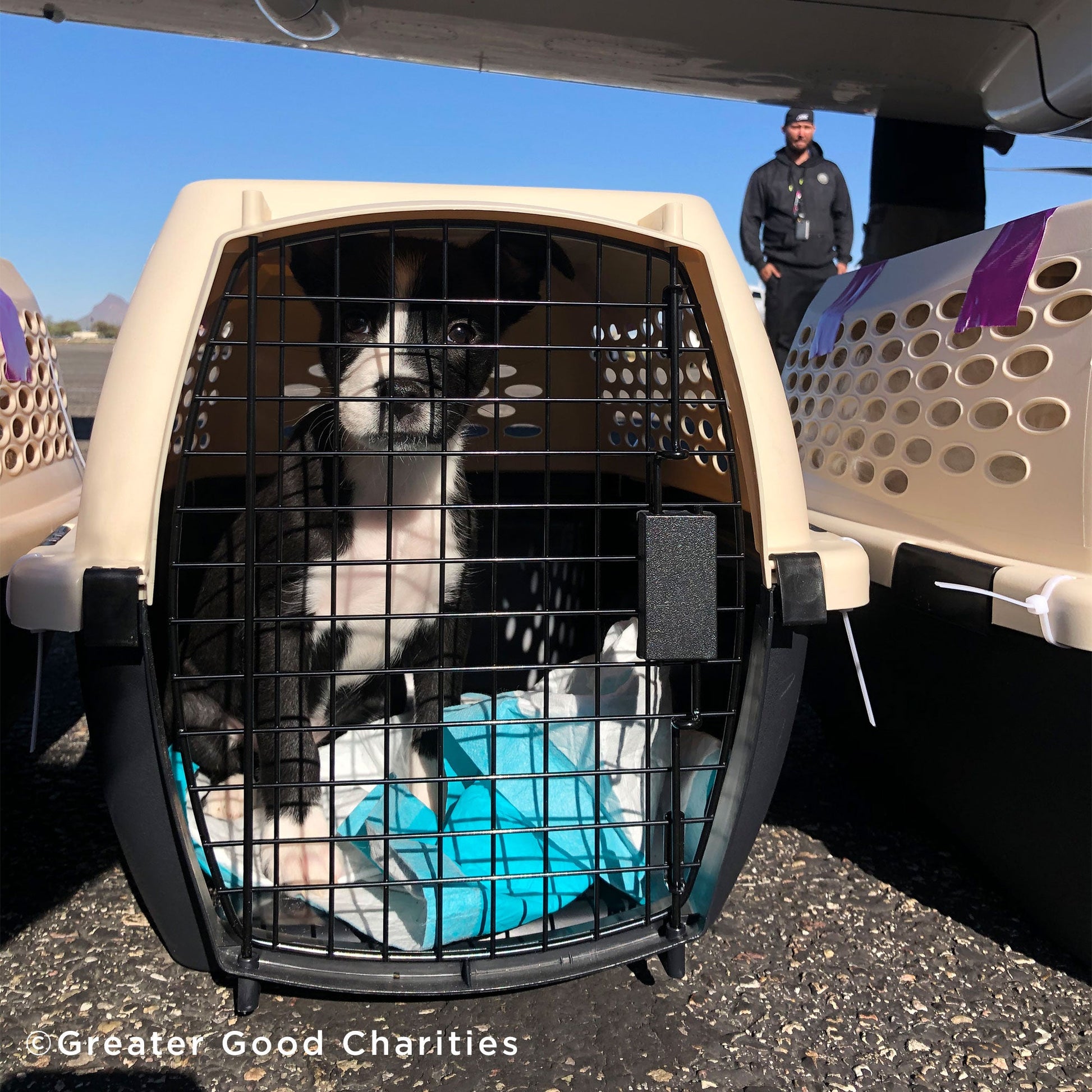 Your generous donations have helped to fly thousands of at-risk pets from overcrowded shelter to new homes on Flights to Freedom. Beyond the cost of operating these flights, Greater Good Charities' Good Flights program must also continually purchase new crates for these pets to ride in. That's where you come in!