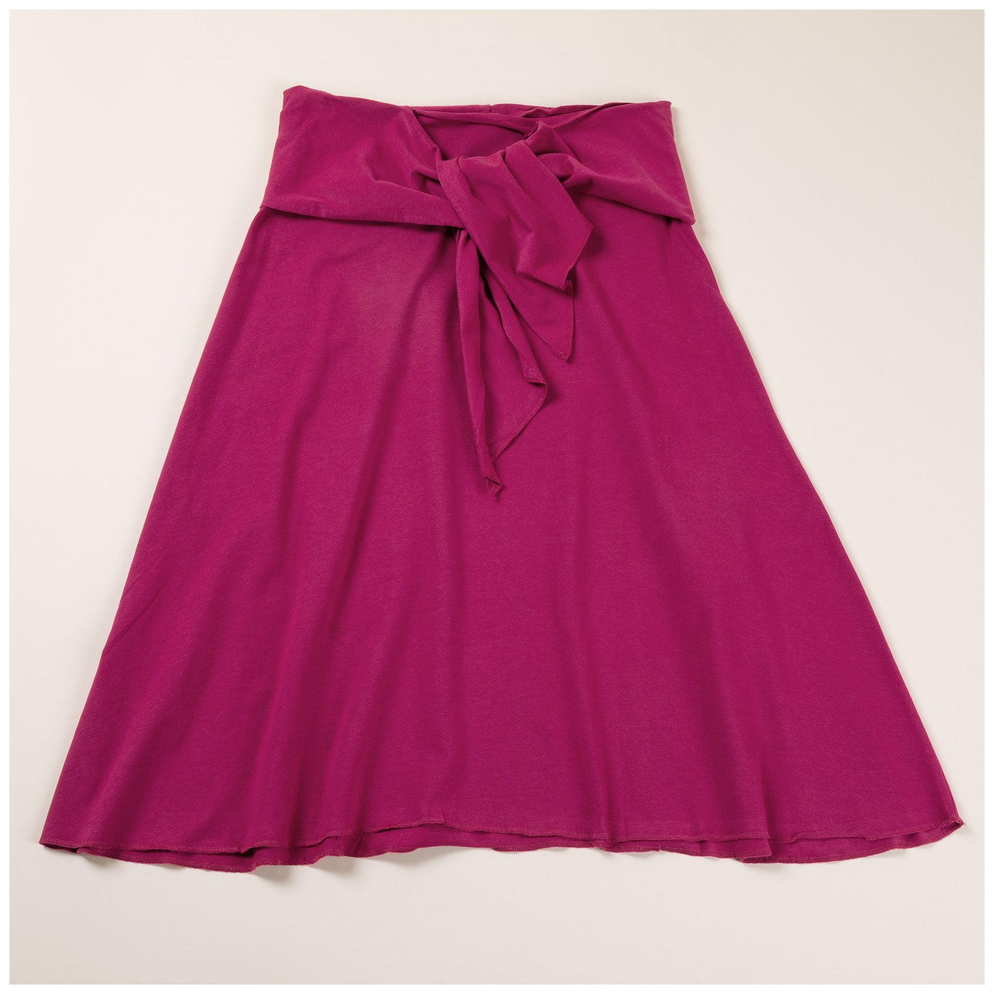It's a bird, it's a plane, it's the super skirt that's here to save your day! Wear the wide fold-over sash tied in the front, on the side, or in the back for three different looks with your skirt. Or, convert the skirt into two great dresses! Tie the sash in the back for a strapless dress or pull the sash behind your neck and knot it for a darling halter dress. Made from 96% organic cotton and 4% Lycra, this skirt has just enough stretch for you to stretch its uses in so many ways, all the while retaining its shape. So versatile you'll want to wear it every day! Even better, this skirt helps enrich the lives of its seamstresses, a cooperative of economically-disadvantaged and disabled women in southern India.