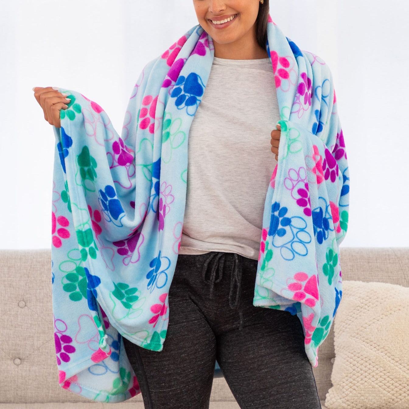 Made with our signature Super Cozy™ fleece, this ultra soft blanket wraps you up in total comfort! The poly fleece fabric is made with the perfect weight, so it's nice and warm but not too heavy. Ideal for any room in your house-- draped on your couch, folded on your bed, easy to grab in your office for a little extra comfort. Plus, with paws of all different colors and patterns, it’s easy to find a throw blanket you'll love!