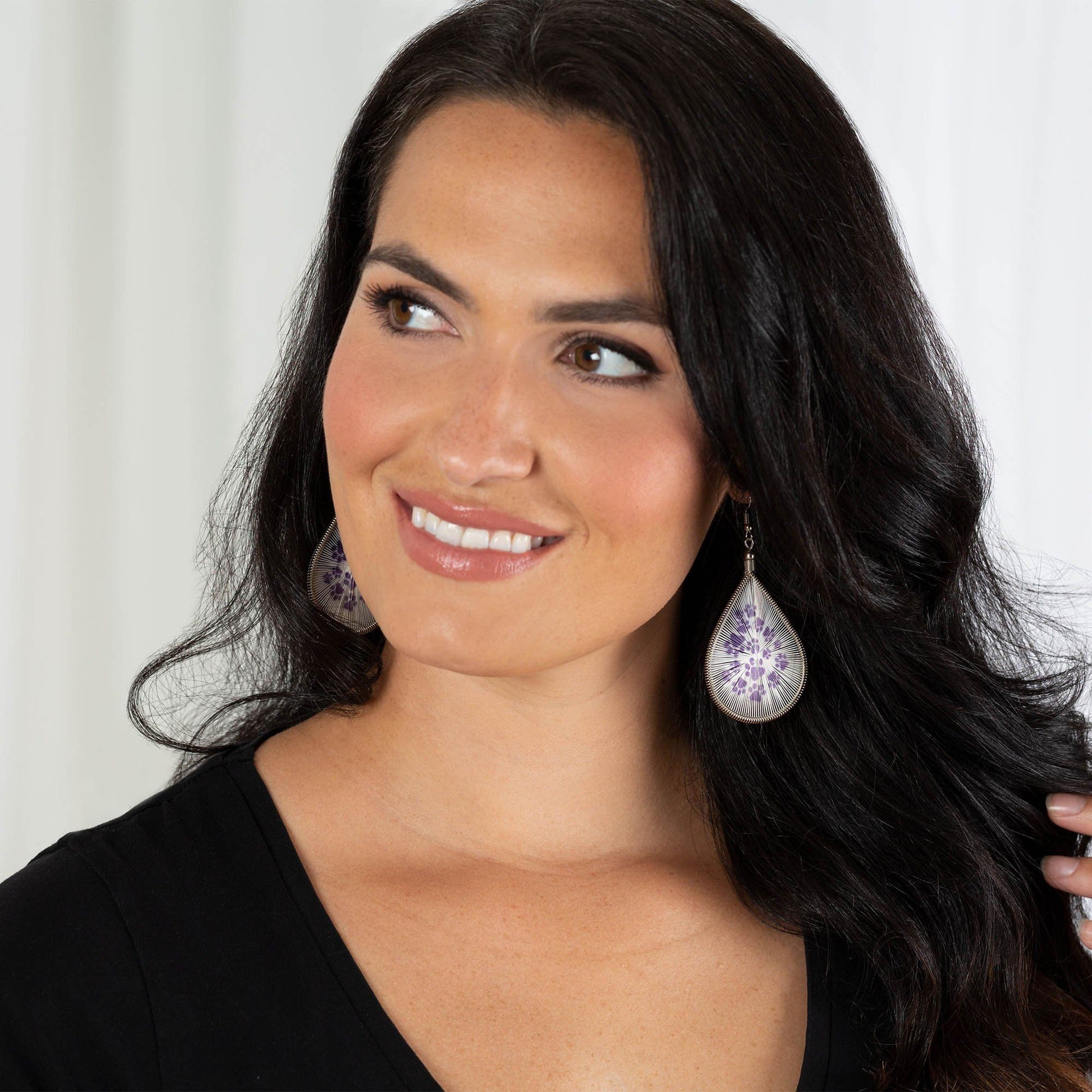 Vibrantly colored paw prints in varying hues are scattered atop beautifully woven thread earrings. Let your animal-loving spirit shine!