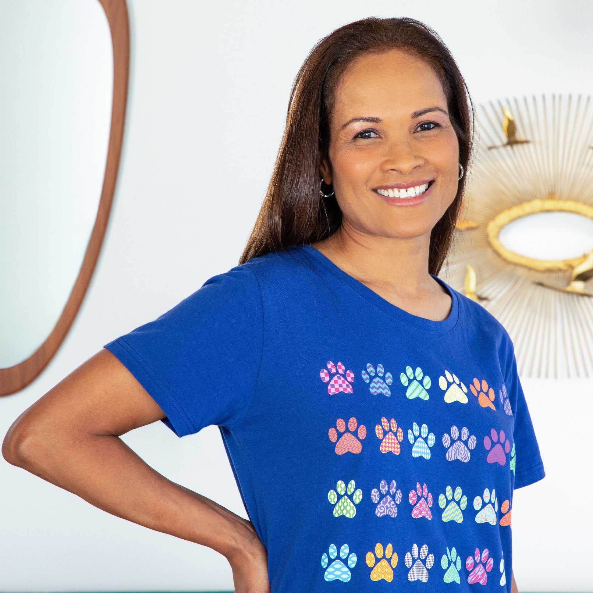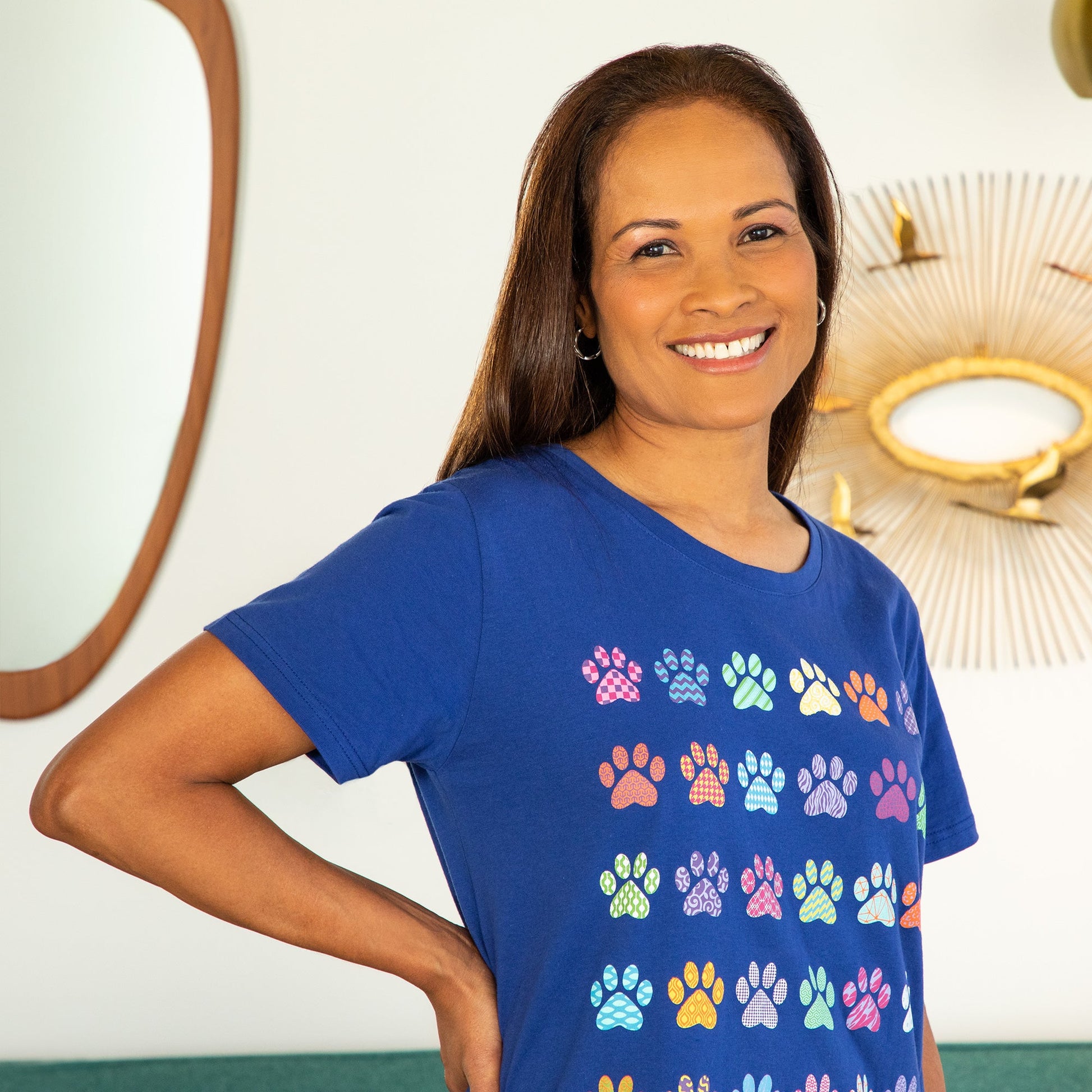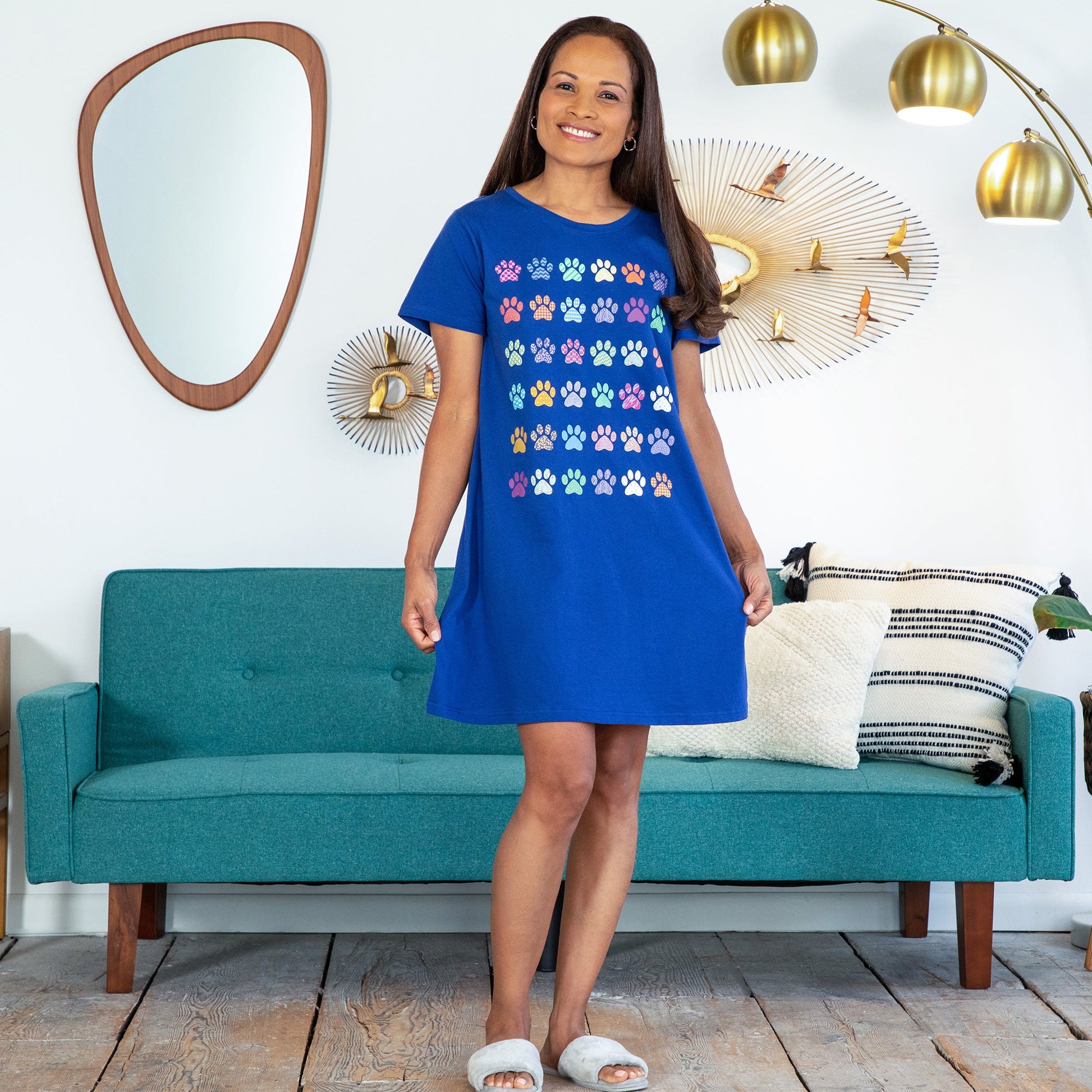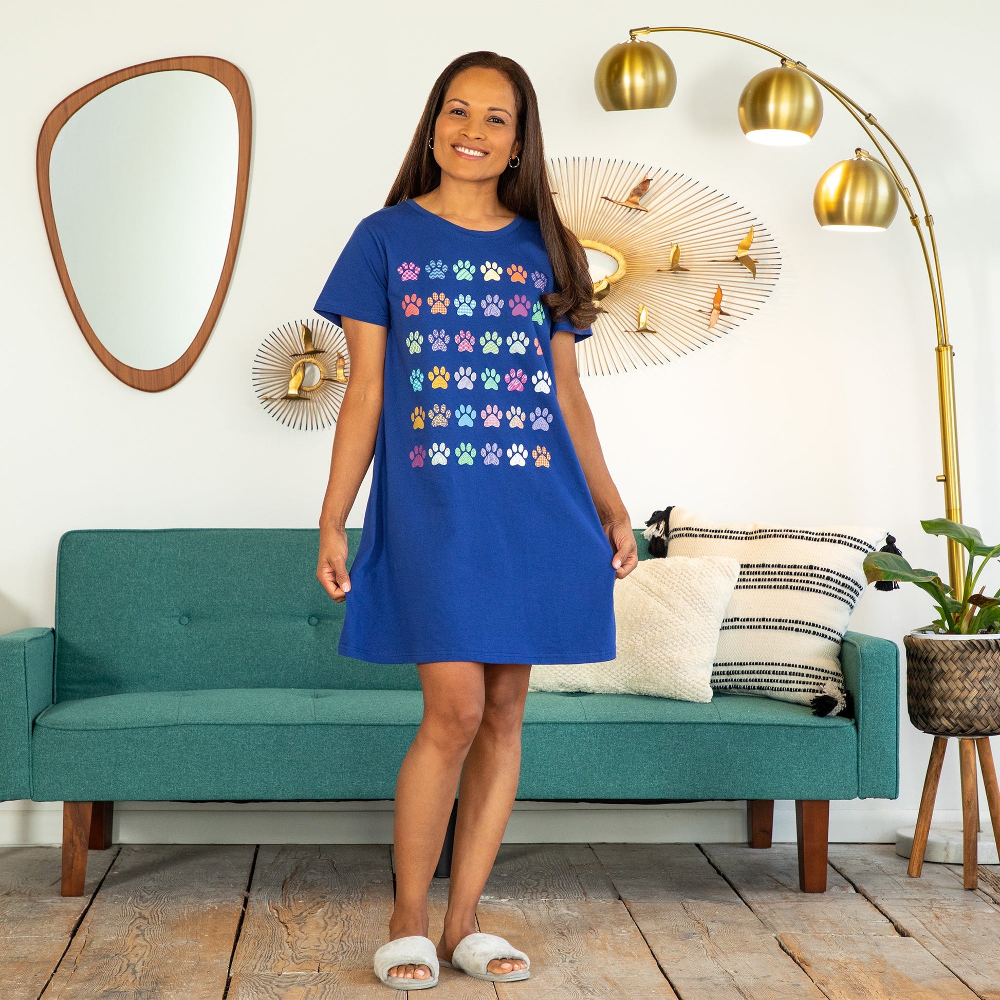 A rainbow of patterned paws march across this super soft cotton nightgown. Topped with a crew neck and relaxed fit, perfect for whisking you away to a cozy night's sleep!