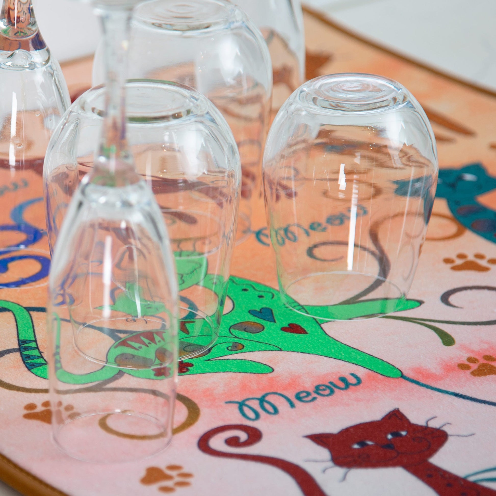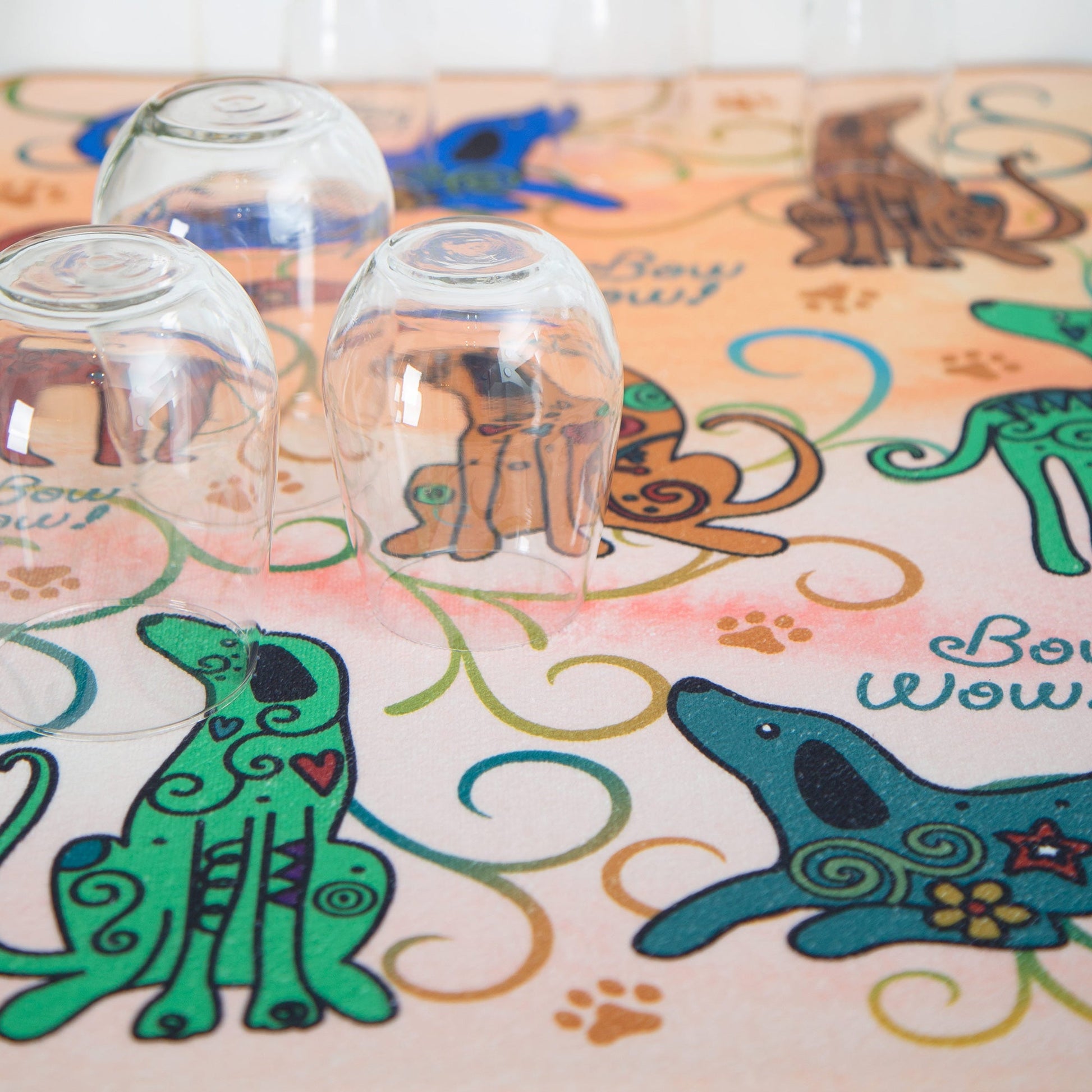 A clean kitchen starts with sparkling clean dishes! Give your dishes a place to dry quickly with the help of this padded, microfiber dish drying mat, decked in fancy felines or peppy pups and paws for the ultimate pet lover's home.
