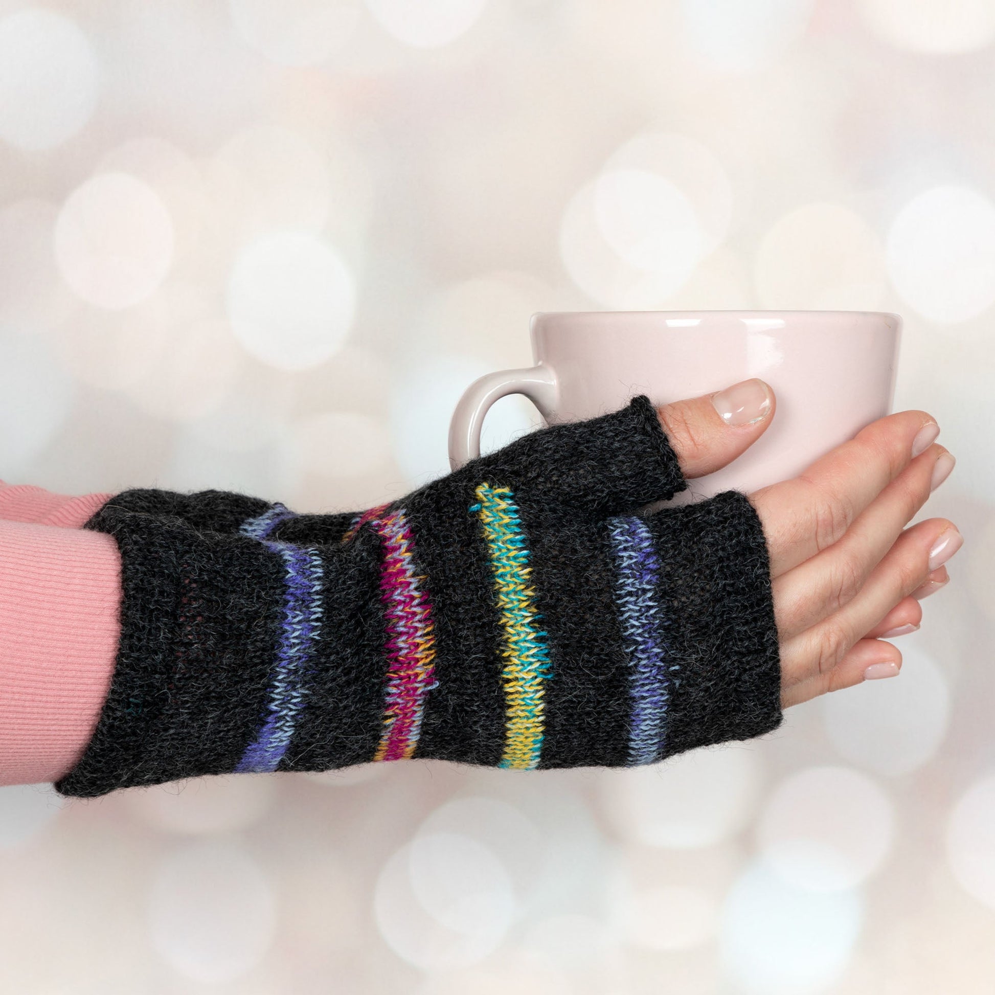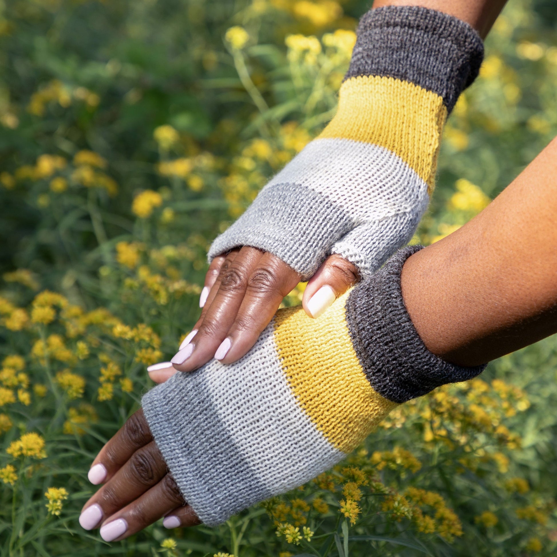 Short mittens in brilliantly soft 100% alpaca fiber keep your hands warm in chillier weather, while keeping your fingertips free for writing, typing, texting, or holding your favorite mug with a secure grip. Perfect for indoor or outdoor use, they provide that extra warmth and comfort without the restrictions of bulky mittens or gloves! The super soft 100% alpaca fiber is hypoallergenic and does not itch like other wools. These fair trade gloves are handmade by women artisans in Bolivia. Shop our entire alpaca fiber collection.