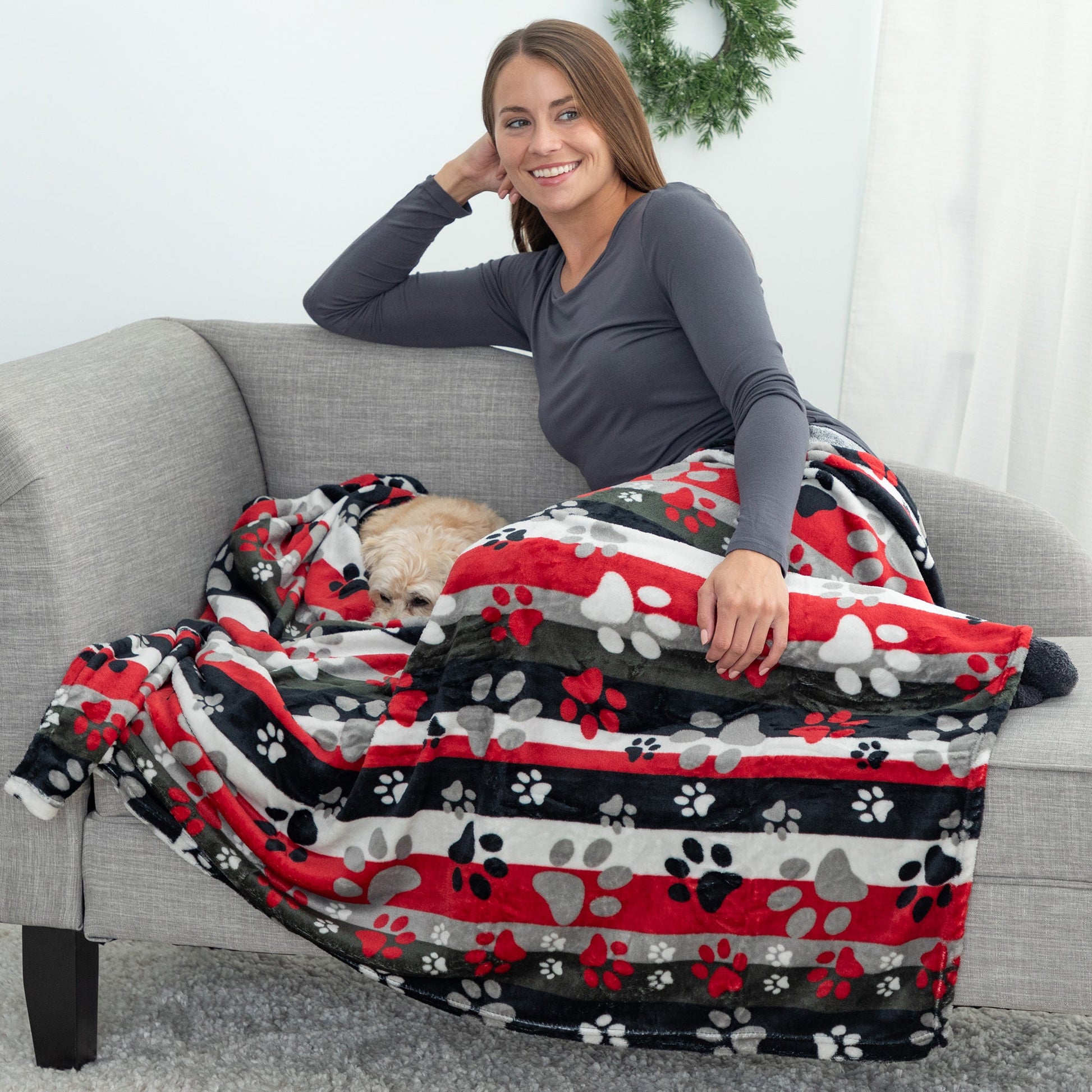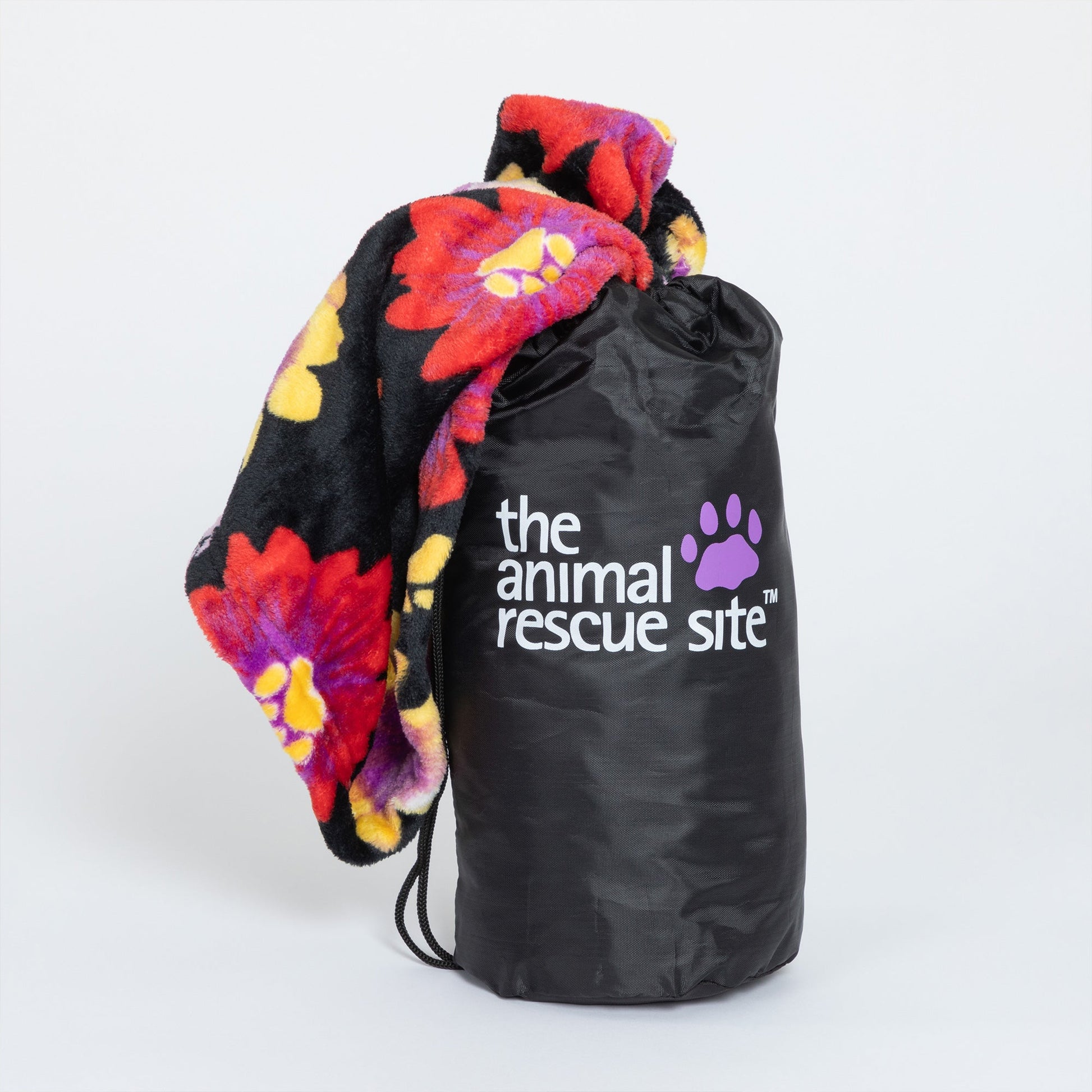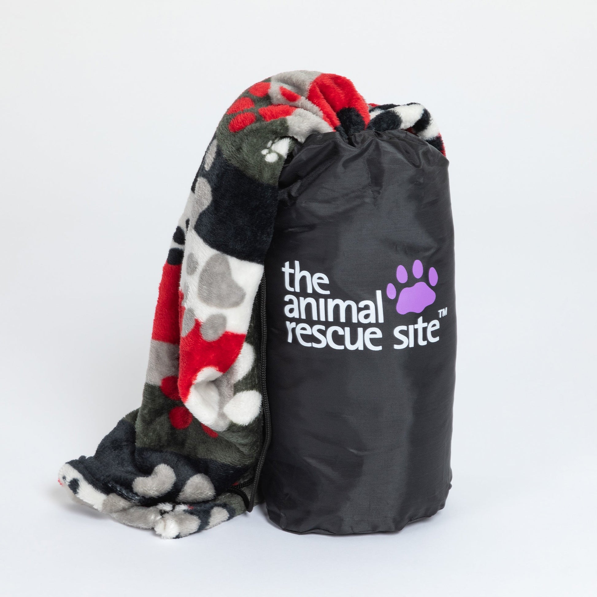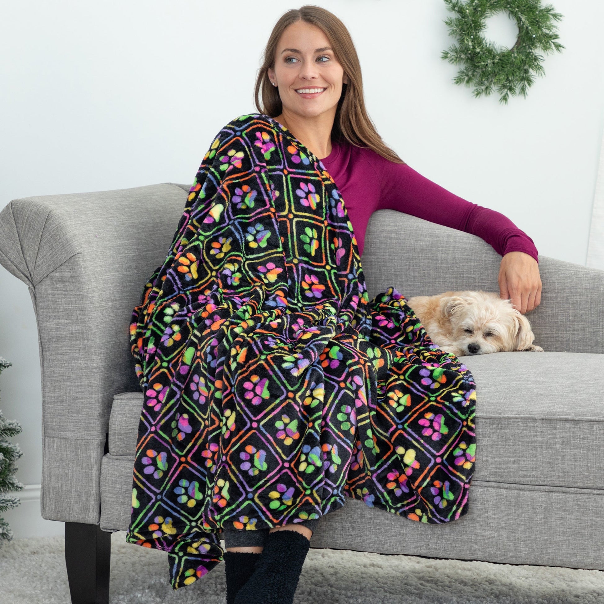 Cozy, casual, and ready to be curled up with wherever you are! Swirling paws dance in technicolor on this super soft fleece blanket. Complete with a nylon stuff sack that compacts this luxuriously soft throw, making it easy to throw in your bag, keep in your car, or take with you on your next flight!