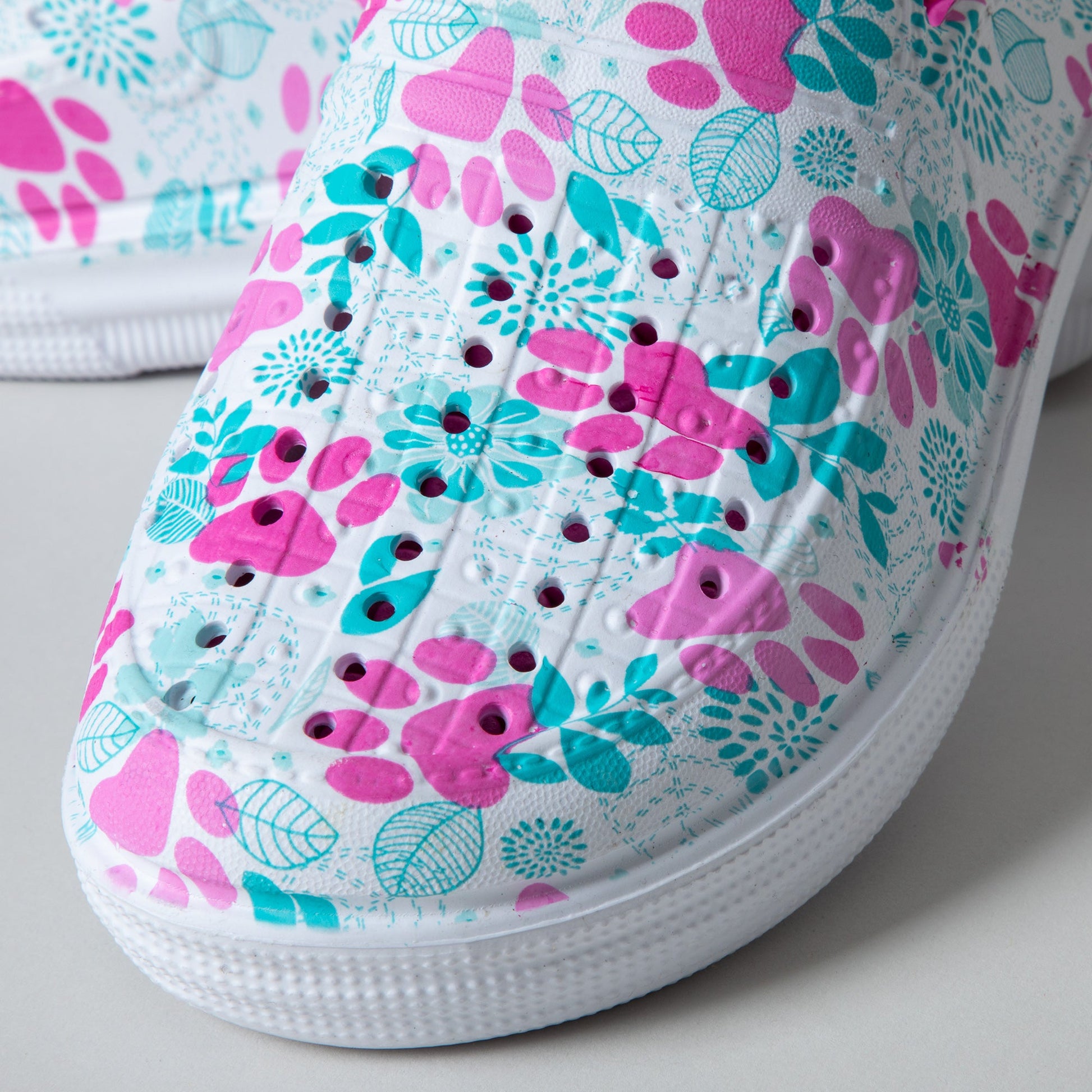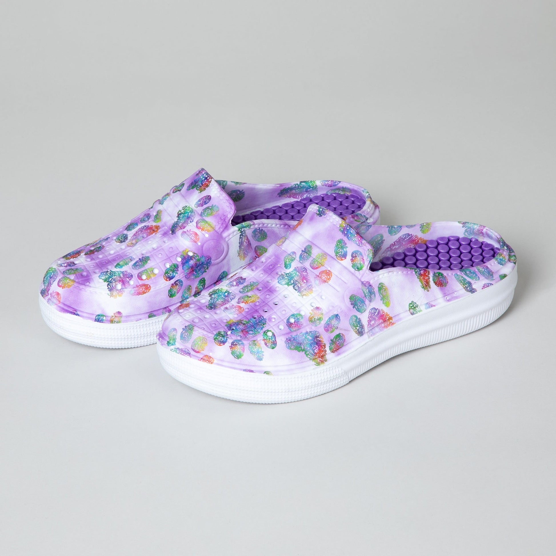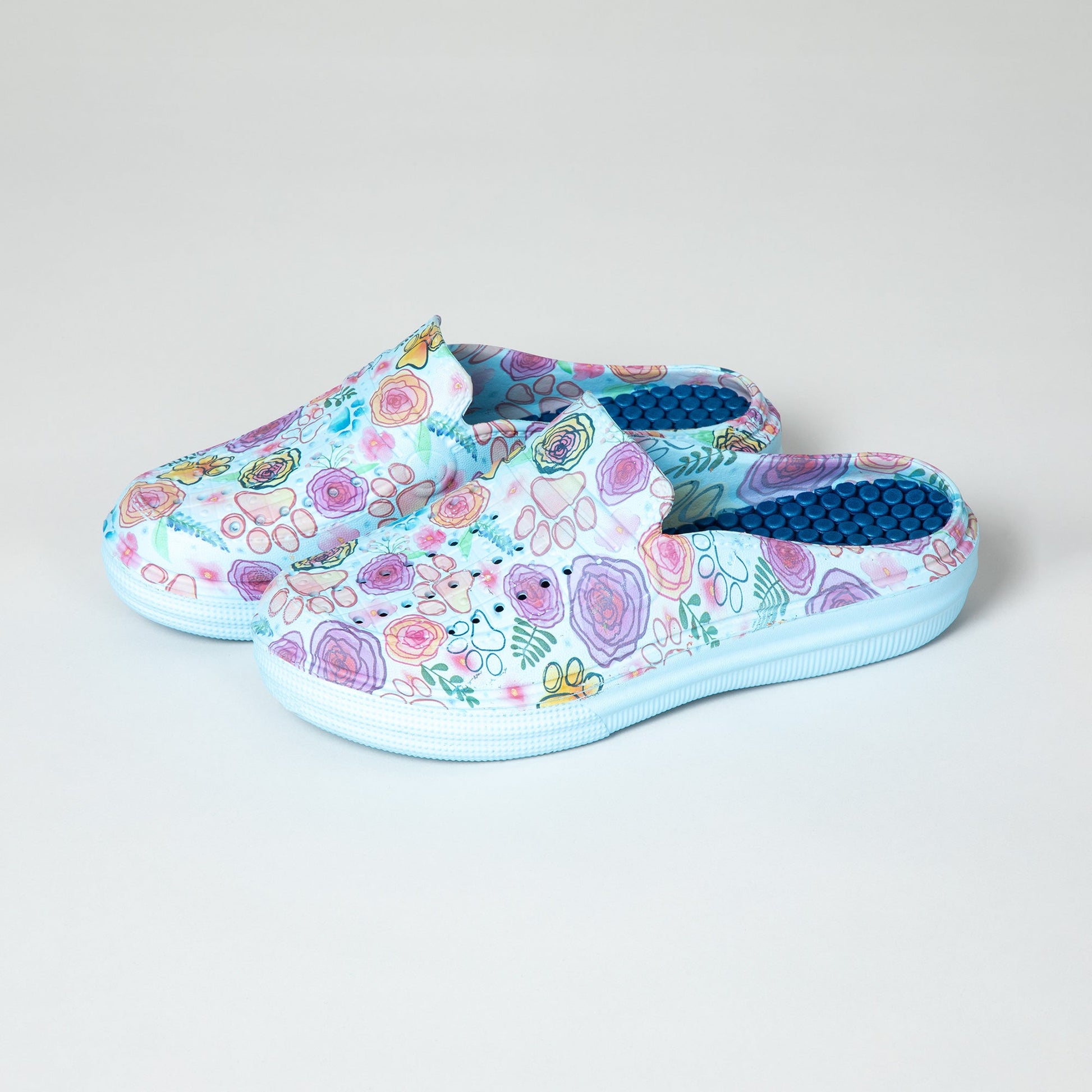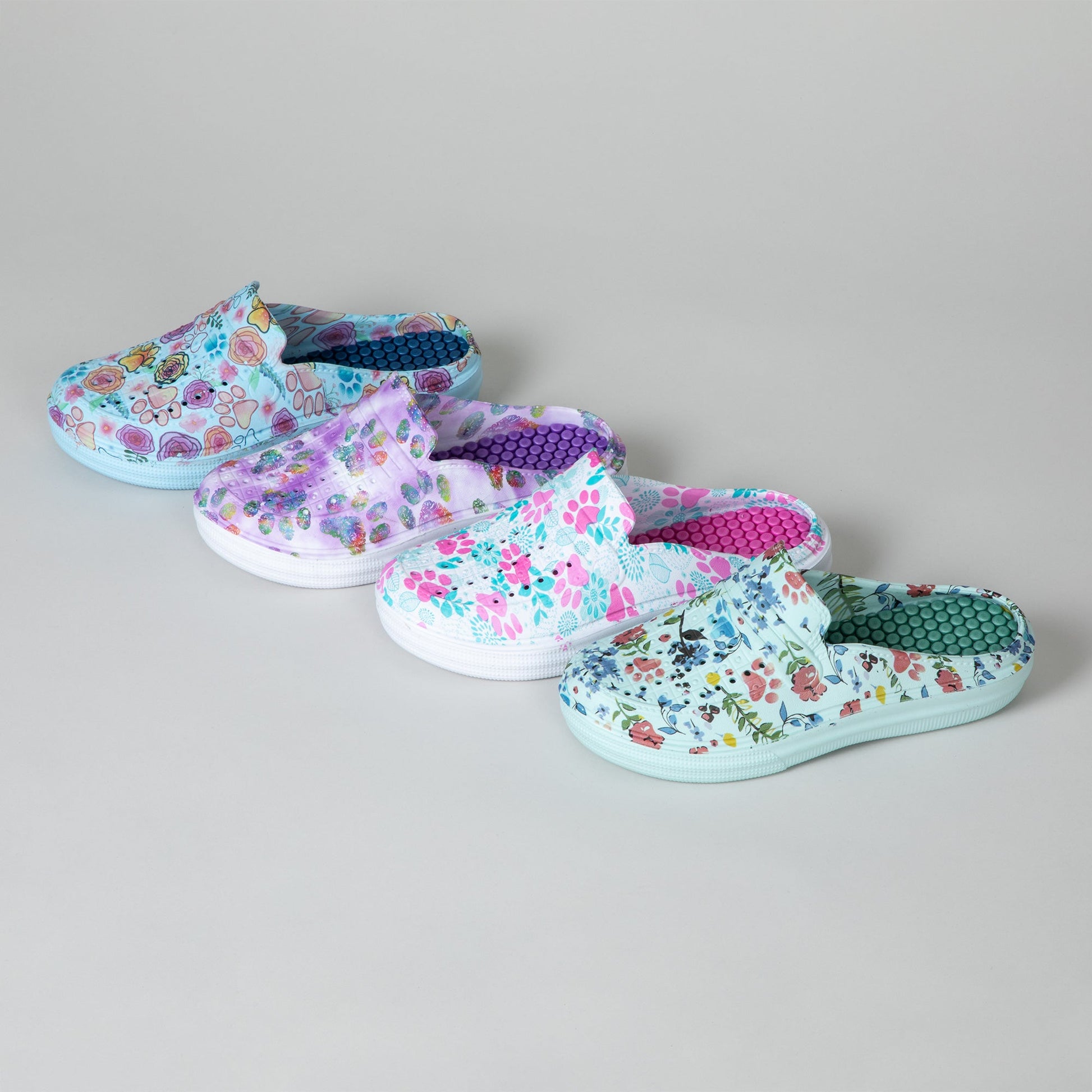 Effortless appeal with a cute, colorful print! Swirling in paws of vibrant colors, this effortless, lightweight pair of slide clogs exudes both versatility and comfort for all that your day has in store.
