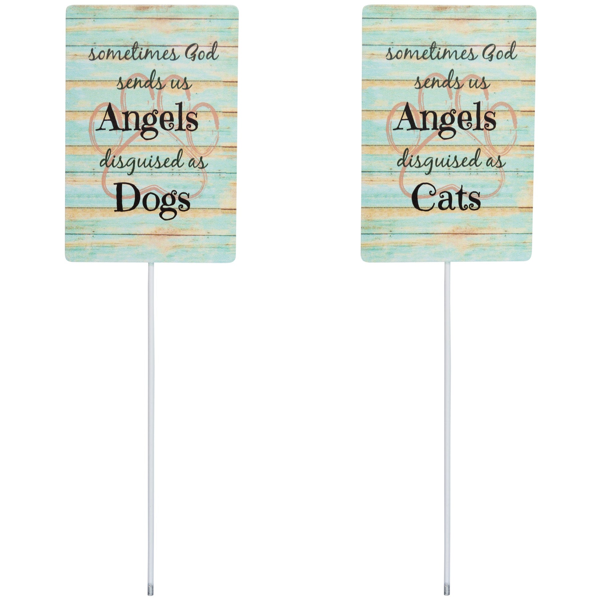 Every day you give thanks for your four-legged angel! Patterned in a sweet, rustic design and topped with the heartwarming phrase "Sometimes God sends us Angels disguised as Cats." The perfect piece of decor for your yard, garden or planters!