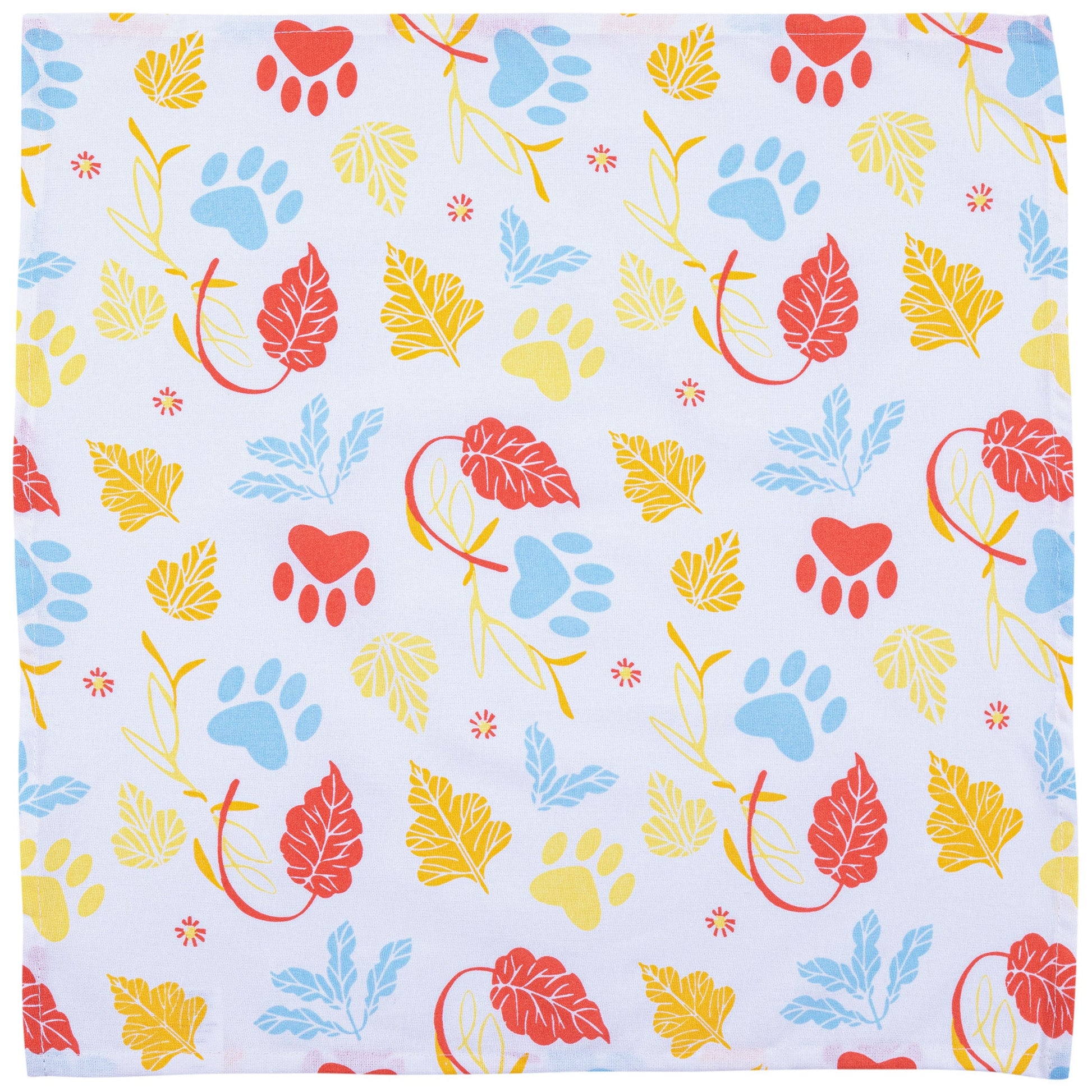 Autumnal red and gold with hues of blue pattern this harvest paw-printed table linen piece! Embrace the changing seasons with a special homage to your furry friends, this set of 4 cloth napkins in white is a beautiful setting for your table, welcoming those you can share a meal with.