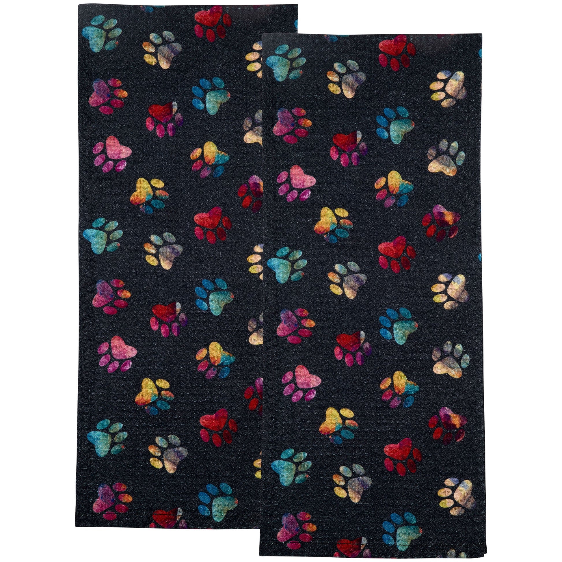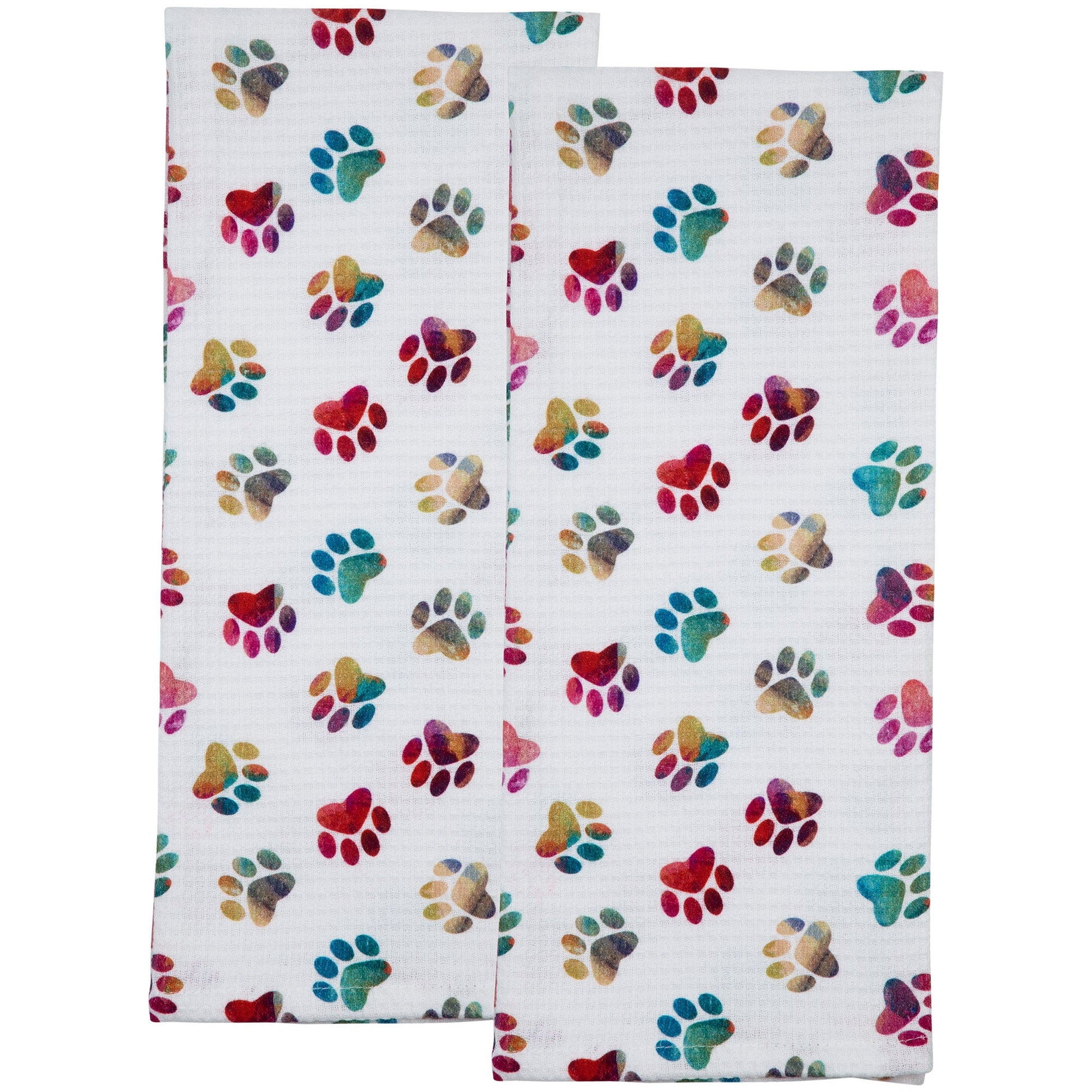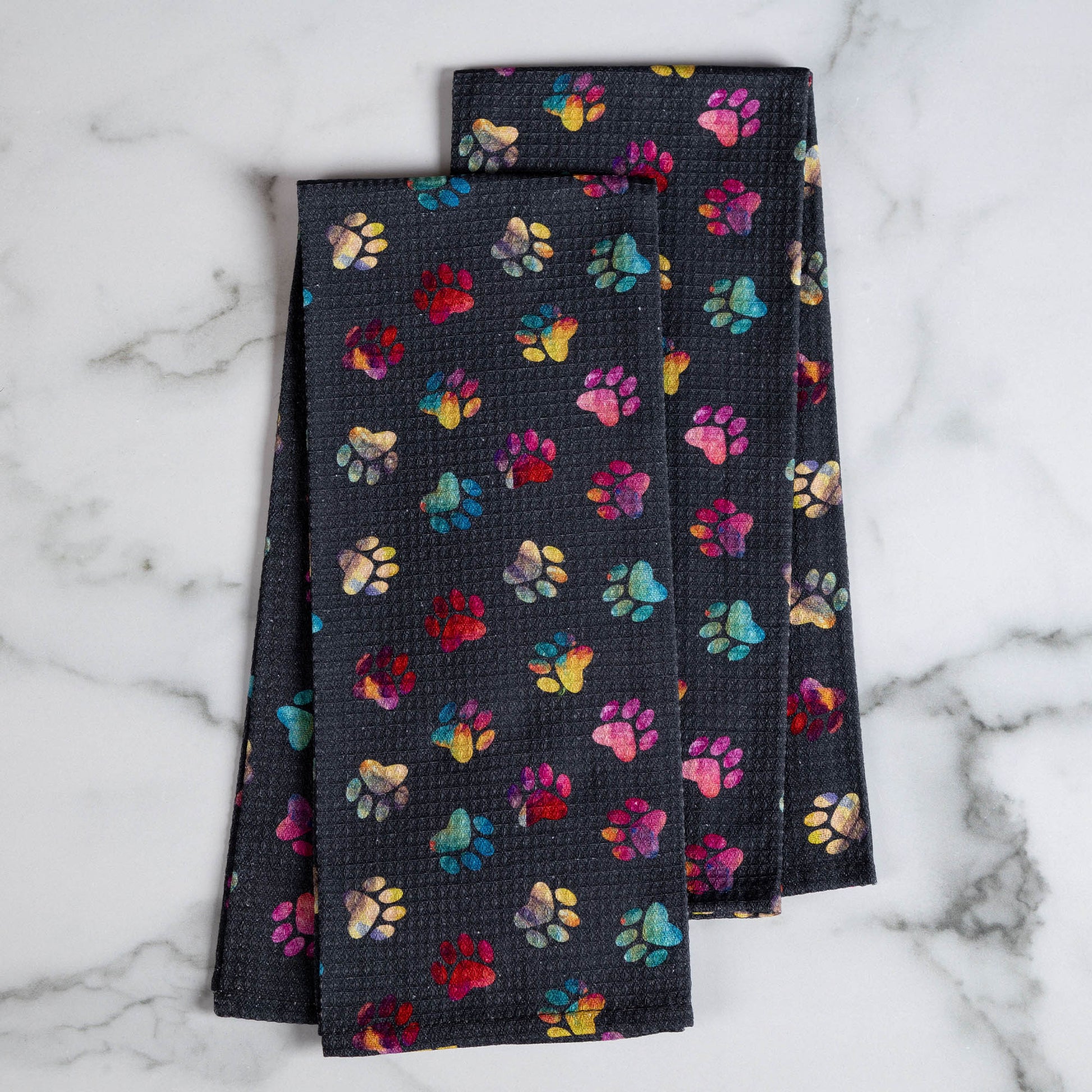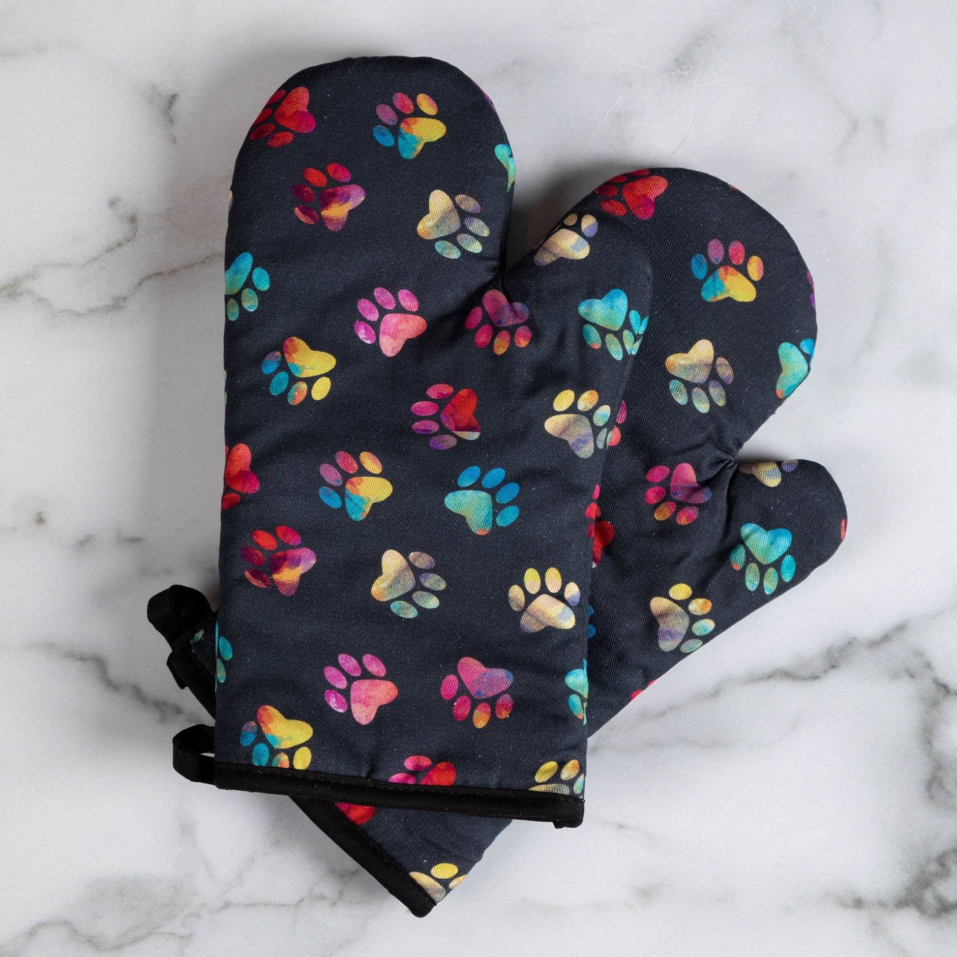 Your kitchen linens sets the tone in your home! Embrace the time spent at the table with a side of love for your furry friends with these rainbow hued paw-printed kitchen linens. Protect your table from water marks or heat damage, while making cleanup a breeze by simply throwing the placemats in the wash when you're done! Keep the dish towels nearby for cleaning up spills or drying dishes, while the oven mitt set is essential in pulling a hot dish from the oven.