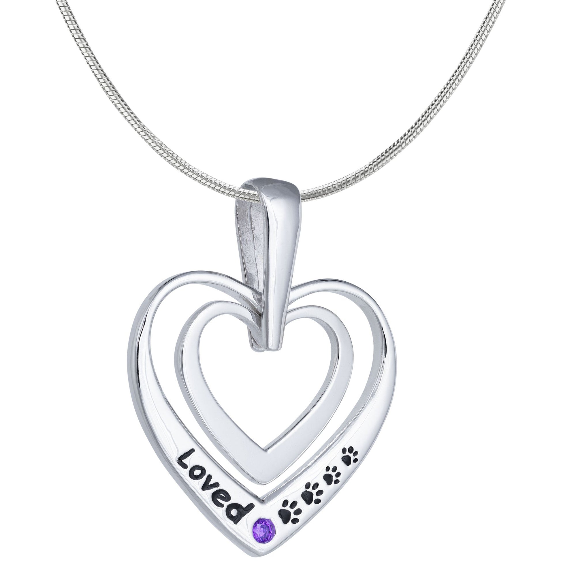 When you share your heart with a pet, you know that you are forever loved. Handmade by skilled artisans in Bolivia, this double heart pendant features the word "Loved" with a small purple crystal at the base, with a collection of four paw prints walking up the side for a beautiful, sterling silver accessory to cherish for years to come.