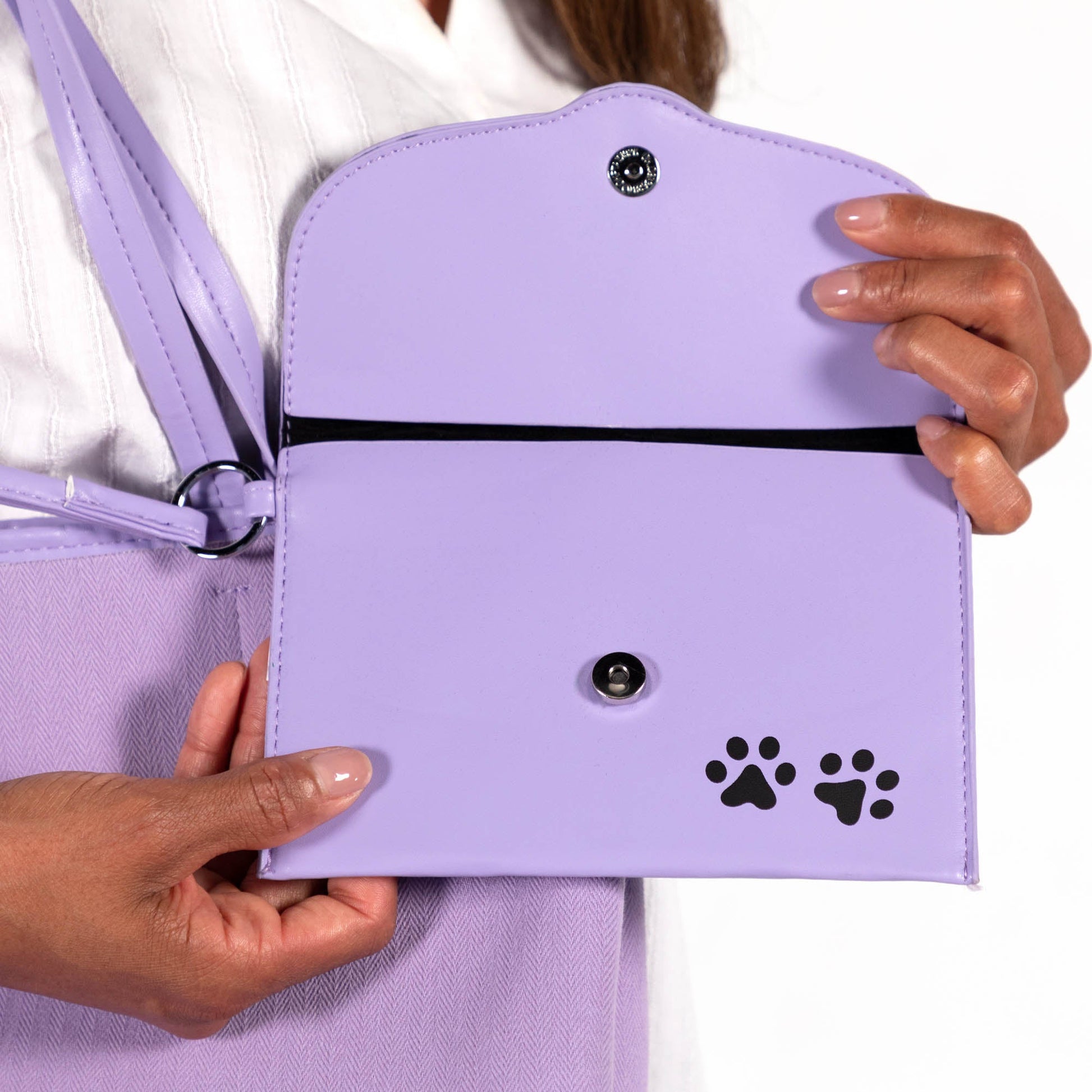 This gorgeous canvas bag just begs to be taken everywhere! Made with a heavy, beautifully textured canvas, and topped with faux leather trim and a matching faux leather pouch that snaps to the inside -- perfect for keeping your cards, cash, and other essentials easy to find. On the bottom corner of both the tote and pouch are two paw prints, sending a powerful message of animal advocacy on your daily outings!