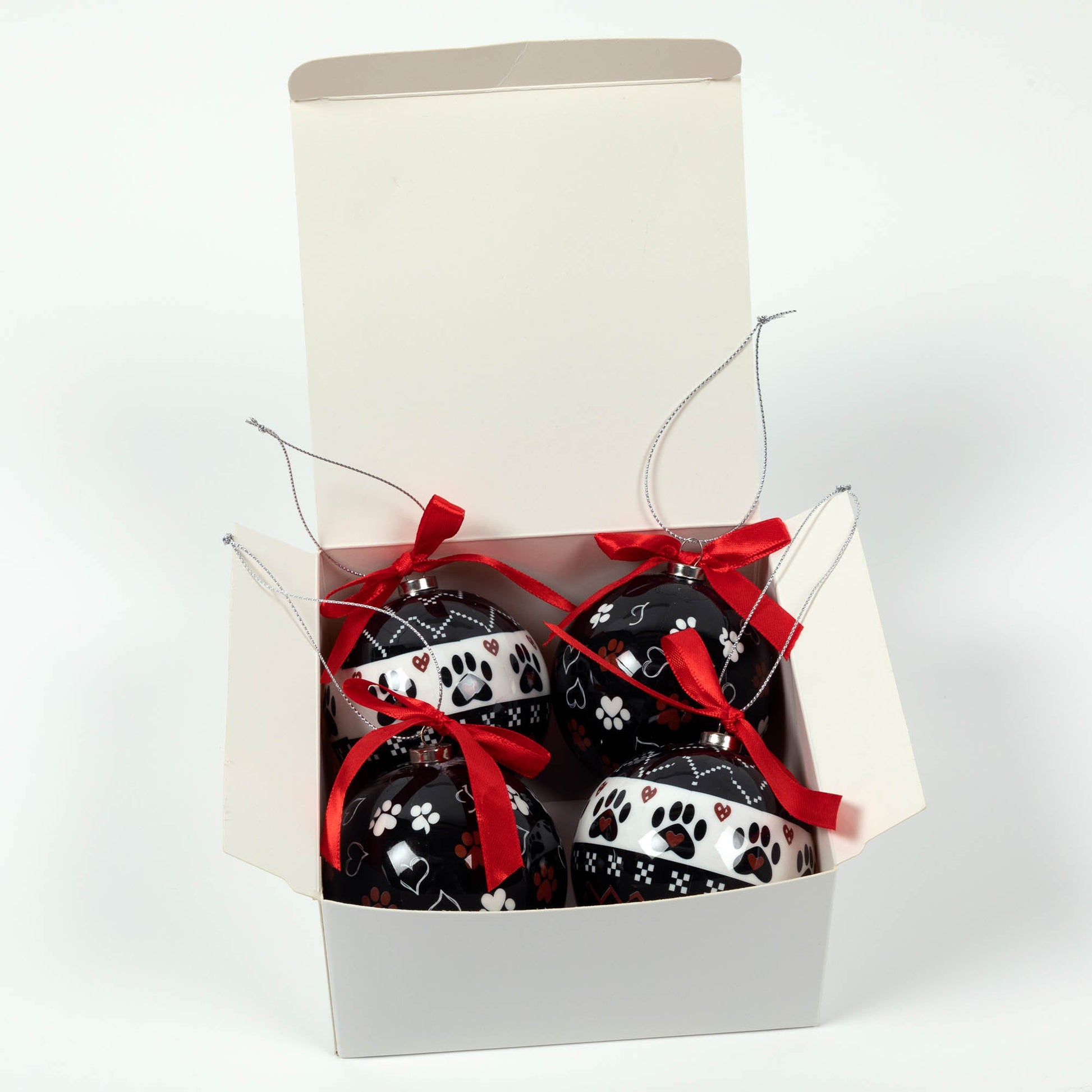 'Tis the season of giving, so give your fellow animal-lovers the gift of a paw print ornament set all neatly wrapped in a decorative gift box. Patterned in a red, black, and white nordic design with hearts and paws, adding paw-friendly style to the Christmas tree and home!