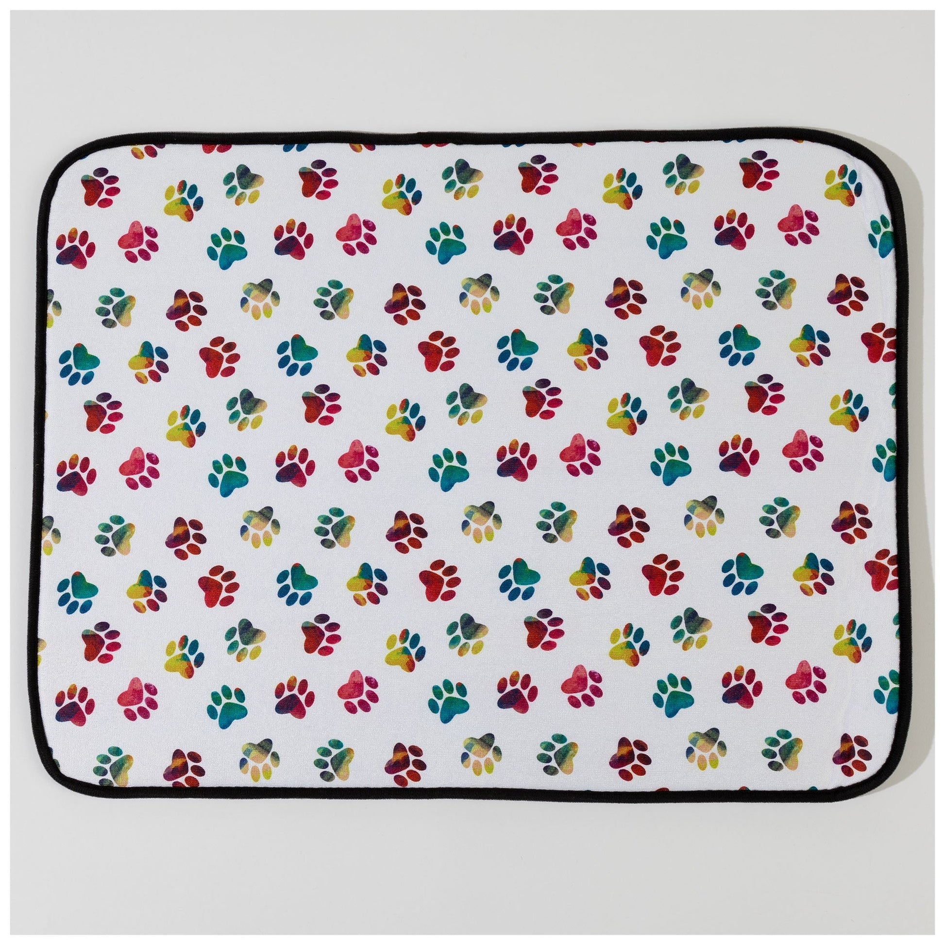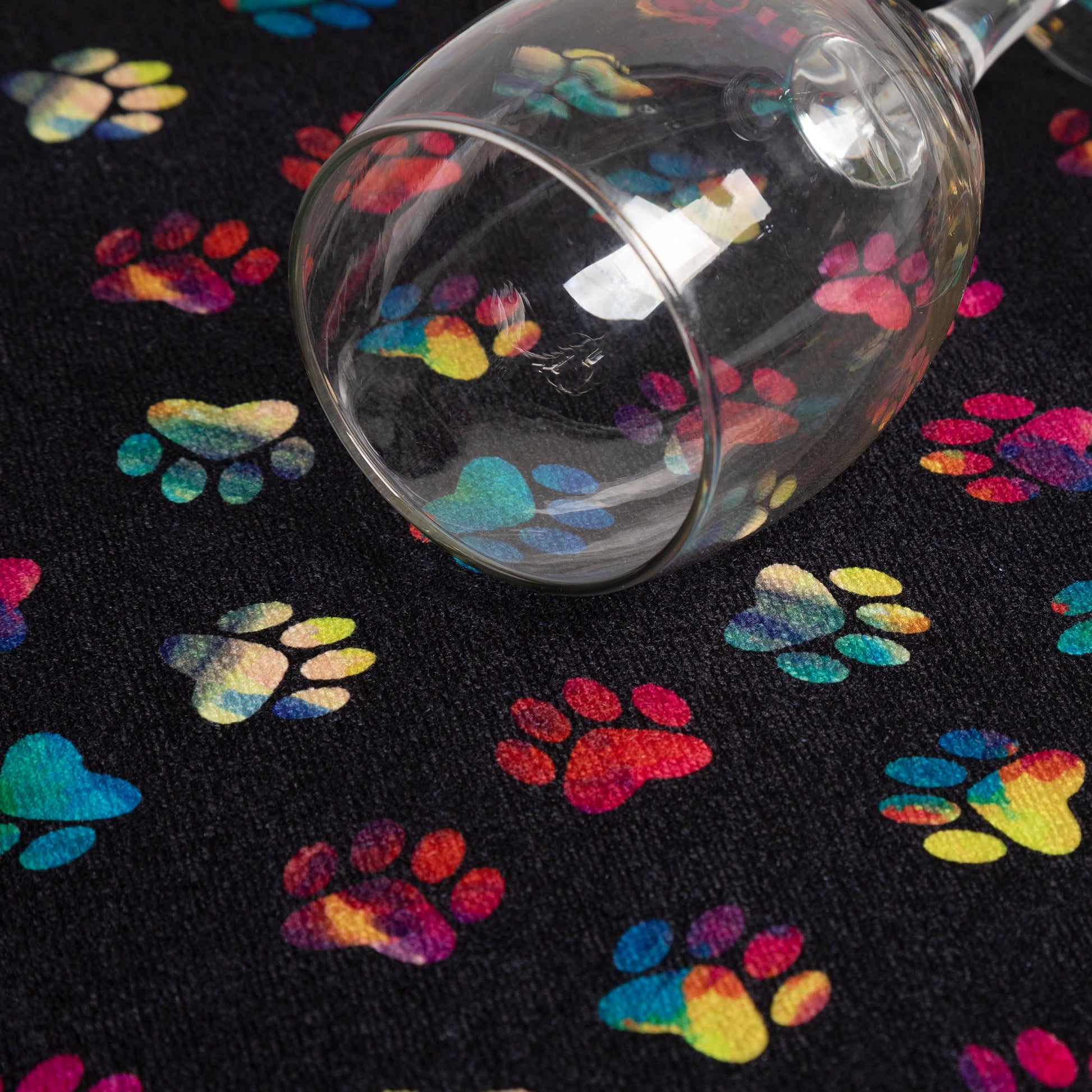 A clean kitchen starts with sparkling clean dishes! This padded, microfiber dish drying mat, decked out in paws -- each side a different color -- provides a colorful place to let dishes dry, then easily folds up for convenient storage!