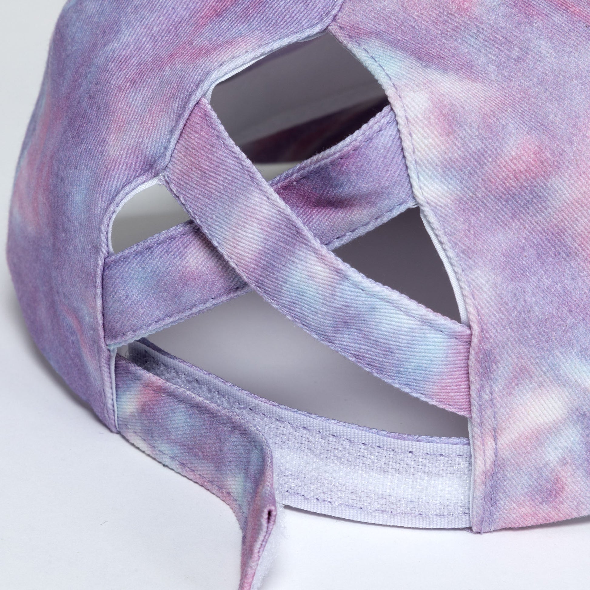 The baseball hat you cannot live without! With adjustable straps in the back that fit your ponytail perfectly, this sporty cap is colorfully tie-dyed and features embroidered paws across the front.