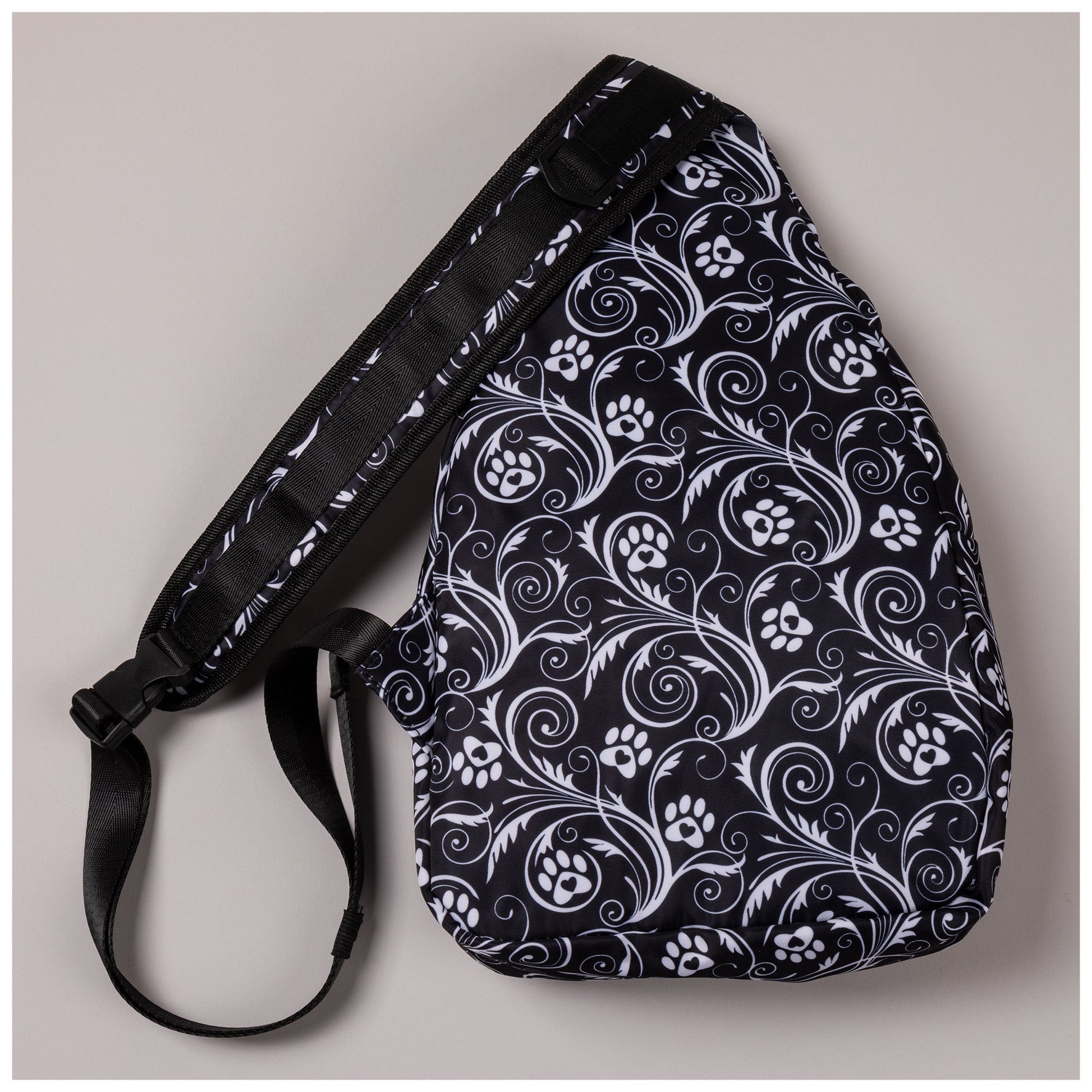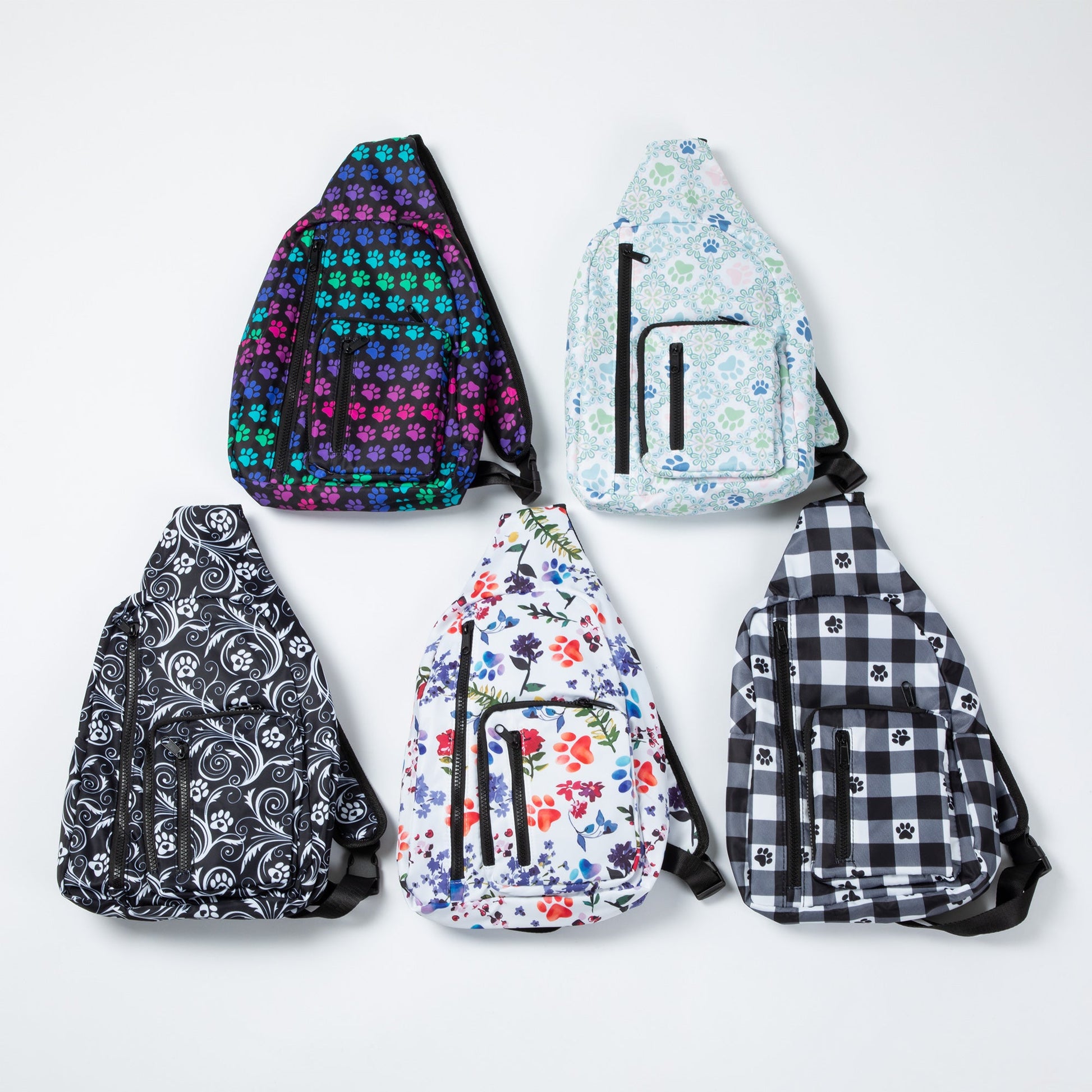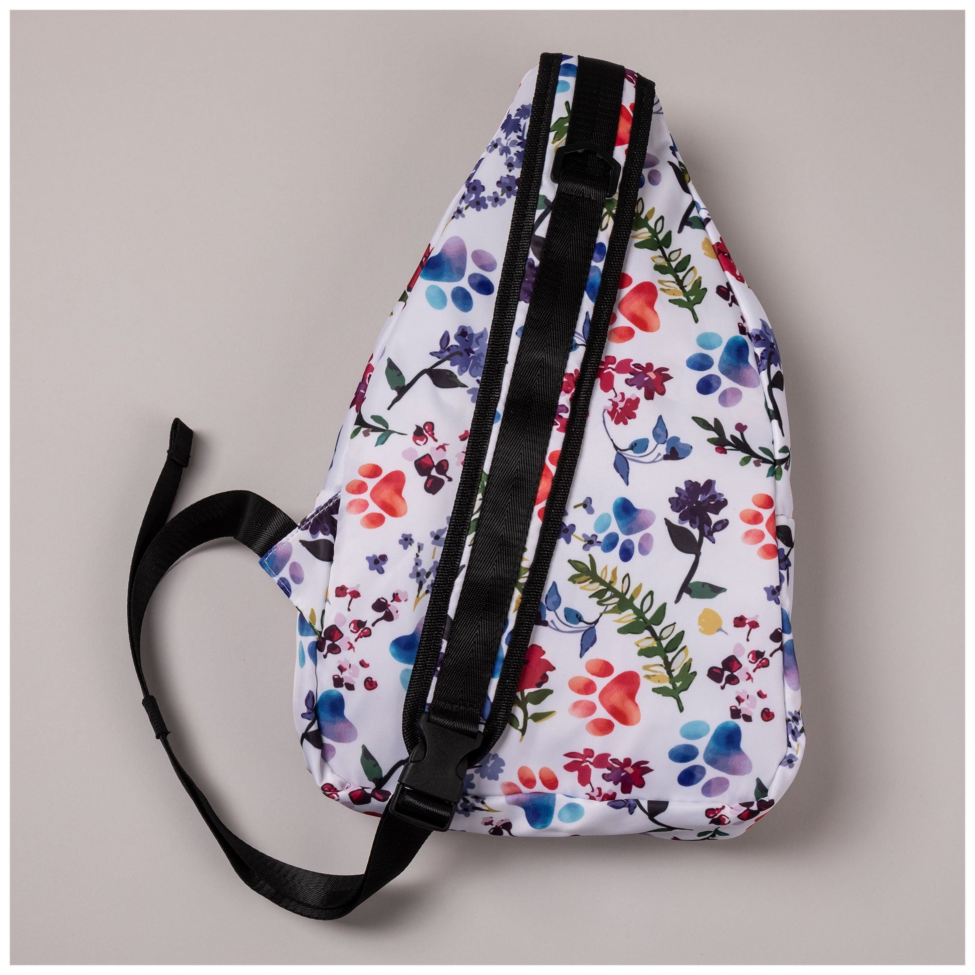 Pockets, paw prints, and a plenty of space to pack for your day's adventure! This sling backpack keeps you organized with ease, and the water repellent exterior keeps your items dry no matter what the weather forecast has in store.