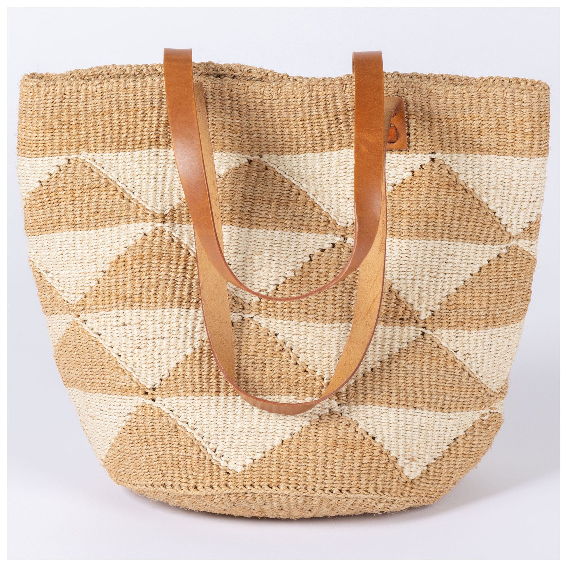 Beautiful and practical, each artisan made sisal tote features a traditional angular design. Each bag has a slightly different pattern creating a unique handicraft to be enjoyed for years to come. Handwoven by skilled basket weavers in rural Kenya -- providing work and perpetuating traditional craft. Your purchase completes the fair trade circle connecting artisans and shoppers through transparent, sustainable business practices that honor the planet and people over profit.