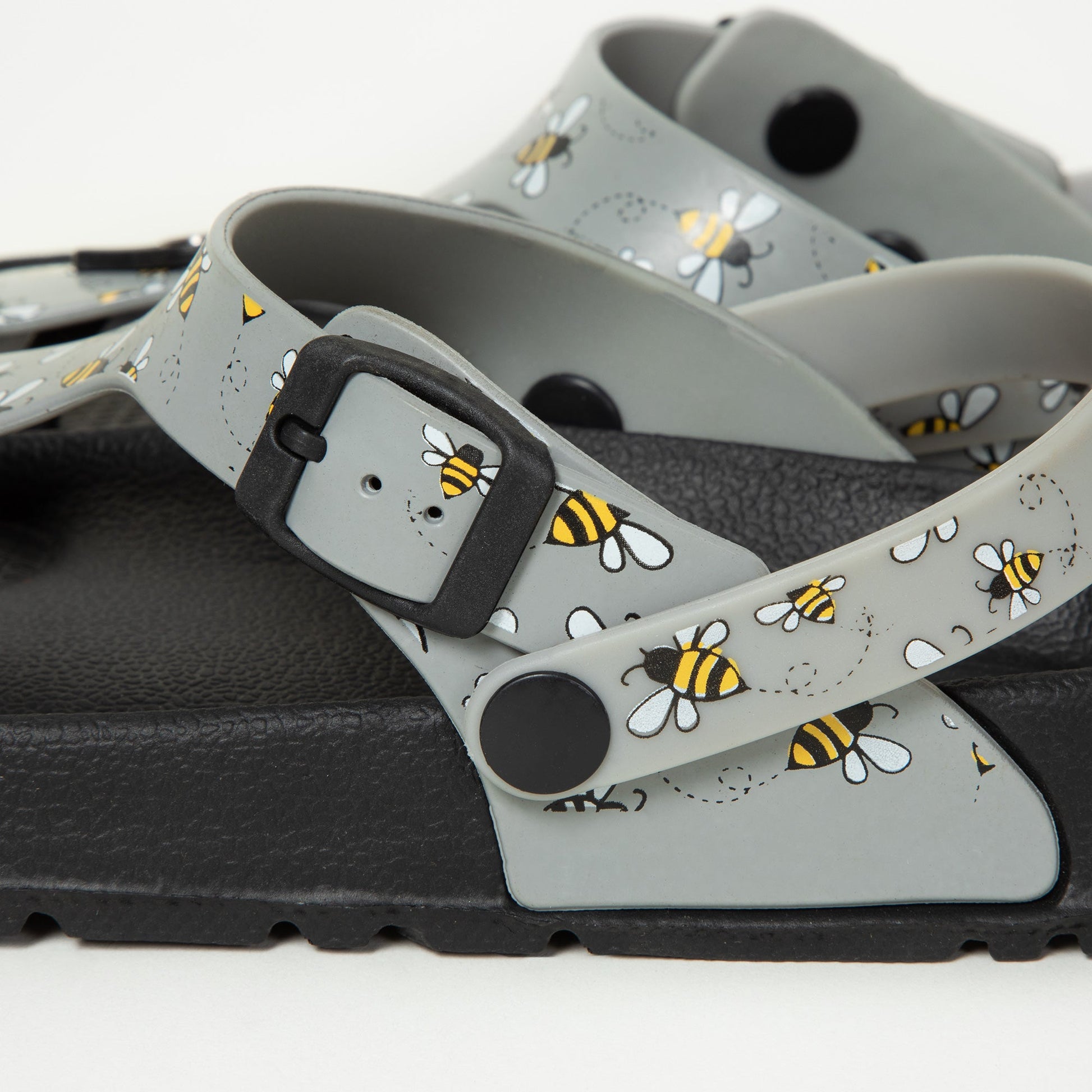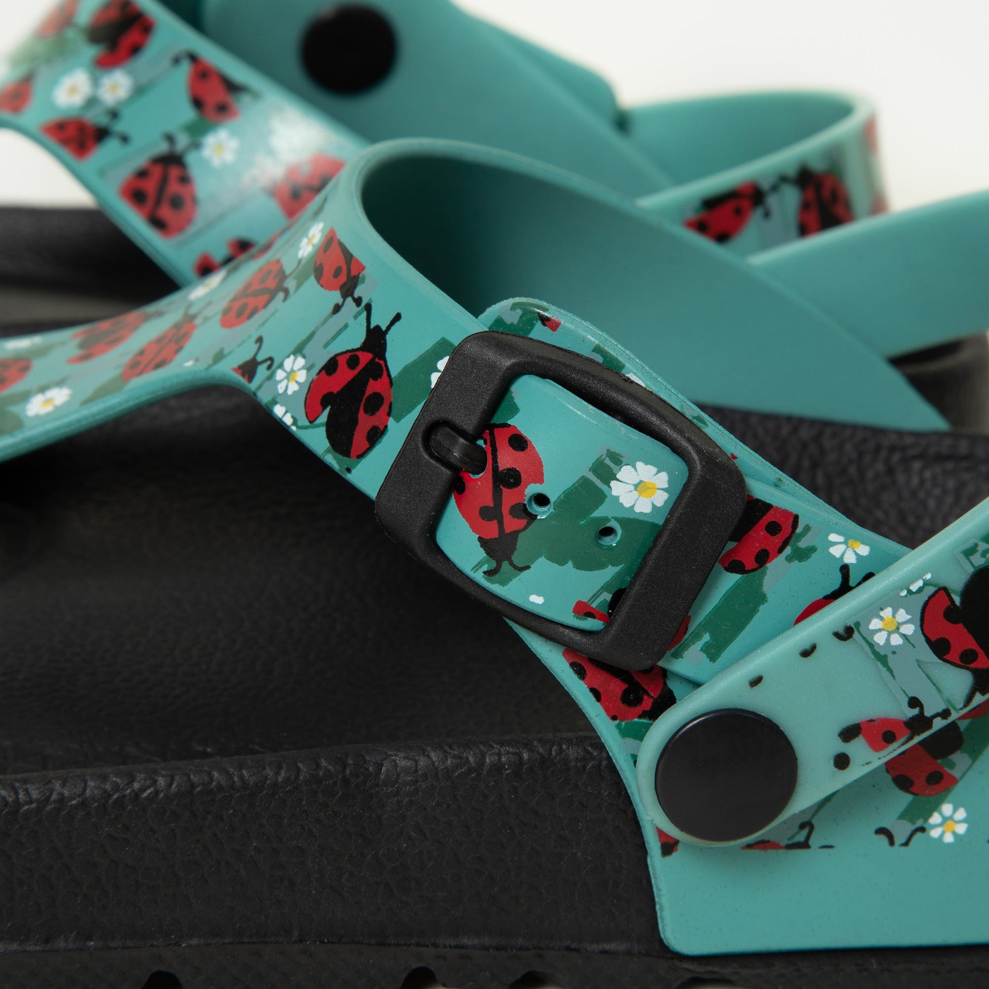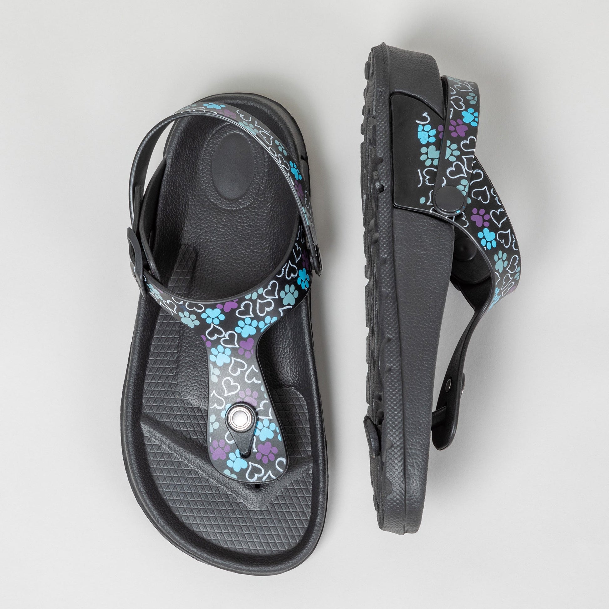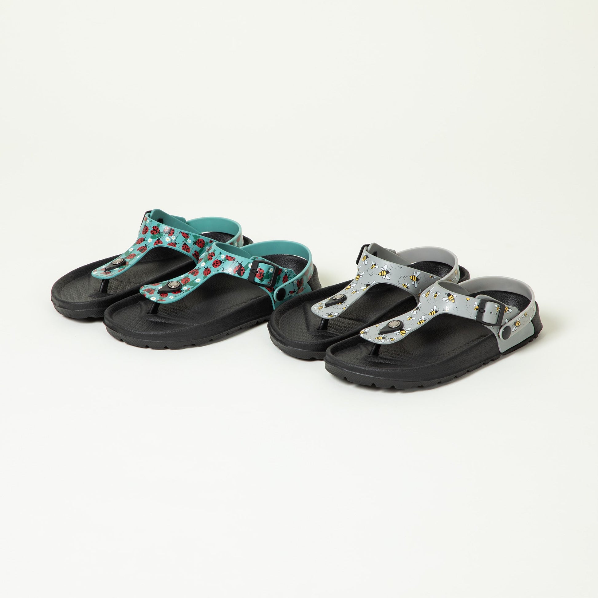 Step into summer style with our adorable thong sandals featuring a back heel strap for extra comfort and security. Crafted with EVA soles and PVC uppers, these playful sandals showcase charming patterns of ladybugs, bees, or paw prints, adding a touch of whimsy to your every step. Elevate your warm-weather wardrobe with comfort and flair!