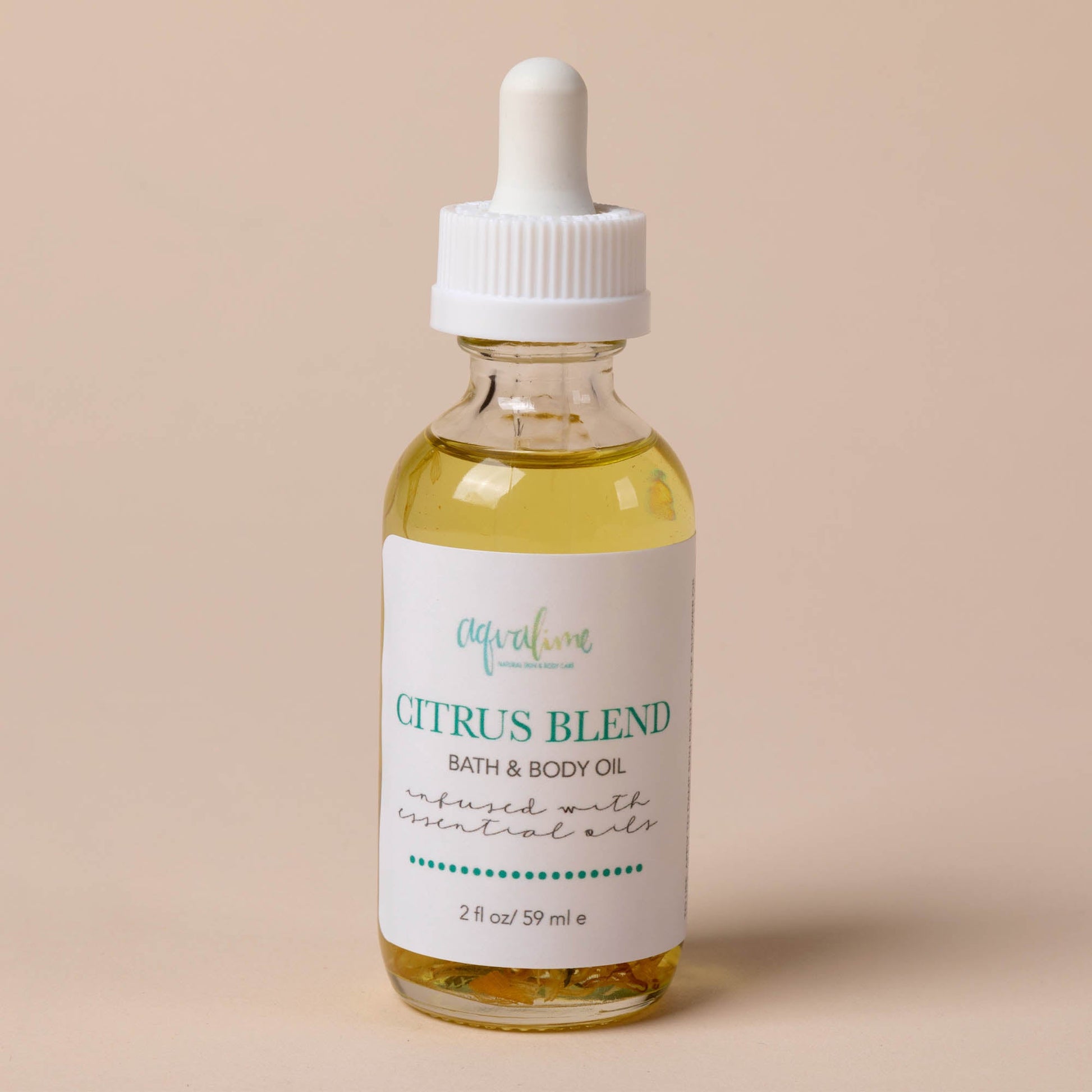 The bath and body oils from Aqualime are all natural body oils are made of a five oil blend plus Vitamin E. They are blended together to give maximum moisture to your skin without a greasy residue. They are vegan, non-comedogenic (will not clog pores) and non irritating. The oil absorbs quickly, penetrates deeply, and hydrates the skin. Goes on light and silky and great for all skin types. For that soft subtle scent that last all day, we use the finest pure essential oils.