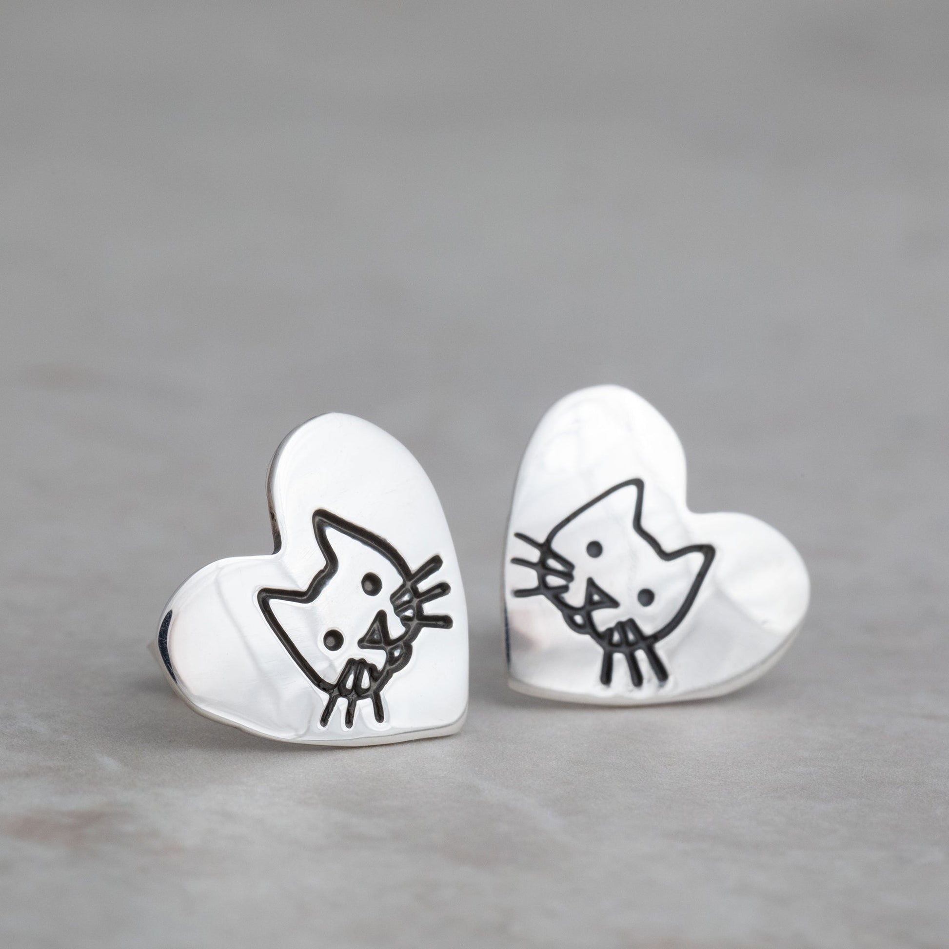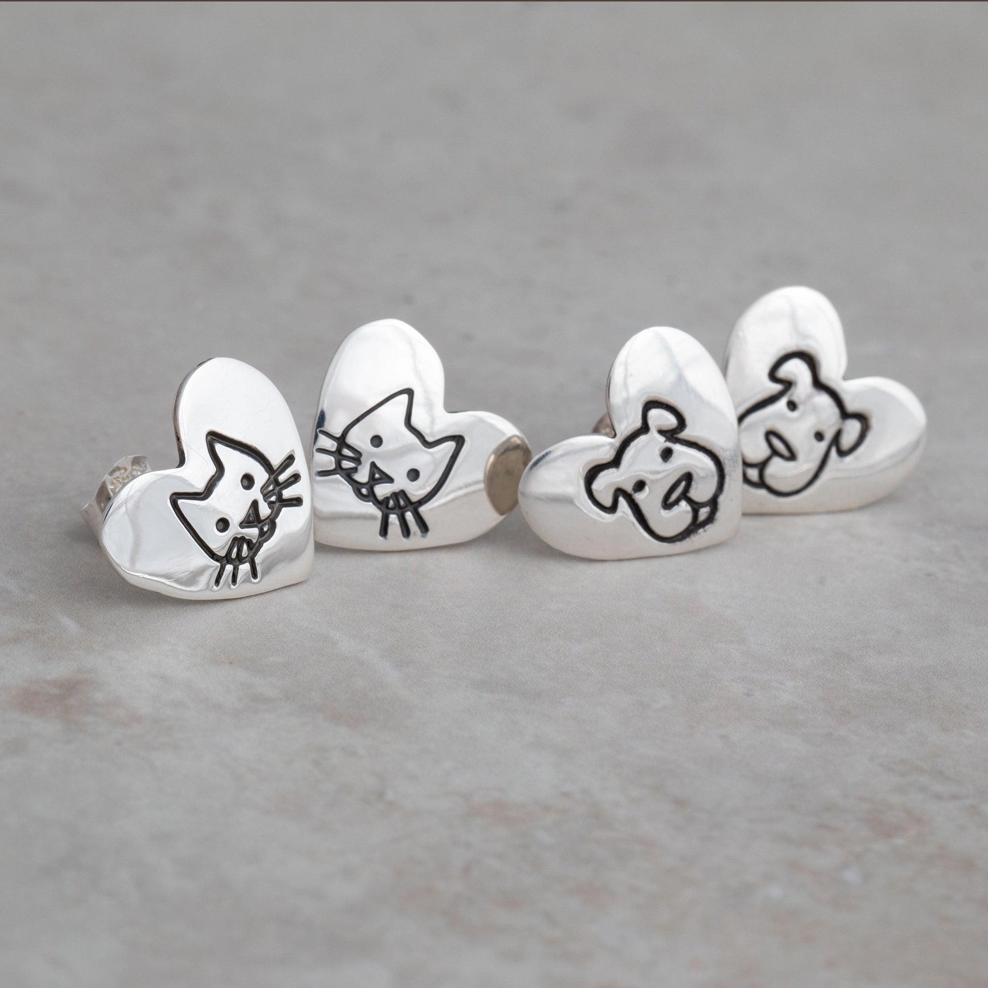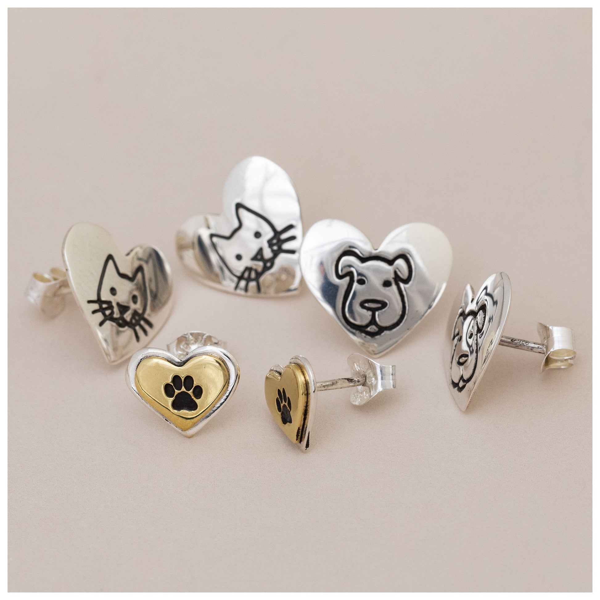 Layered brass and sterling silver hearts or sterling silver hearts with a pet face create a stunning, and uplifting accessory! Made by artisans in Mexico, each fair-trade pair of post earrings are a sweet, subtle statement piece and are perfect for everyday wear.