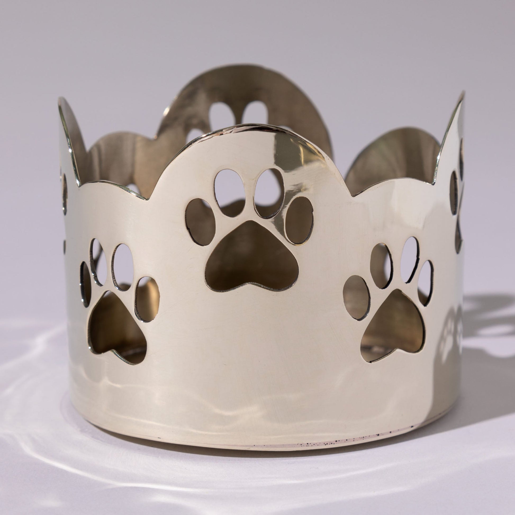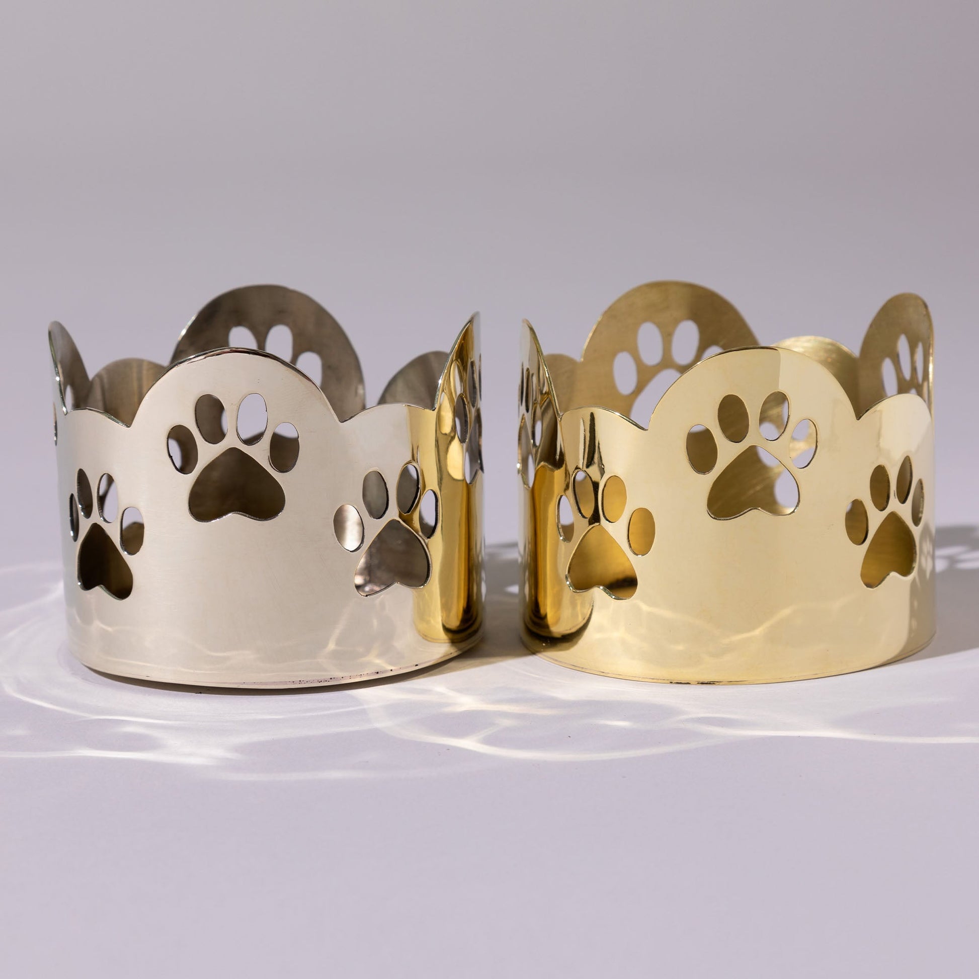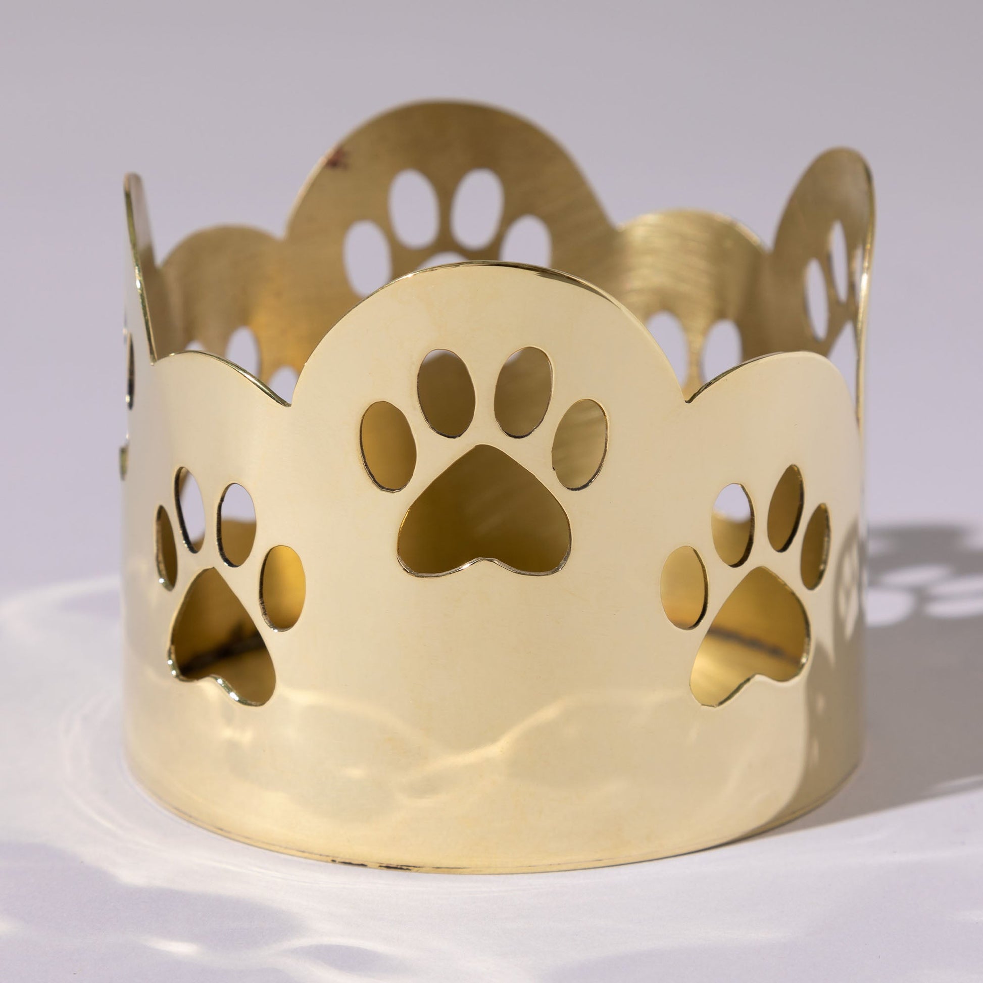 Handcrafted by artisans, each shining candle holder is reflective of light and your love of animals! Made with high quality mixed metals, featuring scalloped edges and cutout paw prints that wrap around the piece, its a small accent with a big message for animal advocacy.