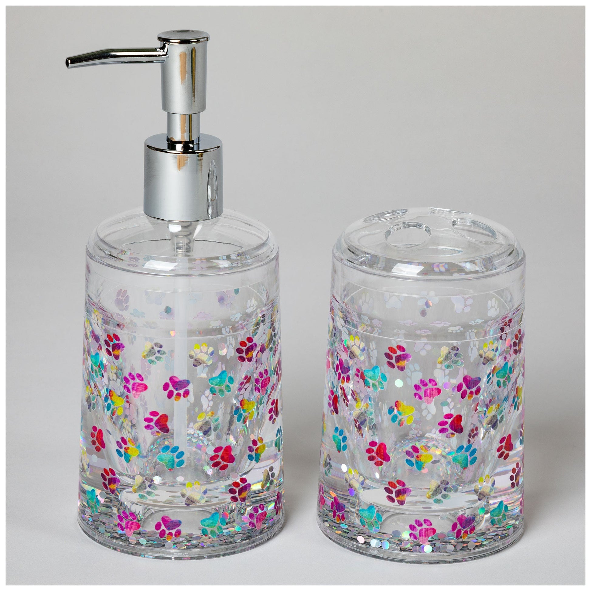 Paw Print Acrylic Soap Dispenser & Toothbrush Holder Set