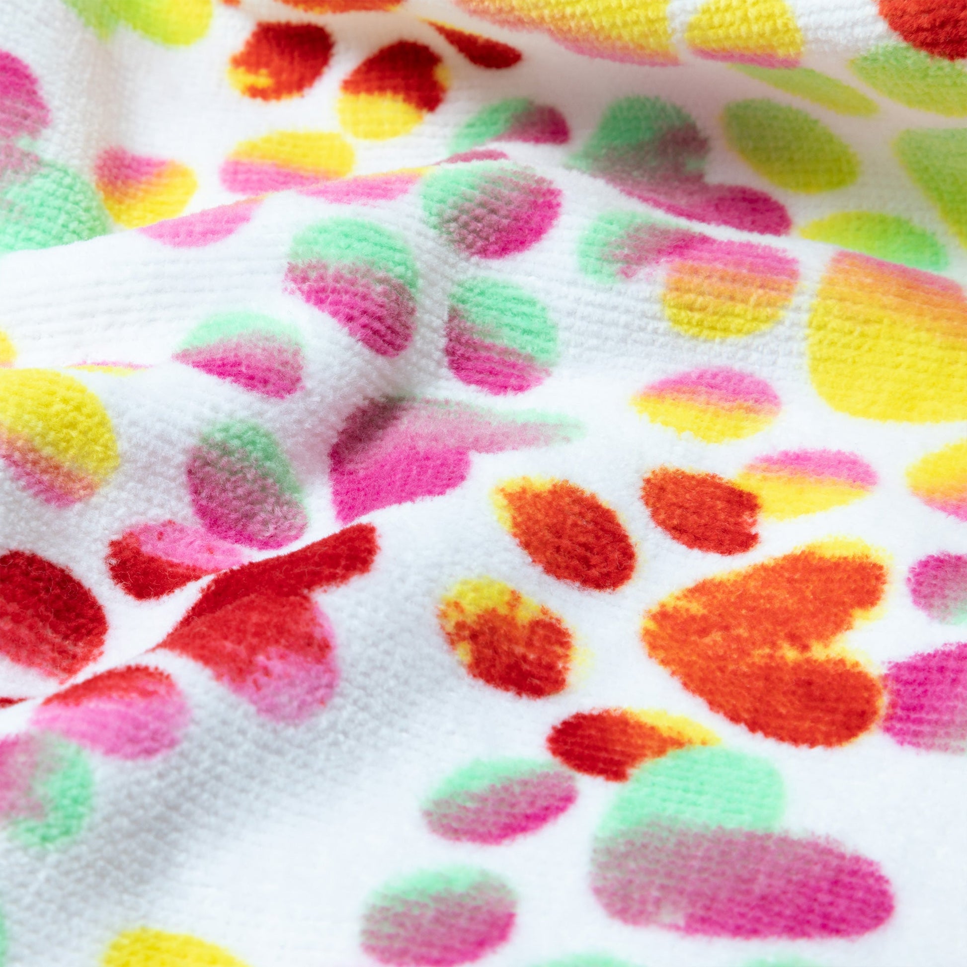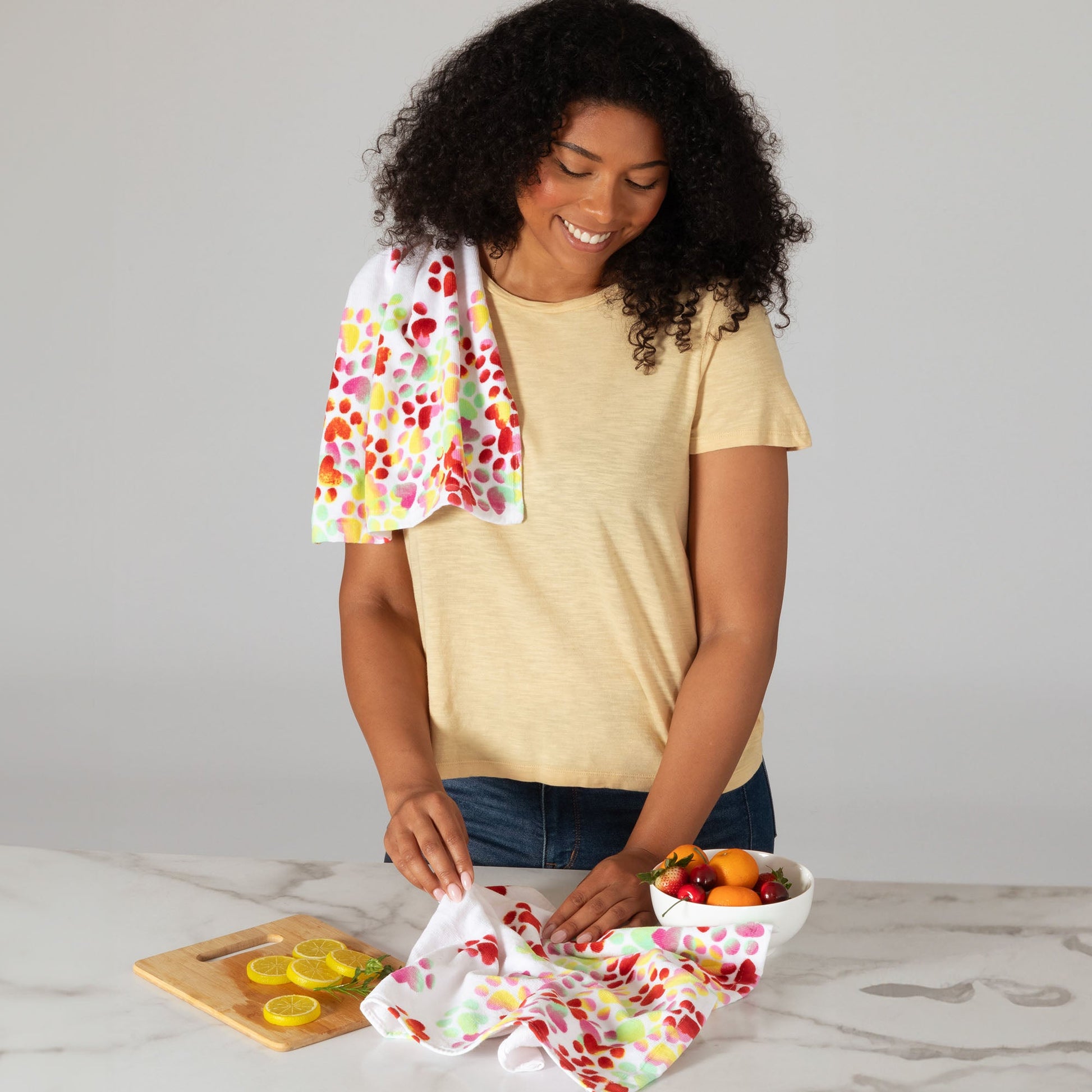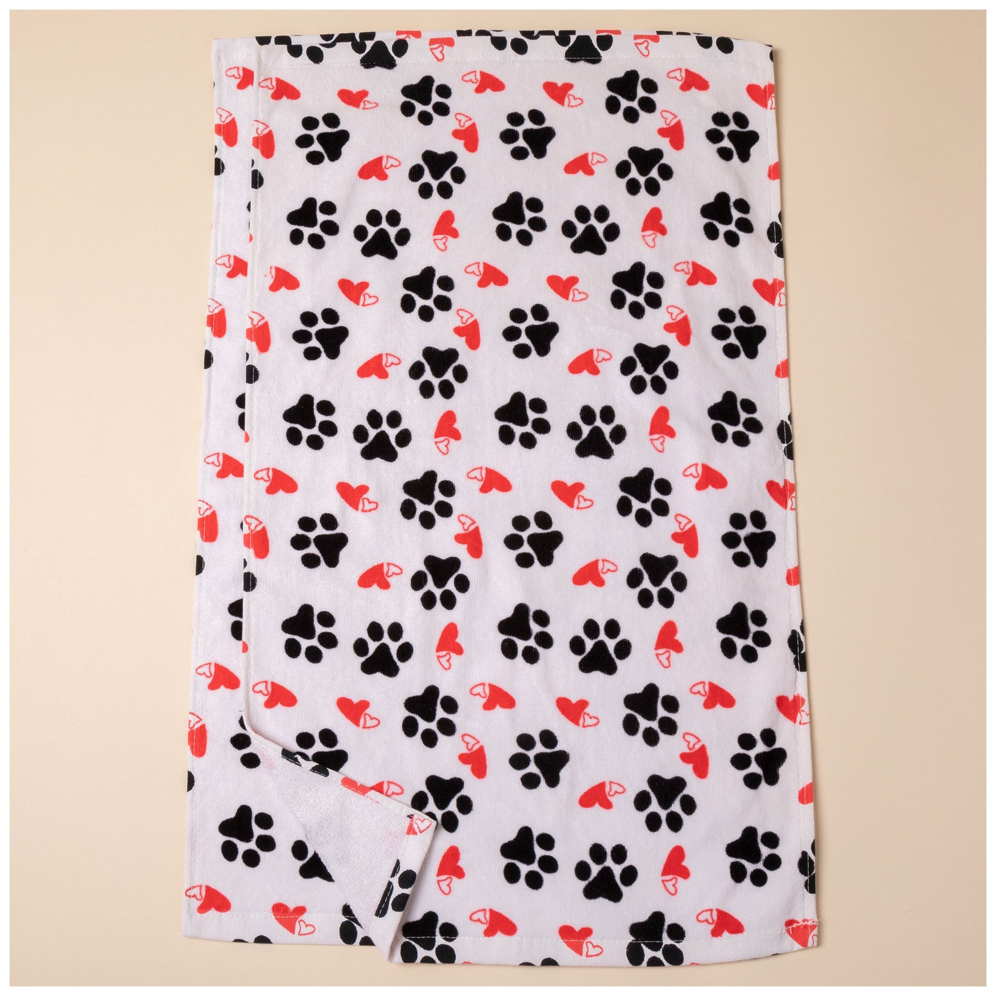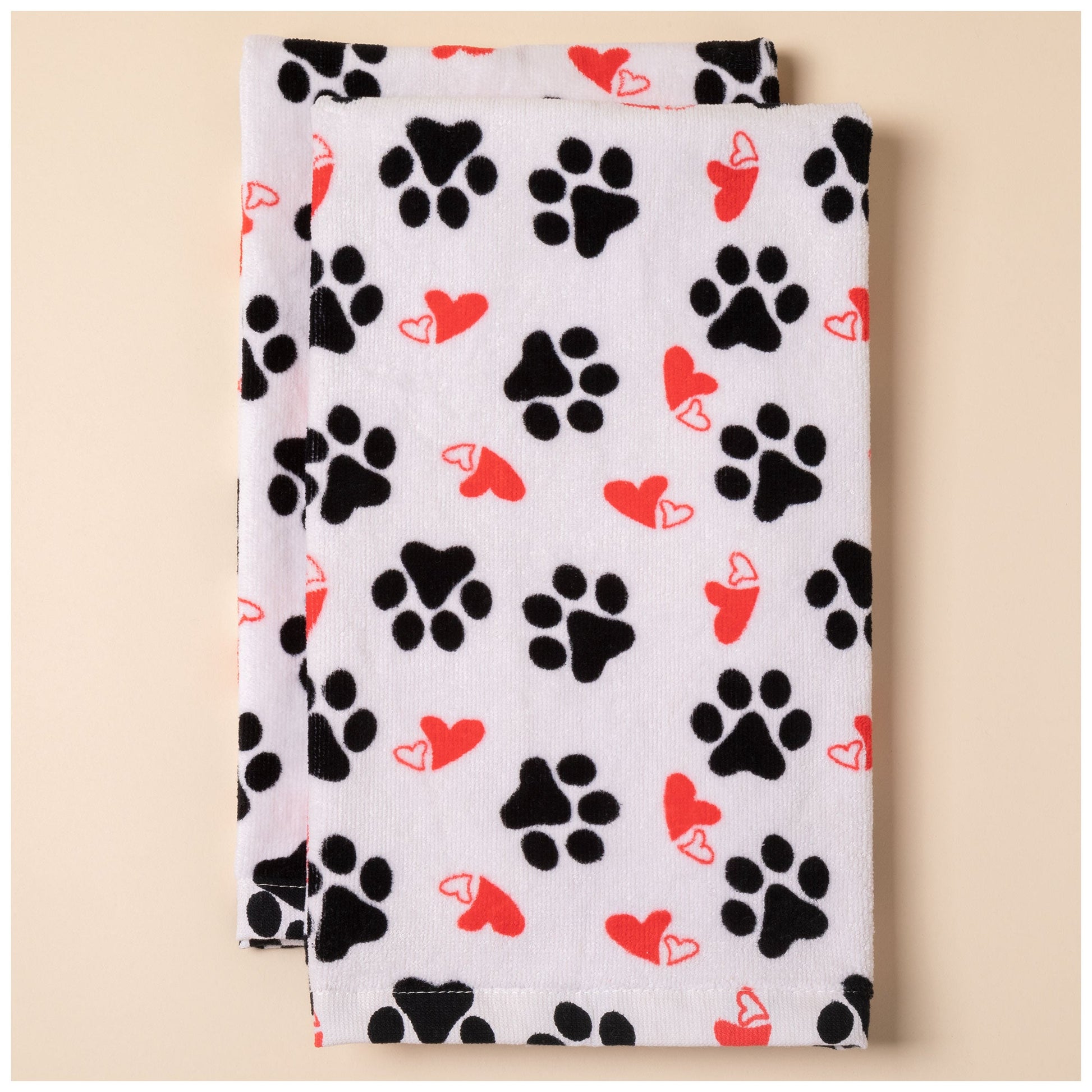 Soft-to-the-touch terry cloth fabric dries hands fast while the colorful paw print design lifts your spirit!