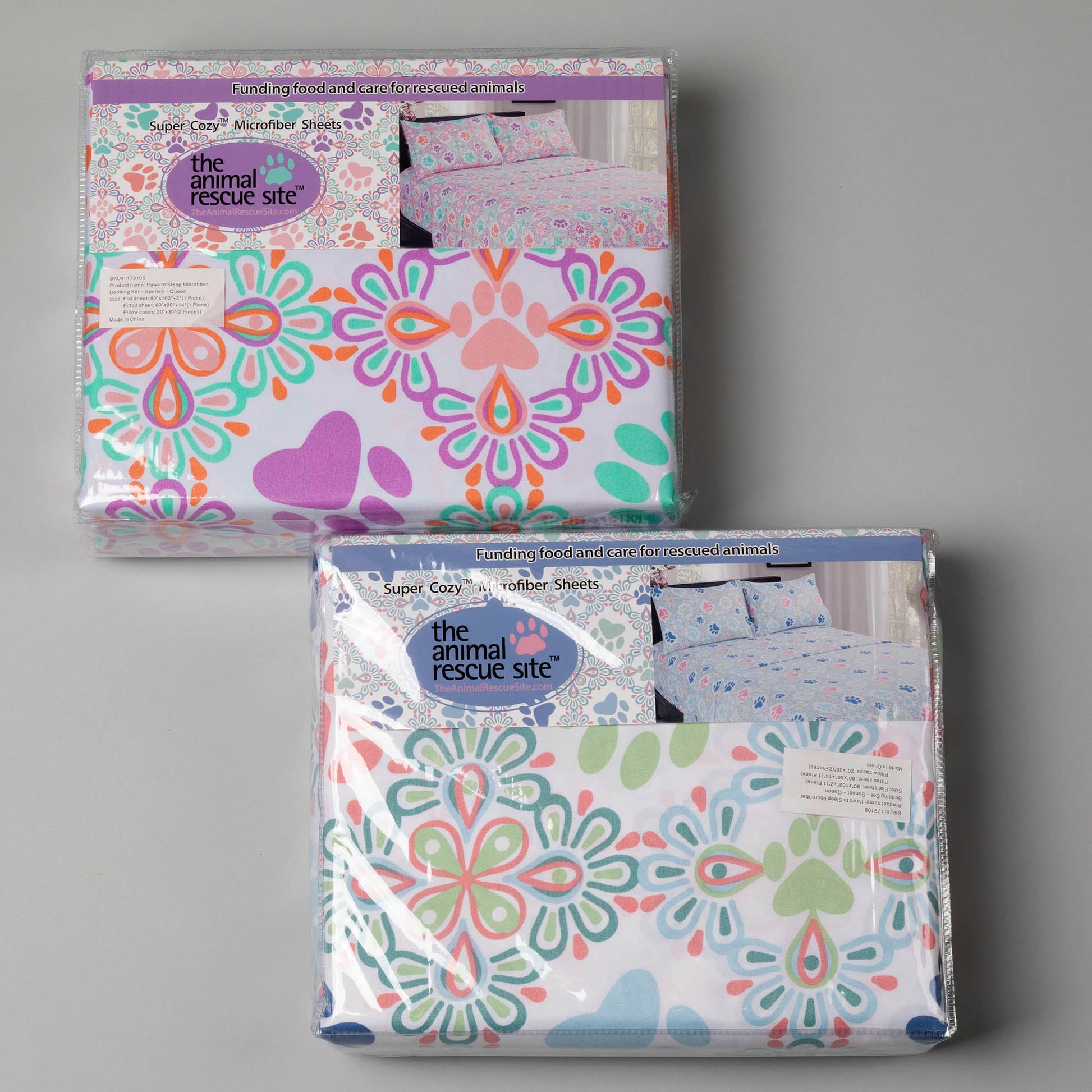 Gorgeous colors and pretty paw print designs pattern this super soft microfiber sheet set. Get a restful night's sleep on sheets that are as cozy as they are colorful and easy to care for!