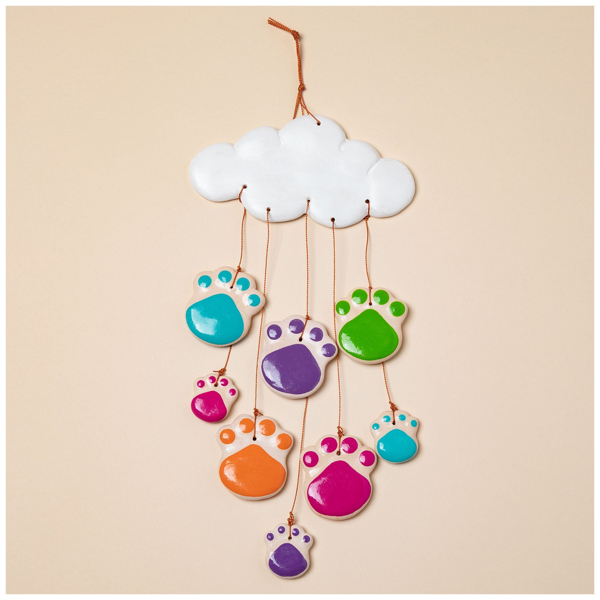 Whimsical color and fair-trade charm softly chime in the breeze with this colorful ceramic wind chime. Featuring a white cloud raining down a rainbow of paw prints as a symbol of your animal advocacy!