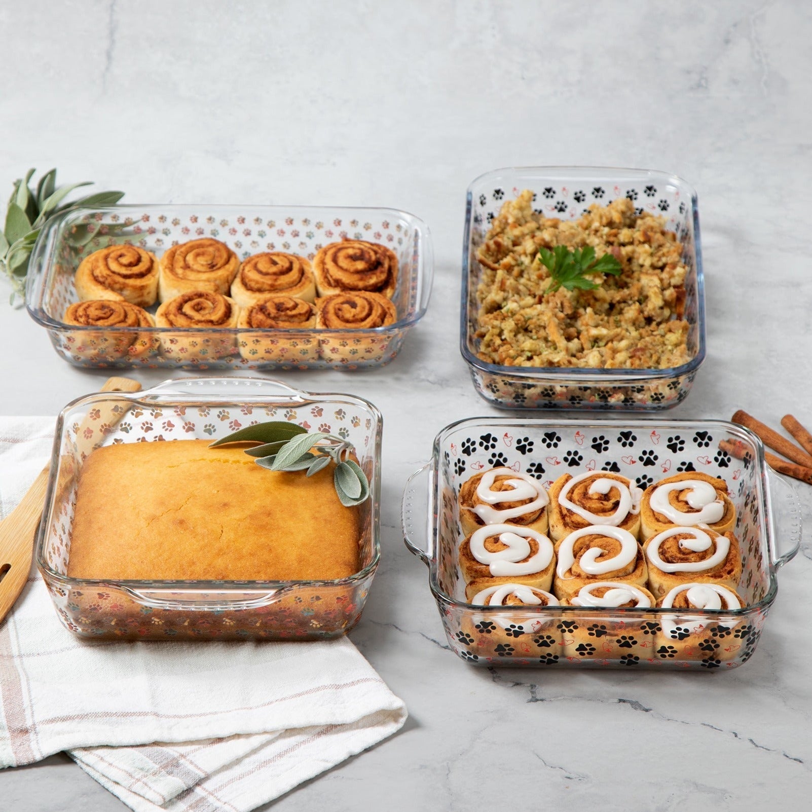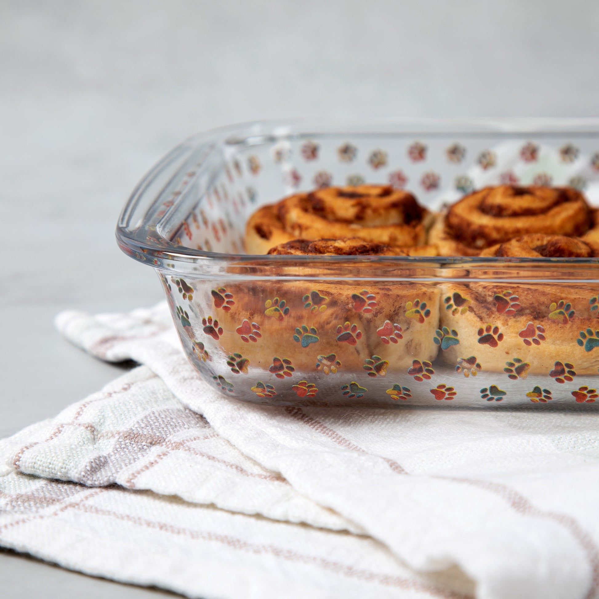 Even your day-to-day activities are filled with paw prints! Patterned in paw prints around the outside edges, each baking dish adds a playful spin to your potluck, favorite dessert, even a or weeknight dinner. Plus, they are made from the best borosilicate glass, which can withstand high oven temperatures.