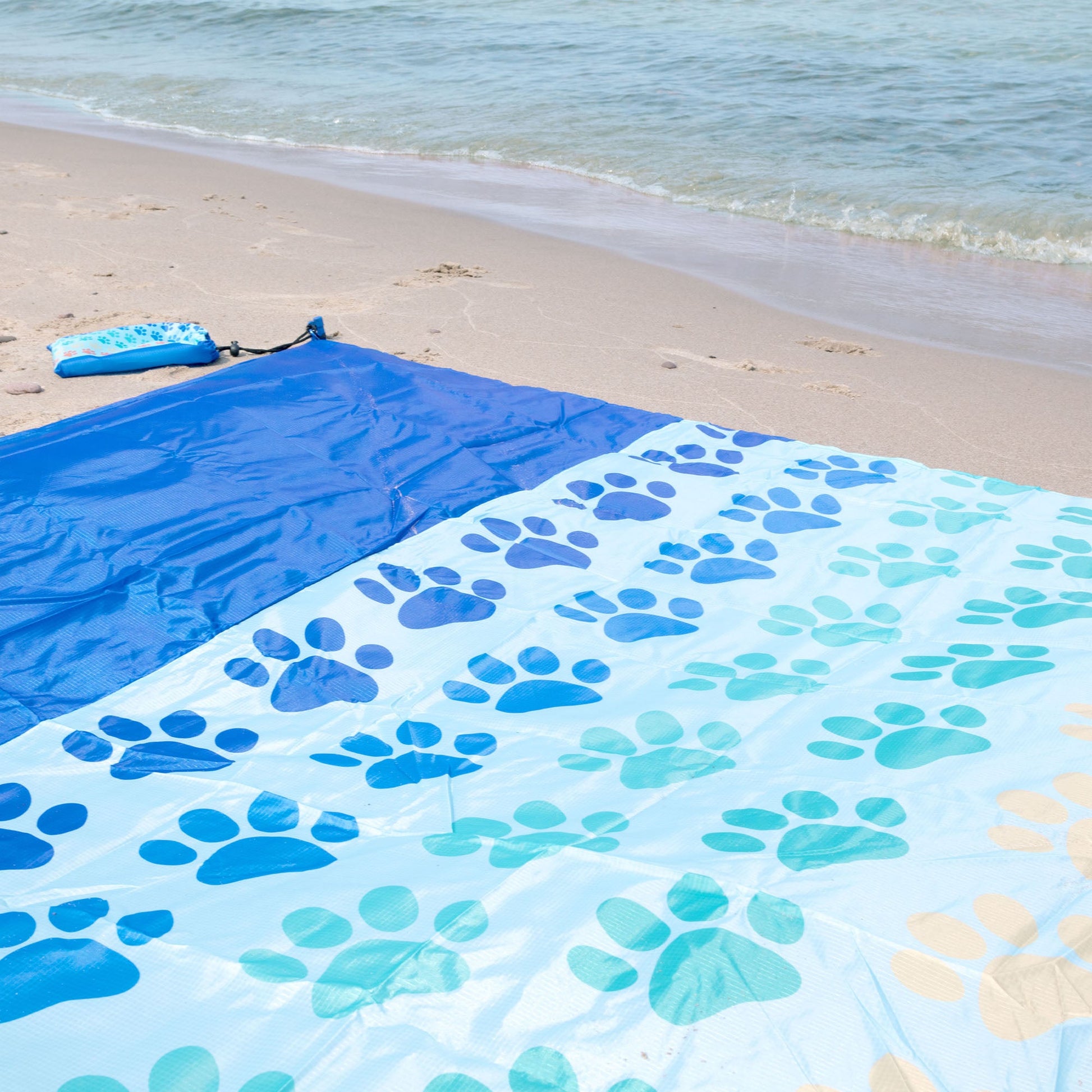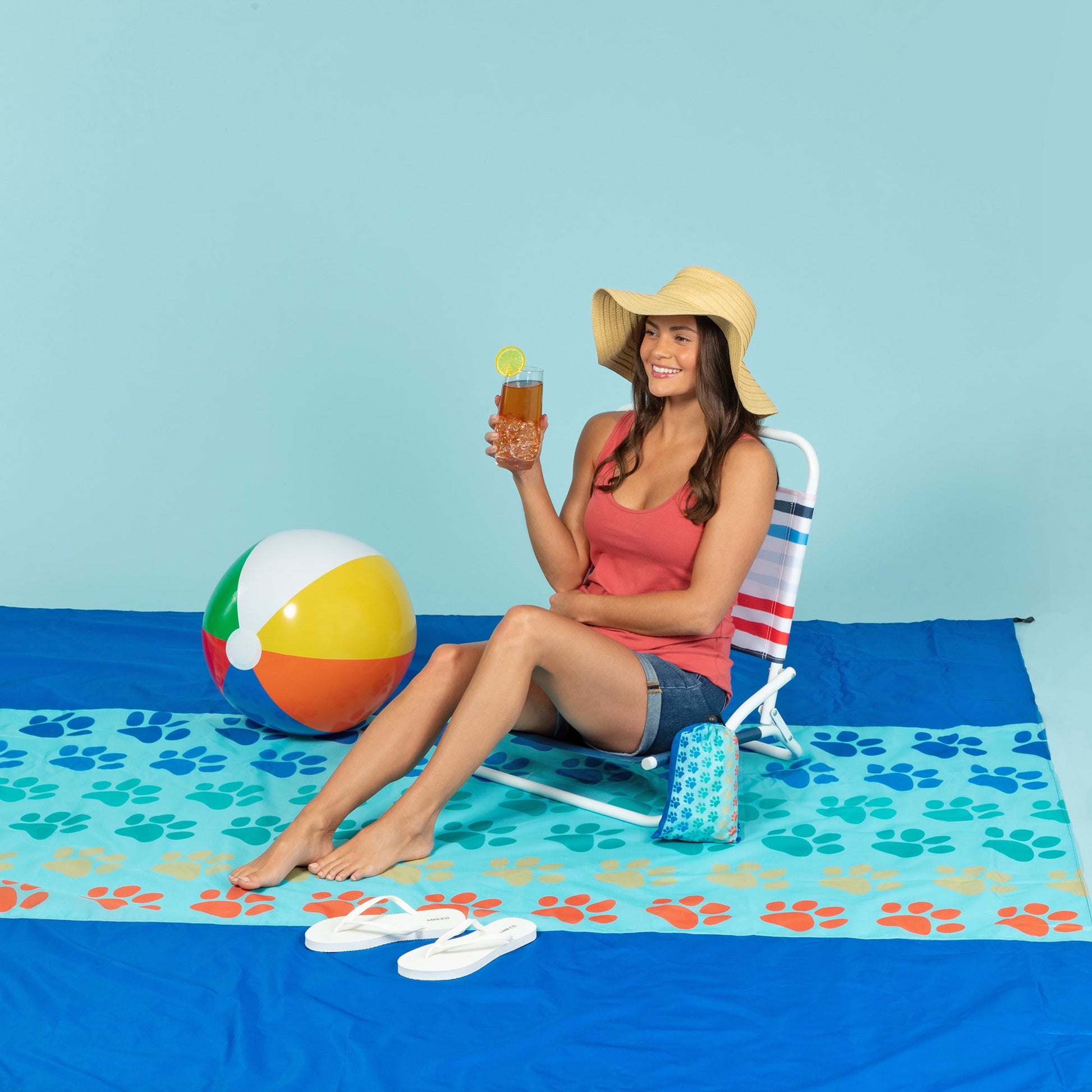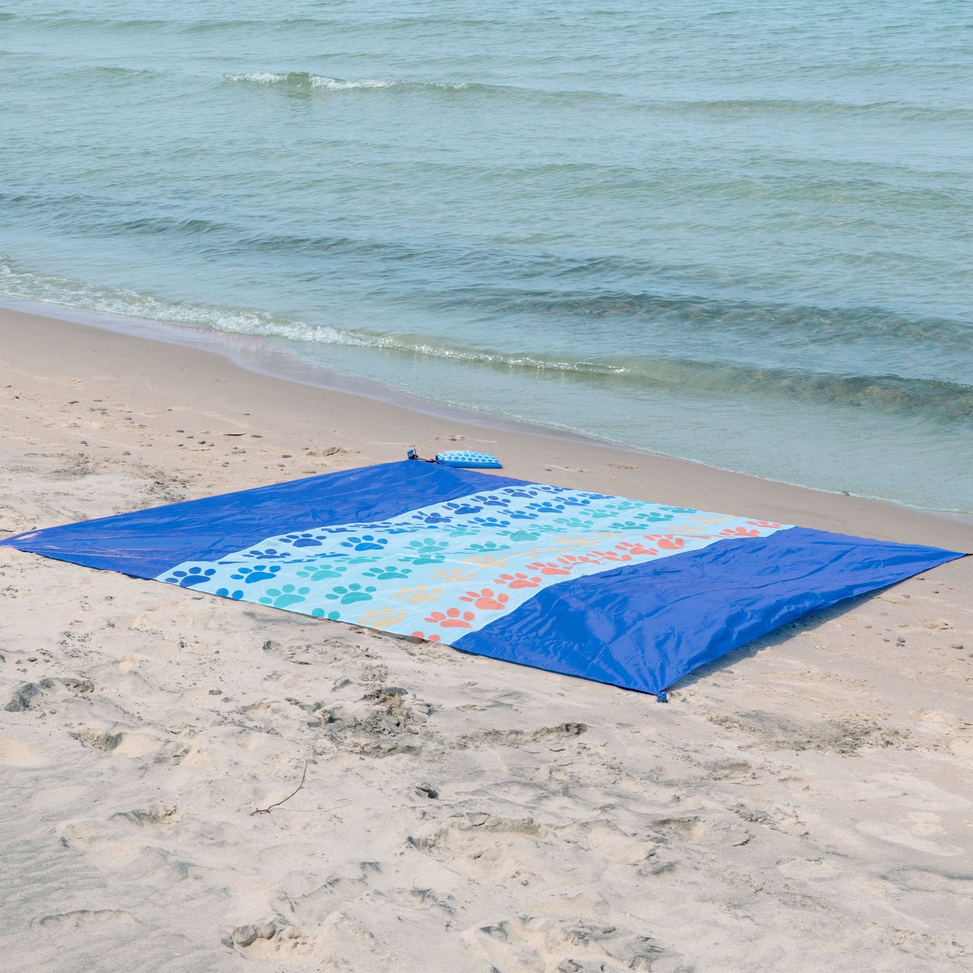 Bring some animal fun to the beach with you with this colorful paw print beach blanket. Stake into the ground to keep from flying away, and enjoy lounging on while you soak up the sun. This nylon beach blanket is a must have for the summer.