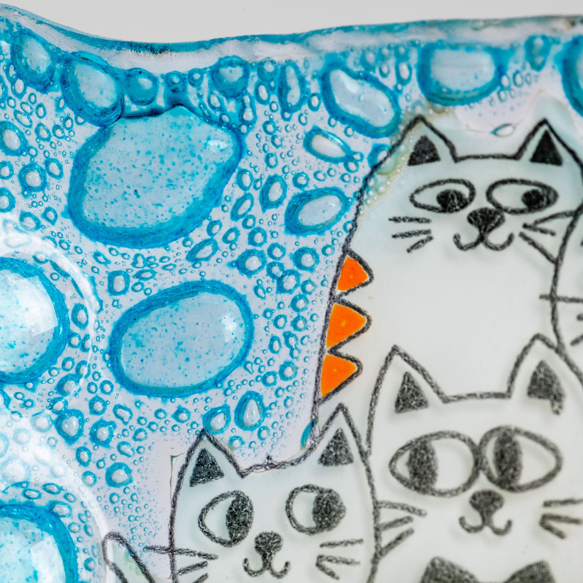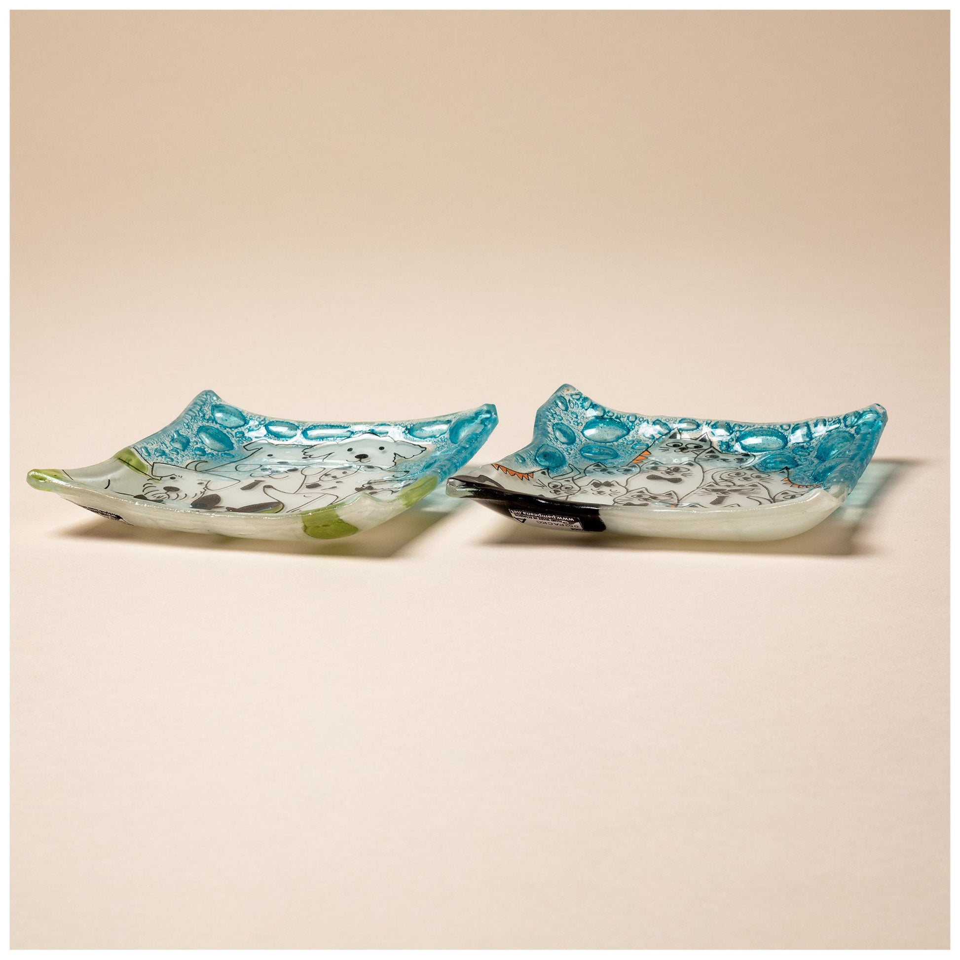 Hand-painted in a brilliant sky blue with green grass, this square trinket dish features a cluster of cats or a group of bow-tie wearing dogs. Hand-painted by artisans in Ecuador, this petite dish is a perfect catch all for jewelry or other small treasured items.