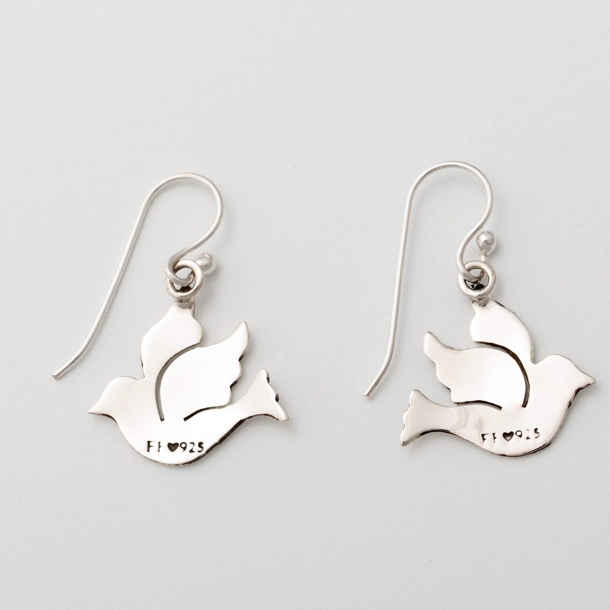 A detailed winged silhouette makes this symbolic pair of peace doves a beautiful accessory. Inspiring peace while supporting the work of the artisans who crafted each one by hand, this sterling silver accessory is a shining treasure perfect for everyday wear.