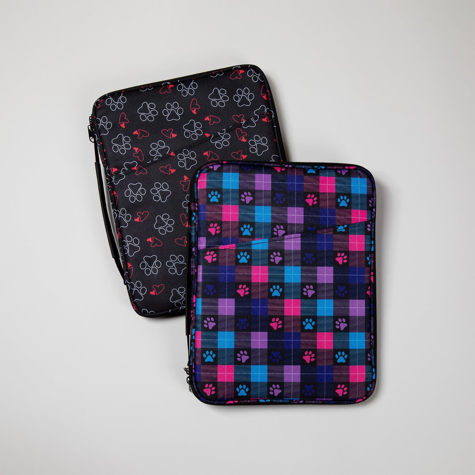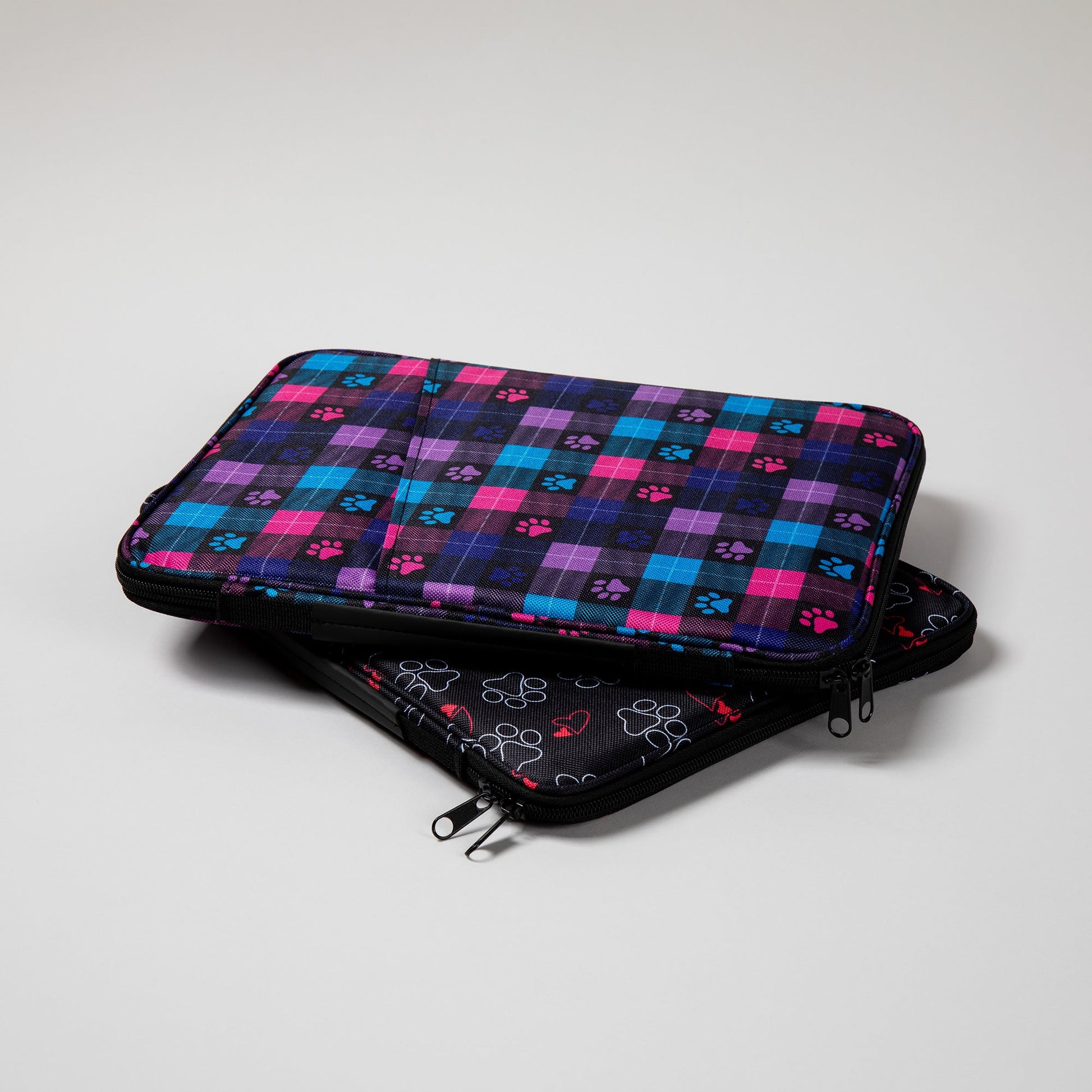 Perfectly designed to protect and carry your tablet on the go, the Pawfectly Patterned Tablet Case is sure to be a great home for your tablet. Not only is the Pawfectly Patterned Tablet Case scratch and splash resistant, but it also provides extra utility with its 3 inner pockets and outer pocket to carry and protect other smaller items.