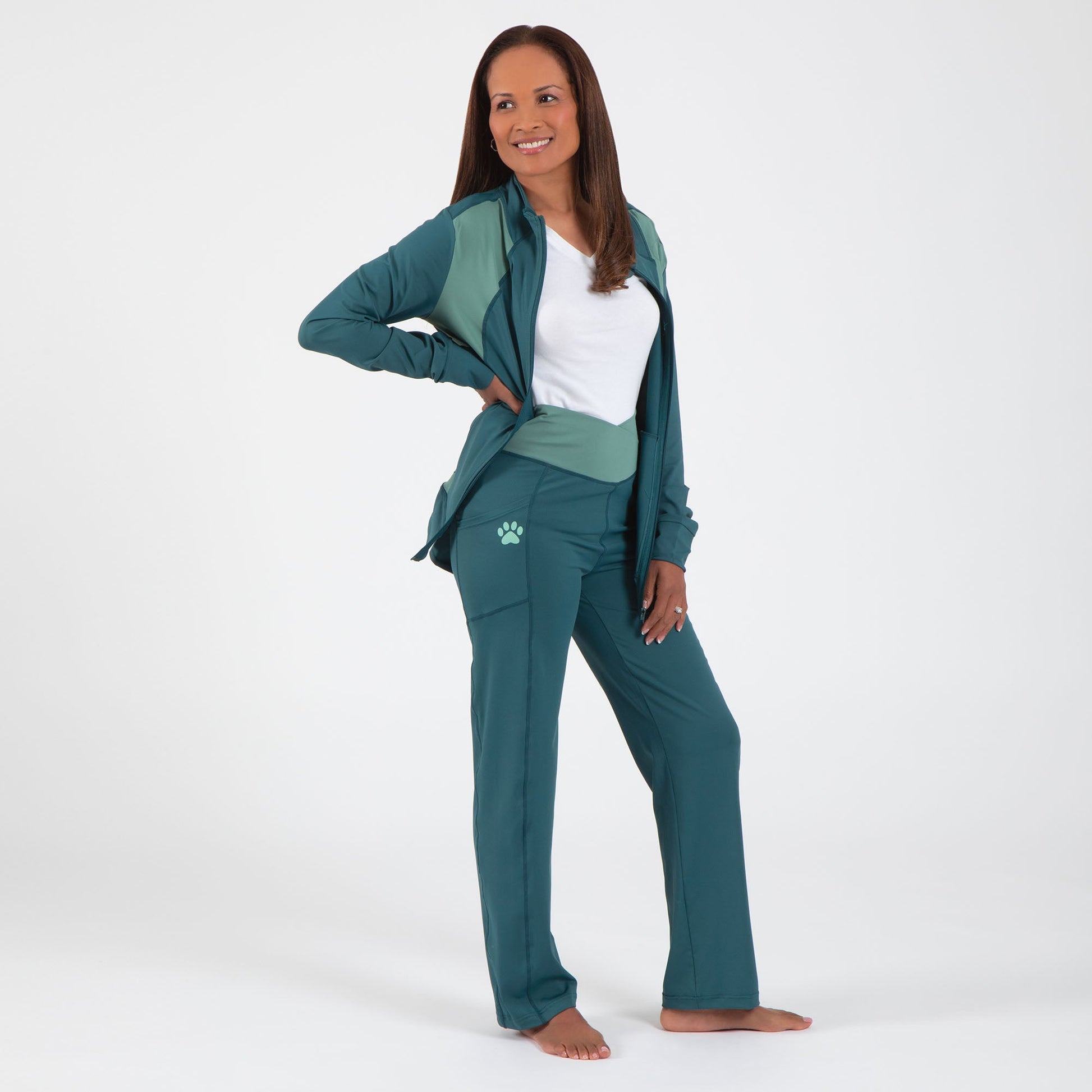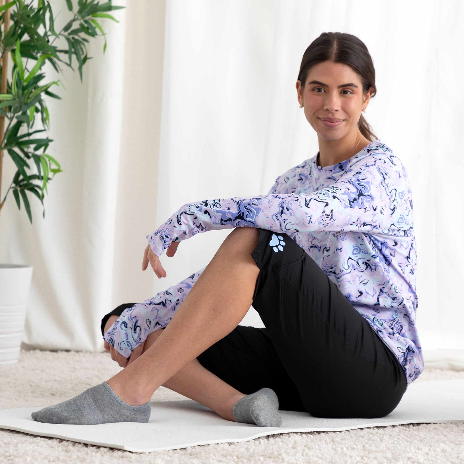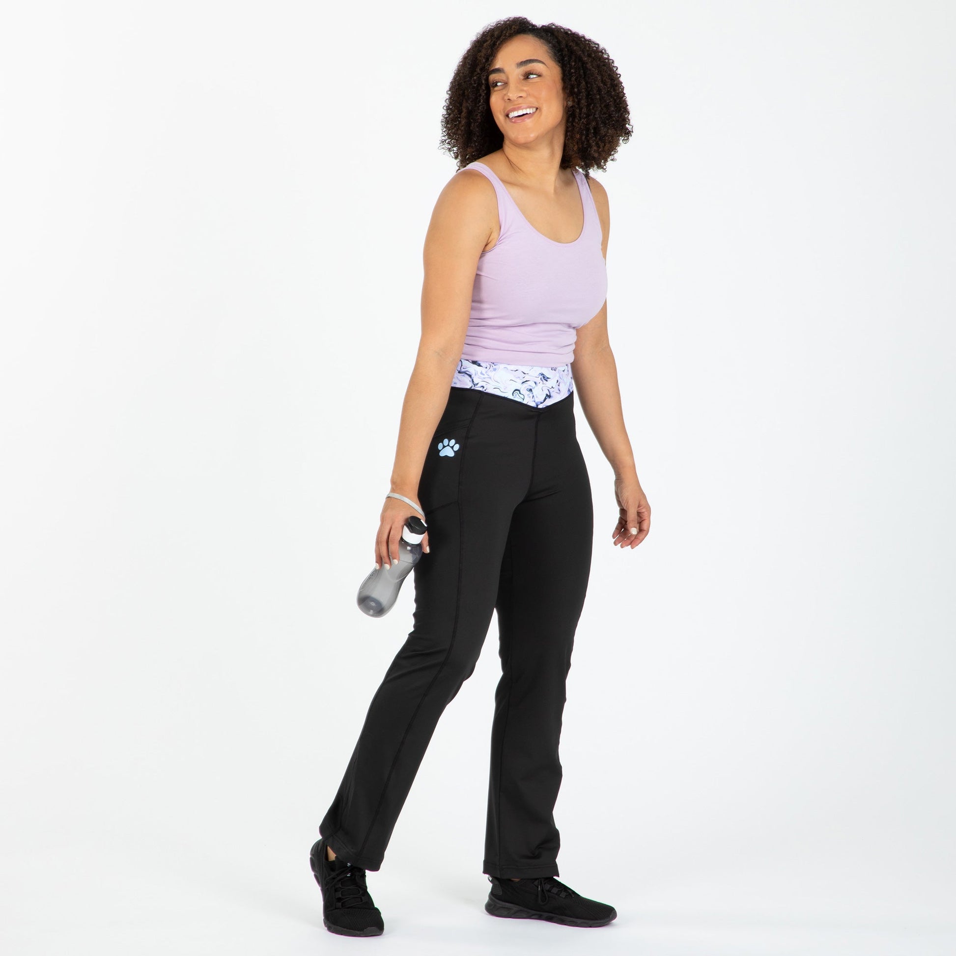 Perfect for lounging, running errands, or working on your yoga practice! Each piece is made with a soft but stretchy fabric that provides comfort and support, and a single paw print decal, boasting your love of your furry friends!