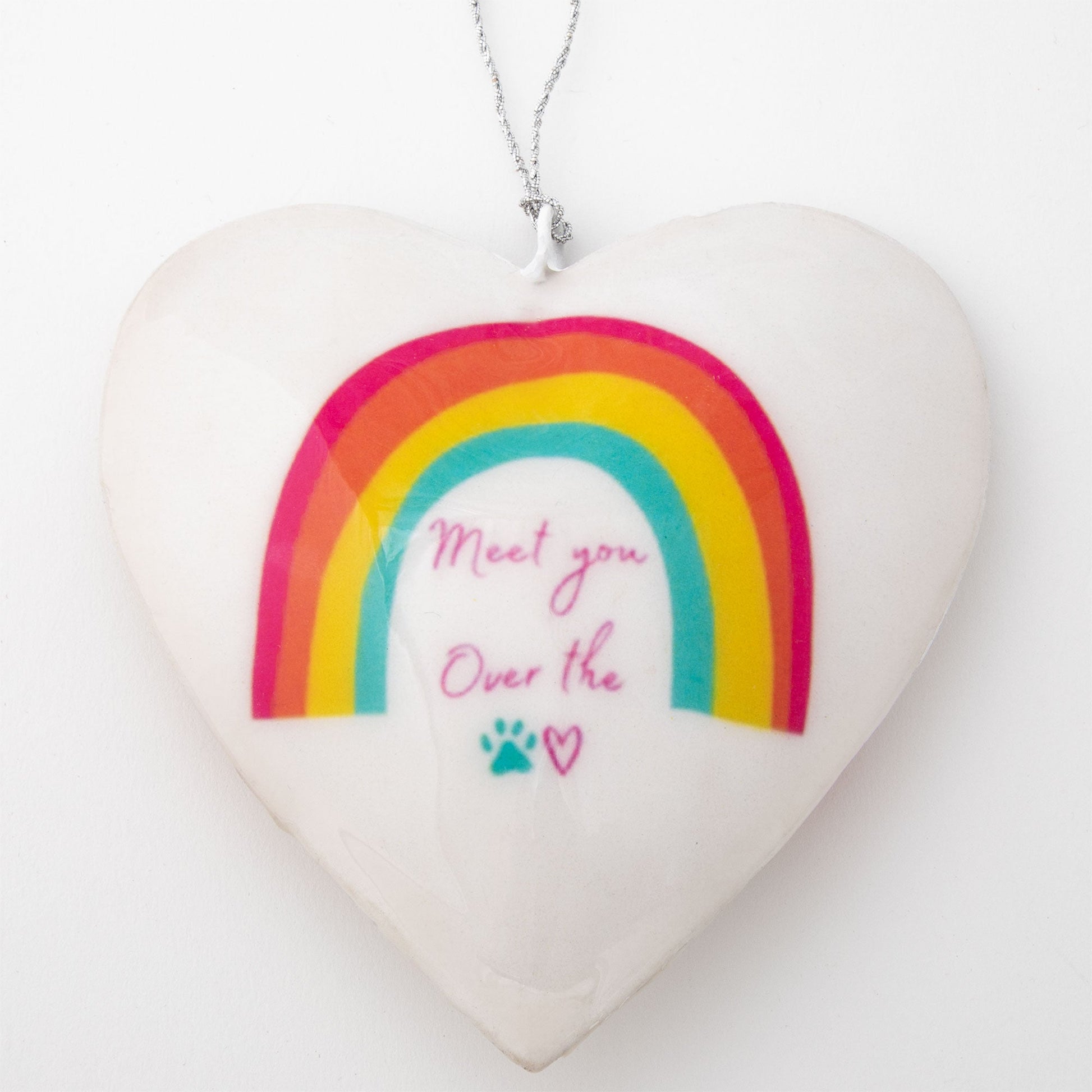 You miss your beloved furry friend every day, but the holidays can be especially painful without them. Honoring your best friend that is no longer by your side but forever in your heart, this paper mache heart symbolizes their crossing over the rainbow bridge.