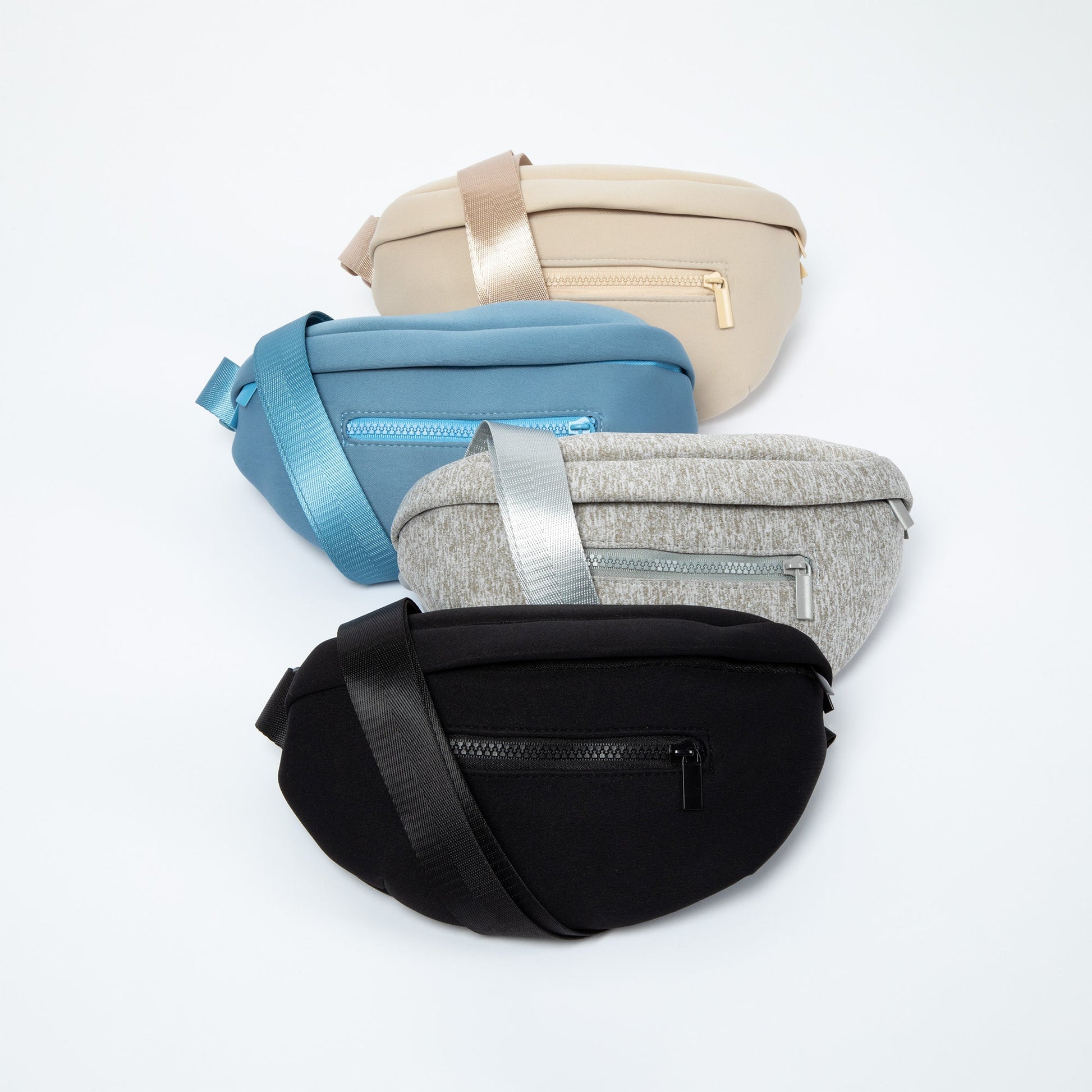 The minimalist's everyday accessory! Made with neoprene for softness, stain-resistance and added durability, this fanny pack style bag features zippered pockets, key loops, and and adjustable strap for the perfect fit.