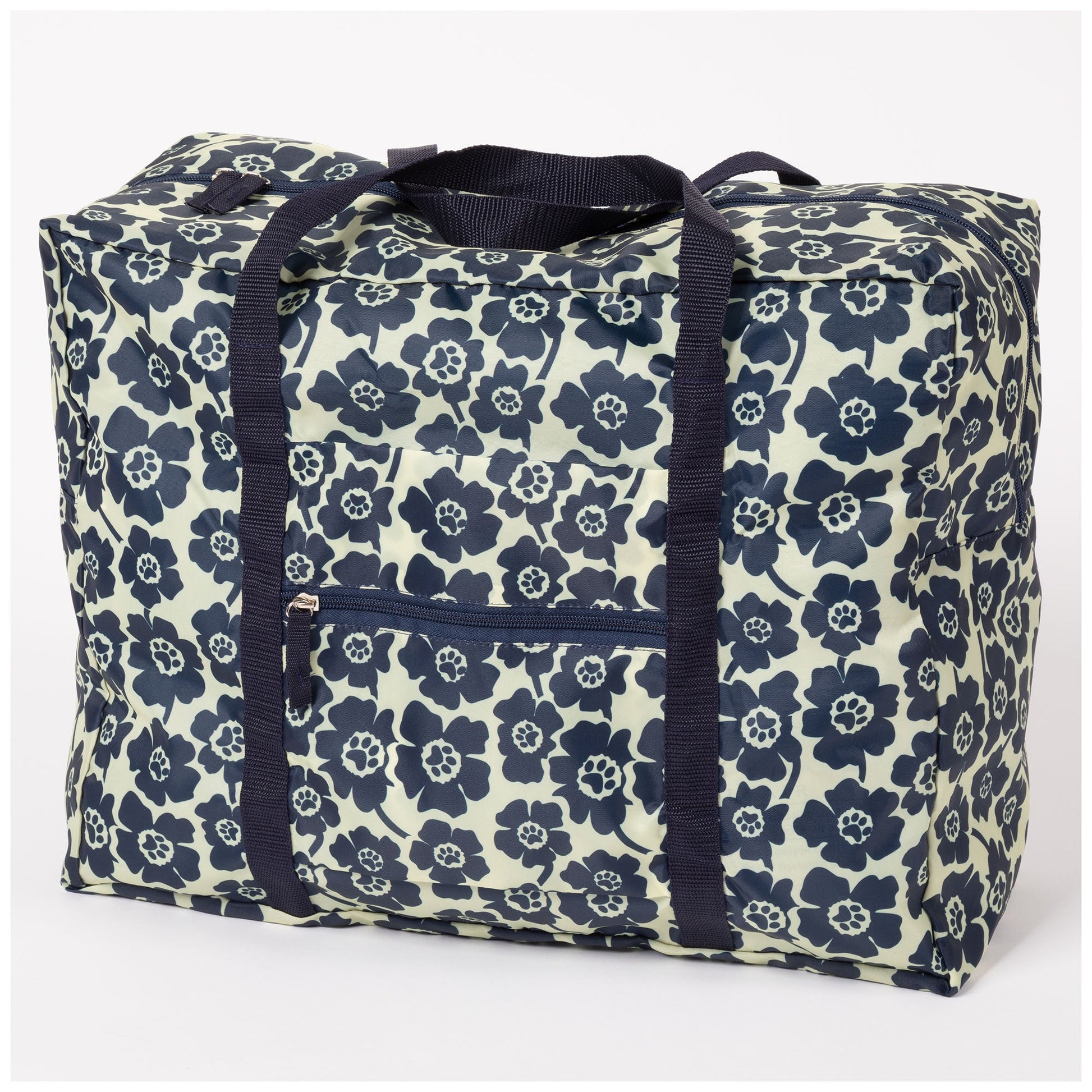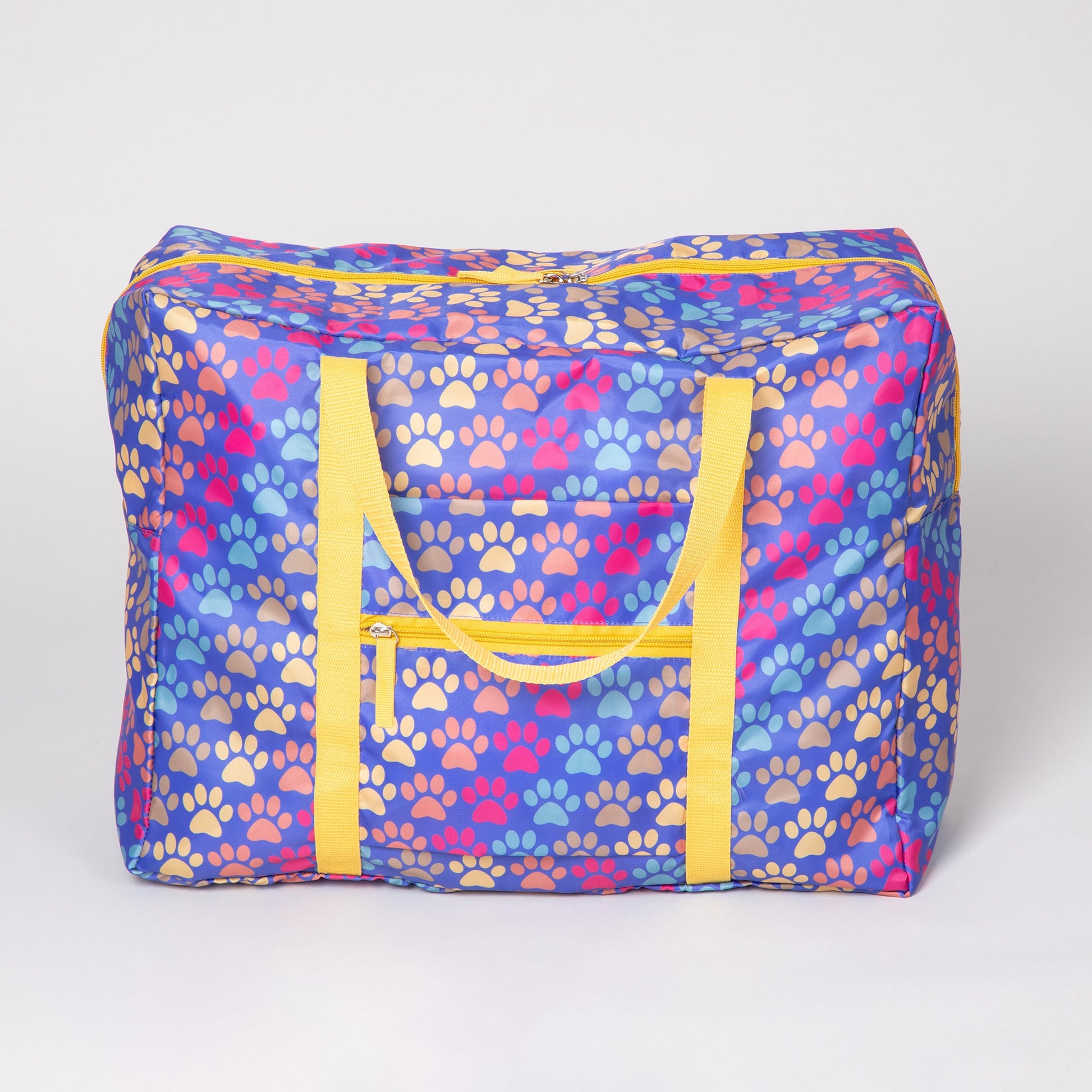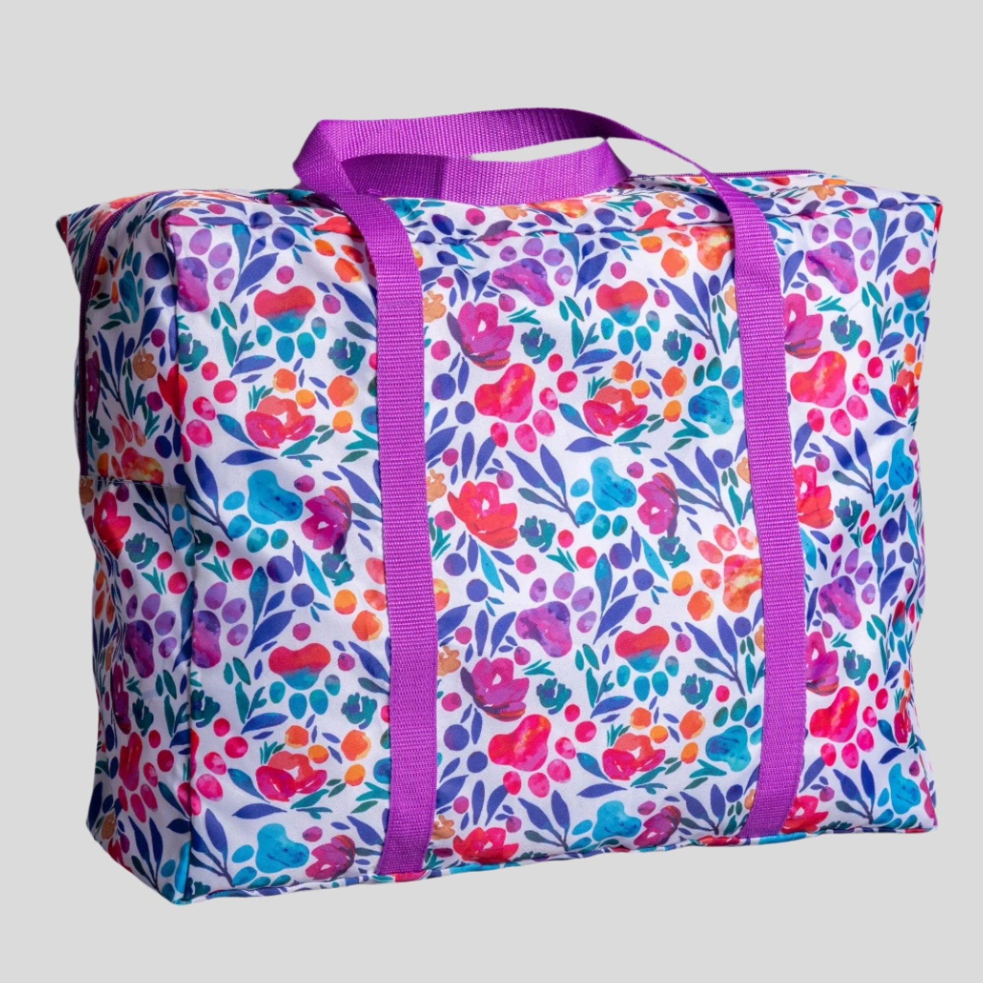 A frequent traveler's must-have duffel! Made with a super lightweight, packable, durable polyester patterned with colorful prints and a front zipper pocket for organized storage. Plus, the trolley sleeve on the bag makes it easy to loop onto your suitcase handle while you're on the move!