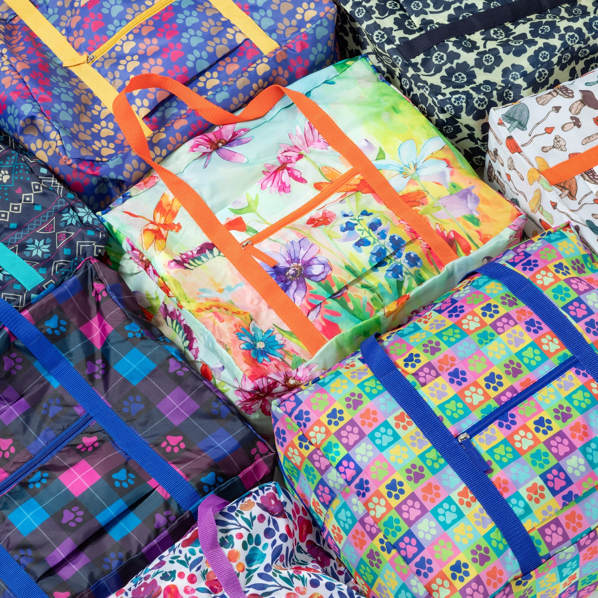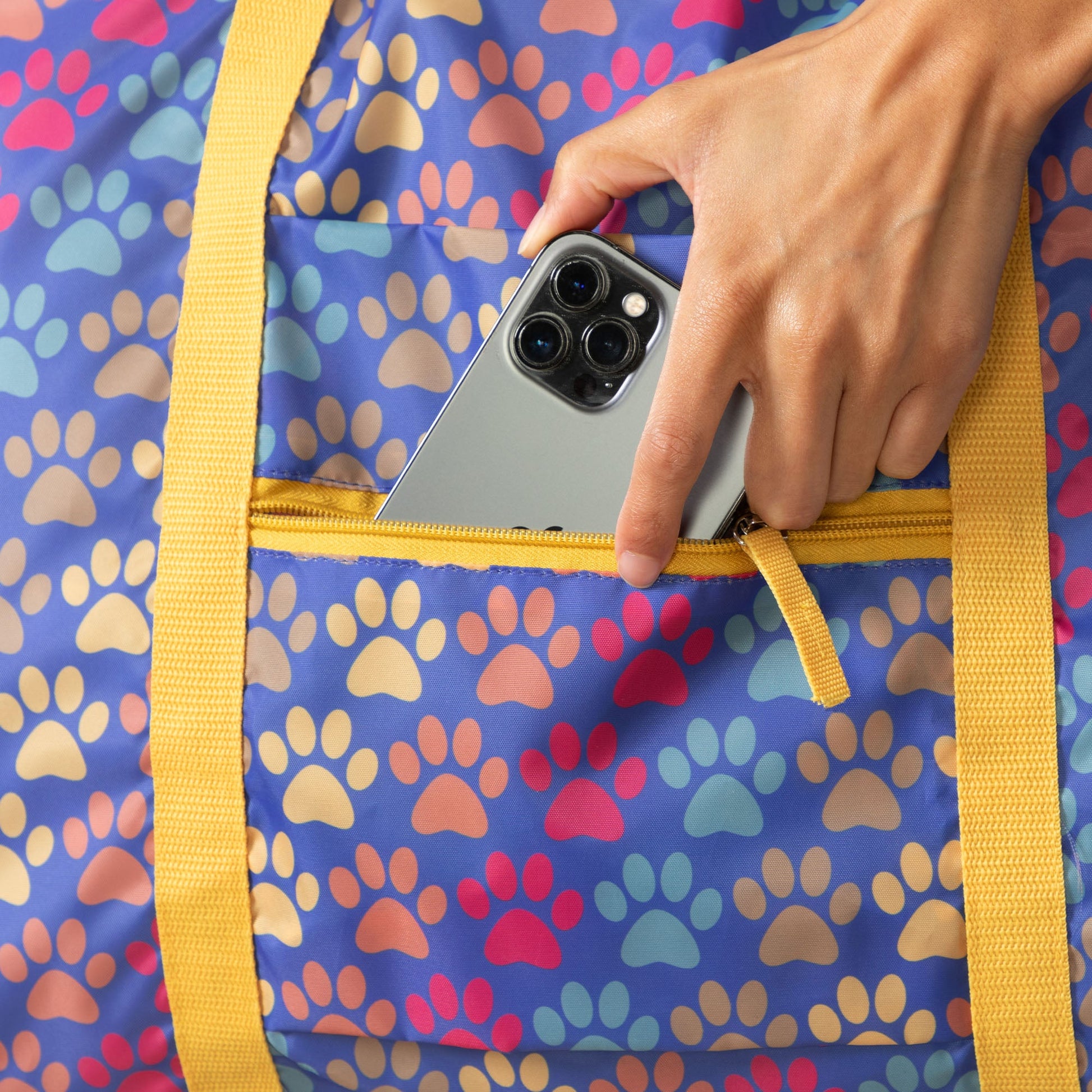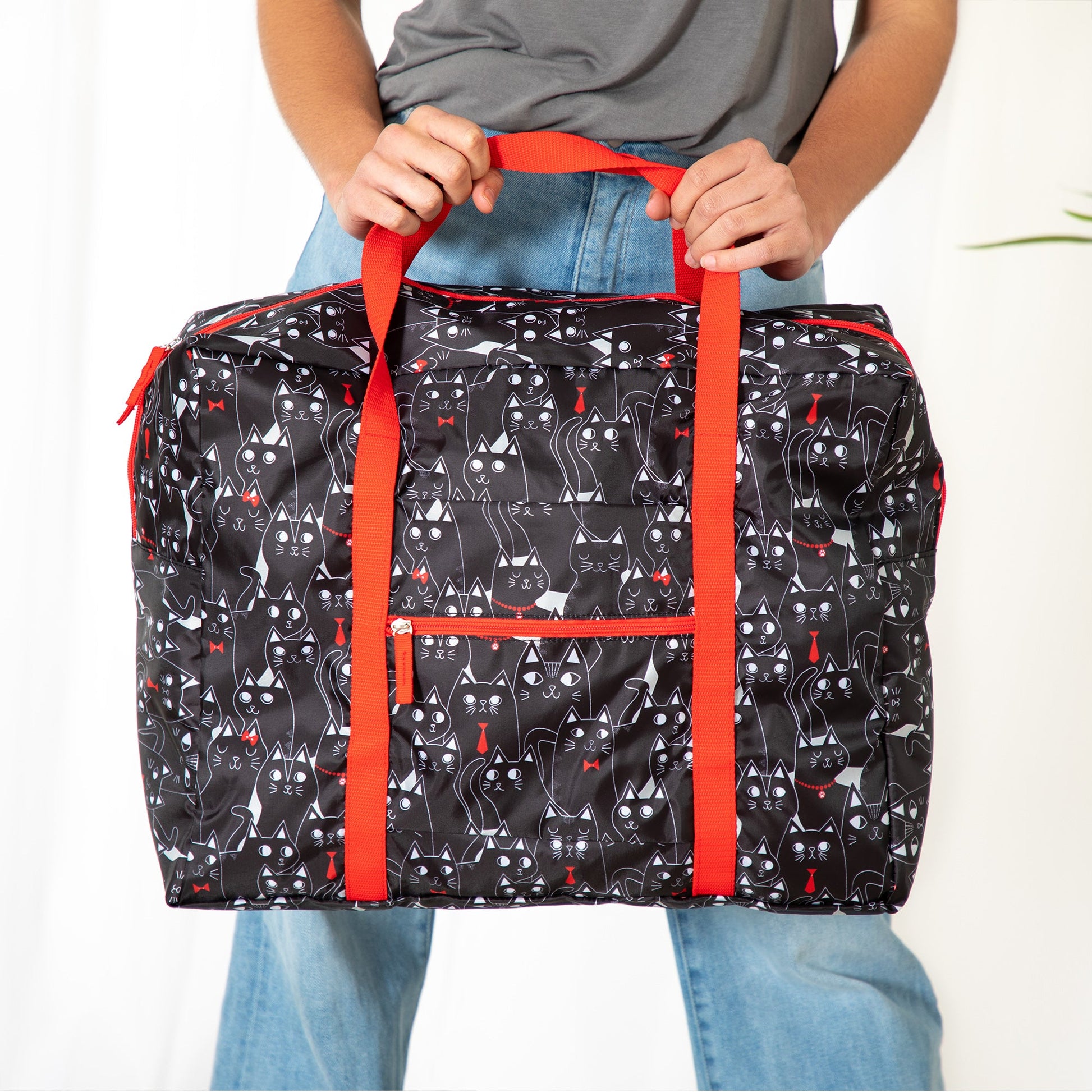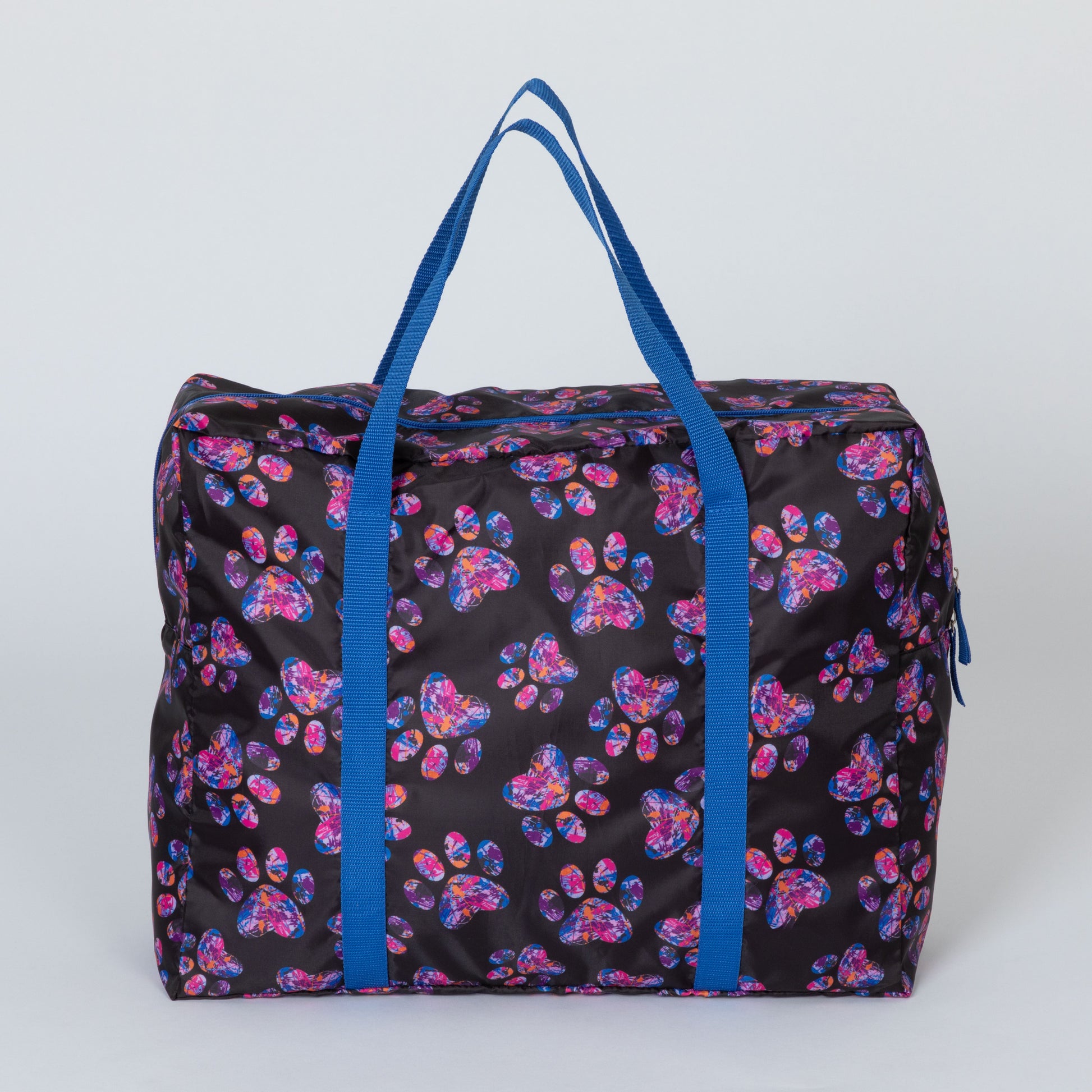 A frequent traveler's must-have duffel! Made with a super lightweight, packable, durable polyester patterned with colorful prints and a front zipper pocket for organized storage. Plus, the trolley sleeve on the bag makes it easy to loop onto your suitcase handle while you're on the move!