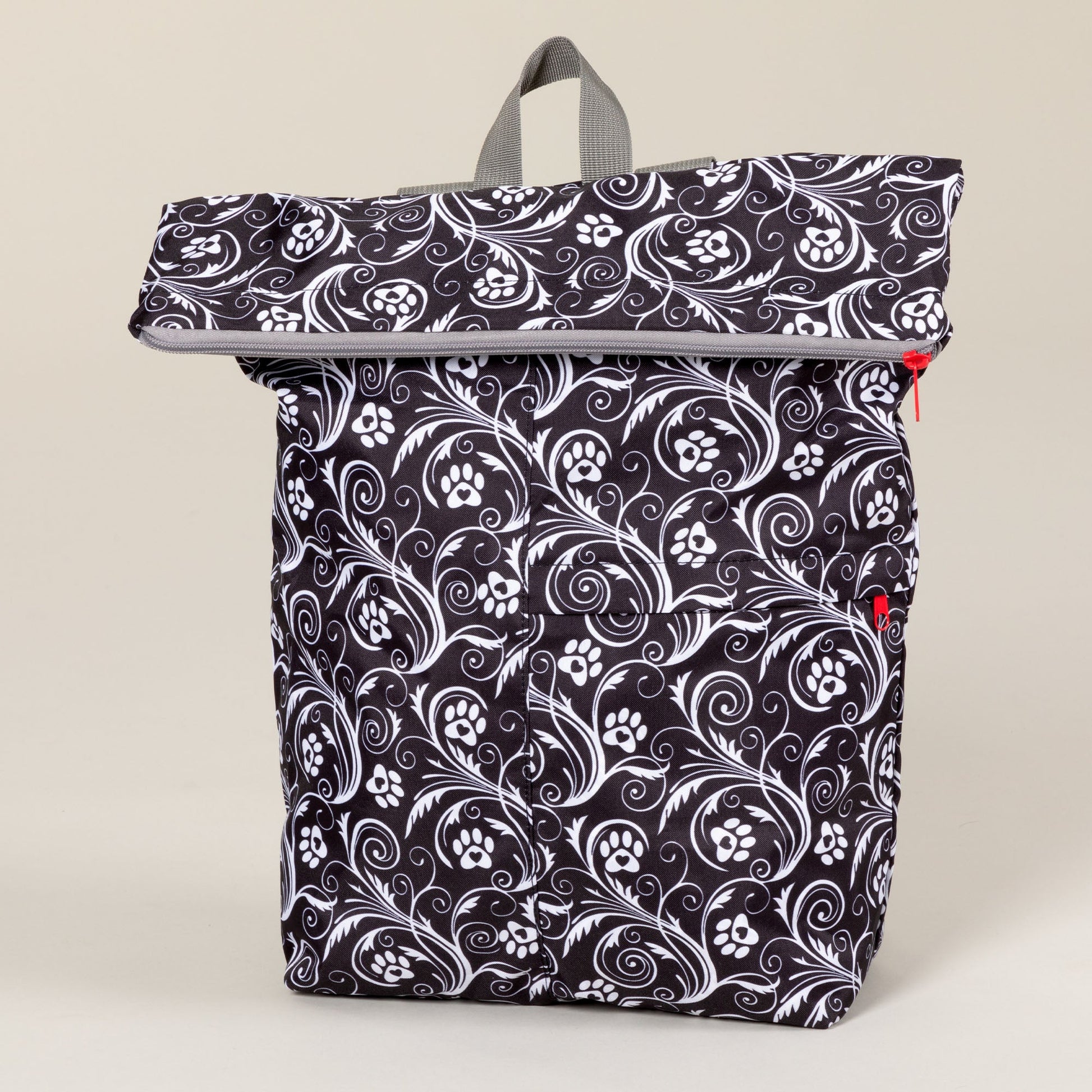 On the go? Ready for an adventure with your furry friend? This backpack is great for holding all your essentials. With a large interior pocket and small exterior pocket your possessions are easily accessible to you while on the move. Fold into whatever size bag you desire - each style provides a loop handle for easy carrying. Bold patterns on this bag make it fun and functional.