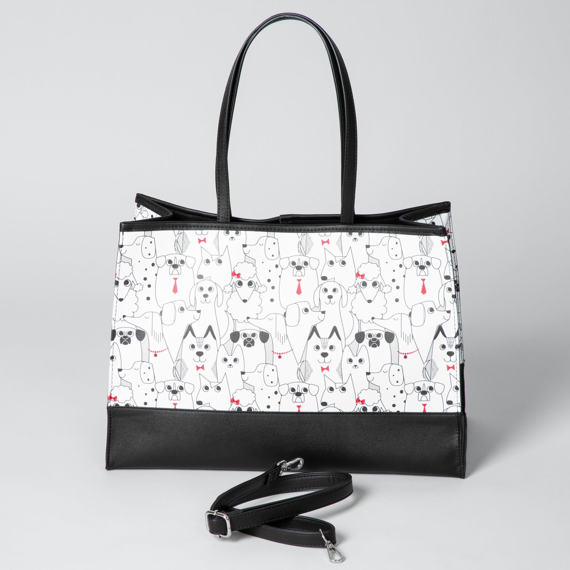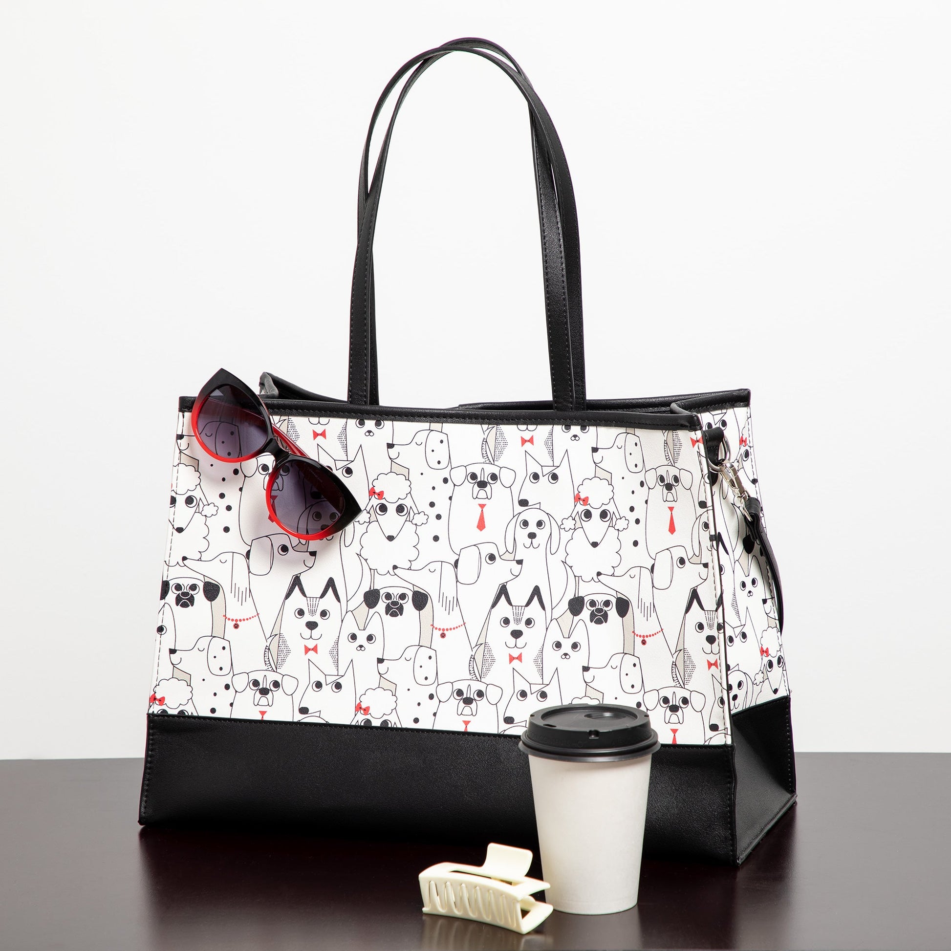 With an adjustable and detachable strap this pet perfect tote is ready to go wherever you're going. Studs on the bottom of the tote allow it to sit upright without falling over, while the interior phone bag keeps your phone safe and sound all while showing off your pet pride.