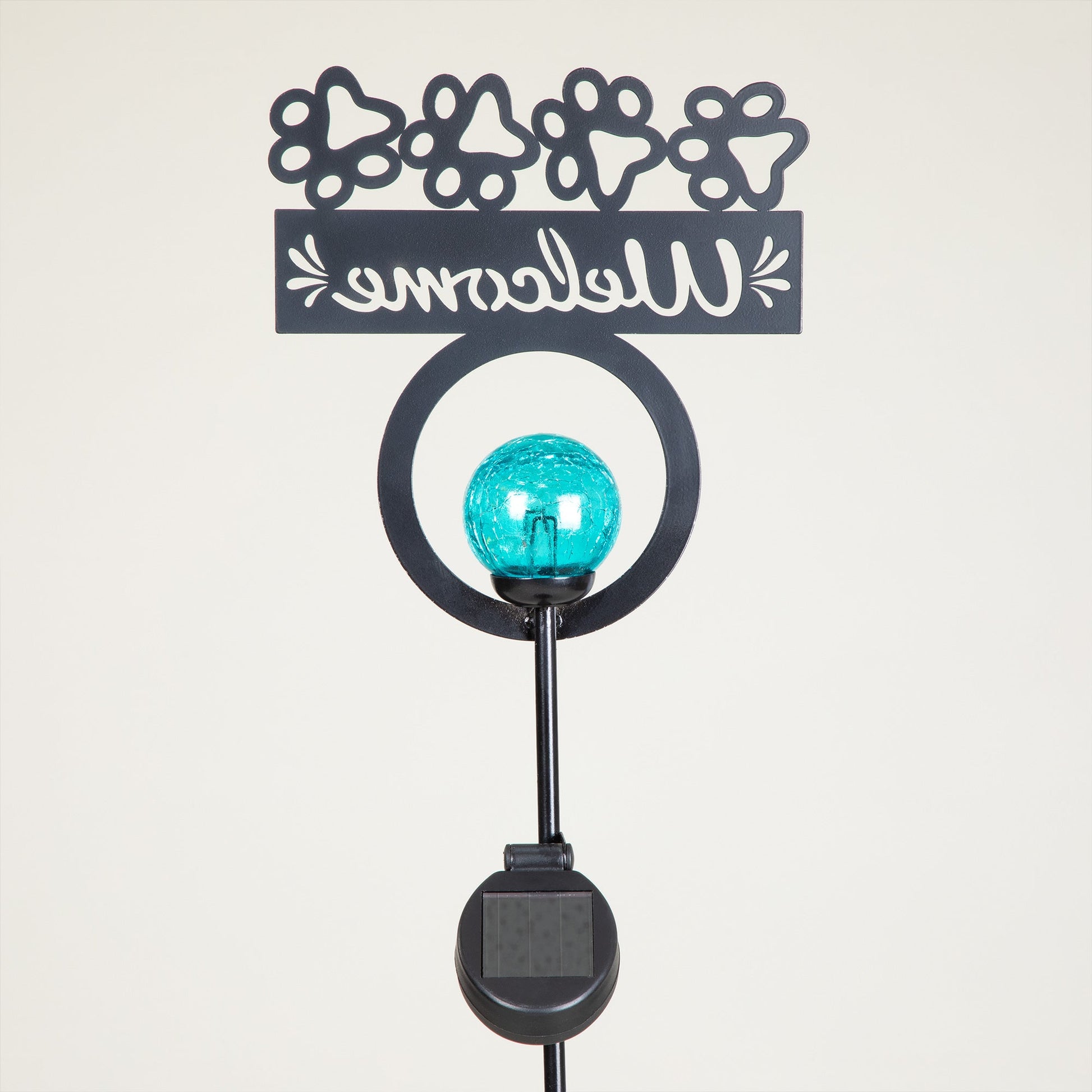 Your home will be even more welcoming with this paw print welcome sign. Greet people and pets alike with the blue and green solar light that can be staked outside your door or in your garden or anywhere you would like people to feel at home.