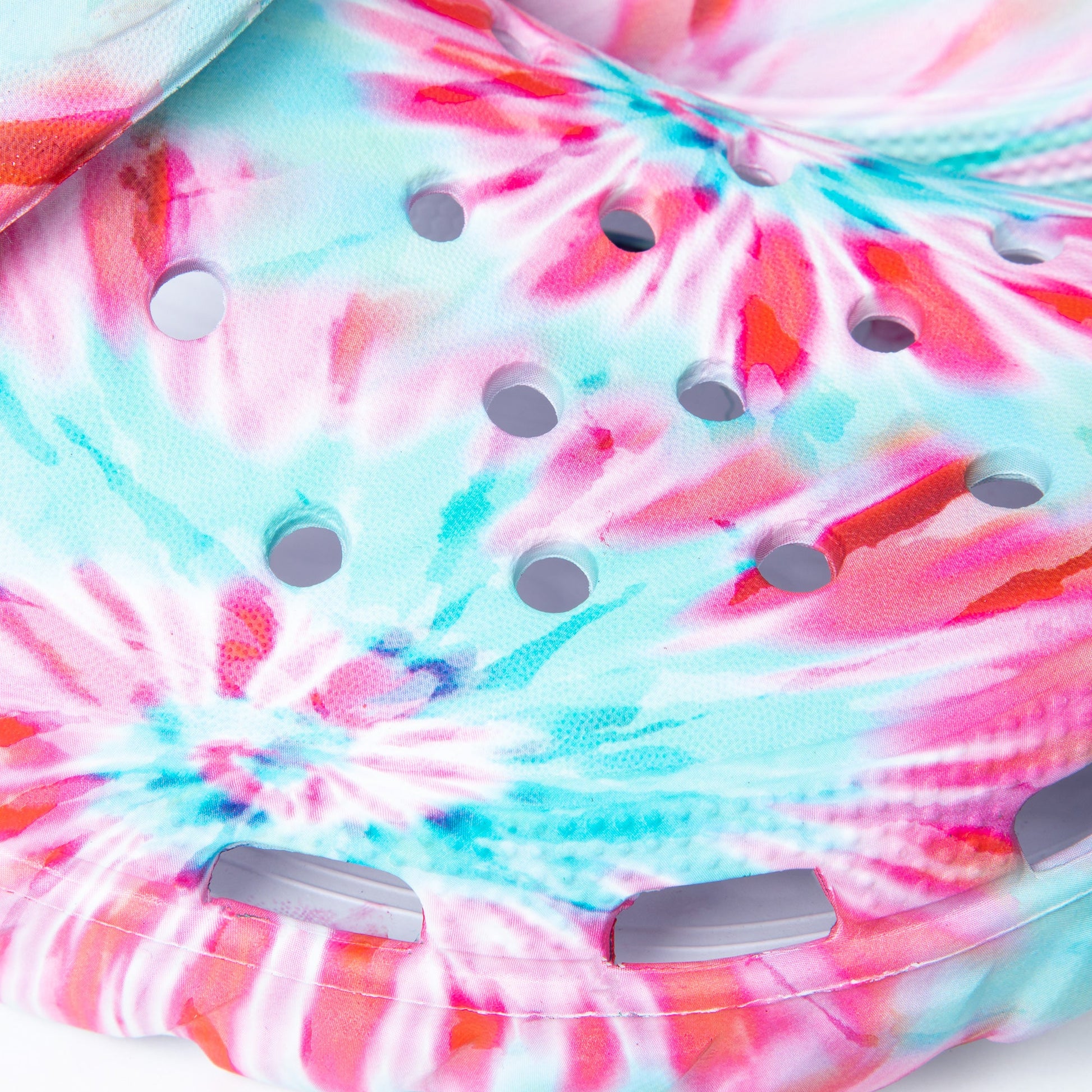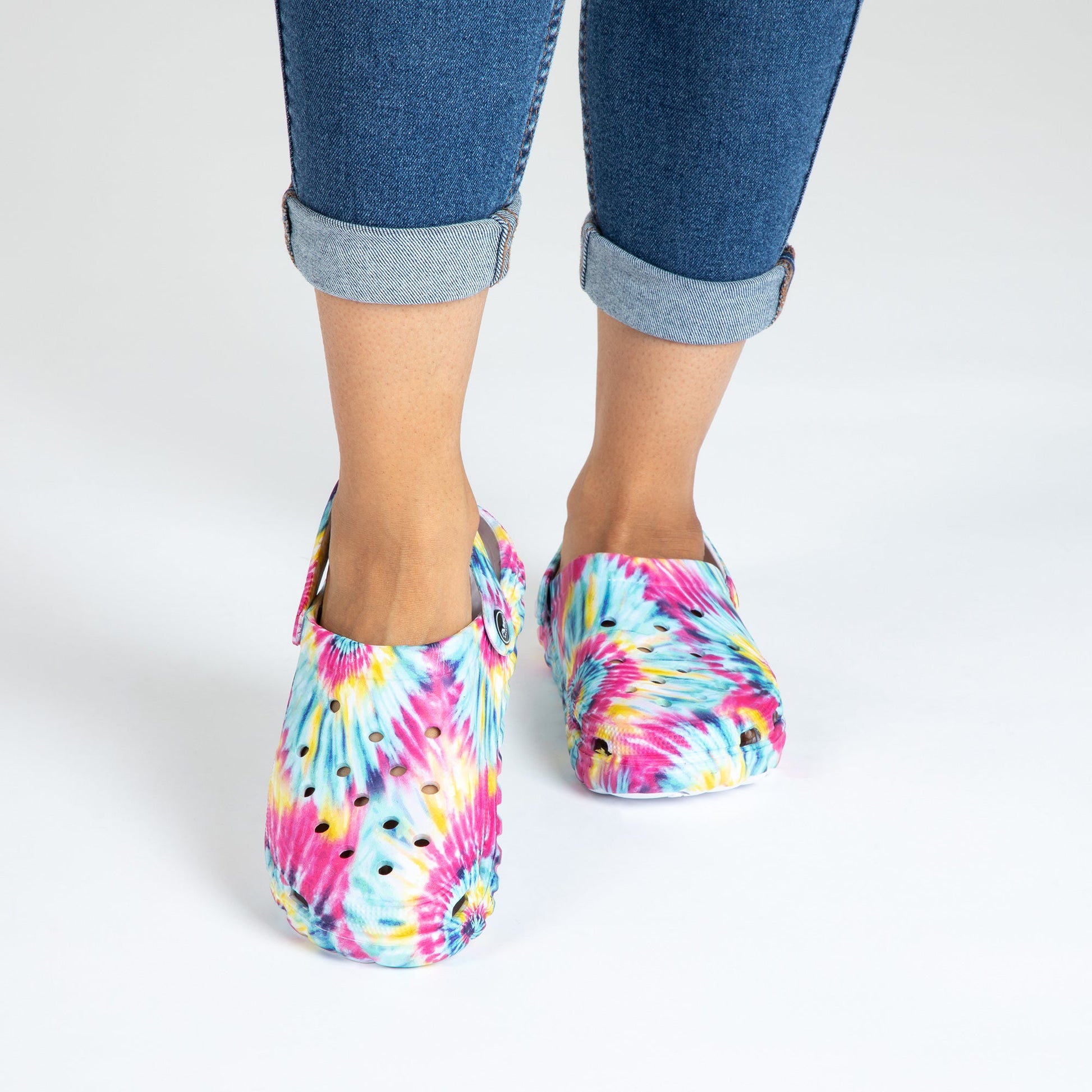 Colorful and stylish, the tie dye clogs that feature a back strap are fashionable spring footwear that will put some pep in your step! With air holes on top, this shoe allows for breathability, while the strap insures a secure fit. Coming in three fantastic tie dye color variations, there is sure to be one that resonates with your style.