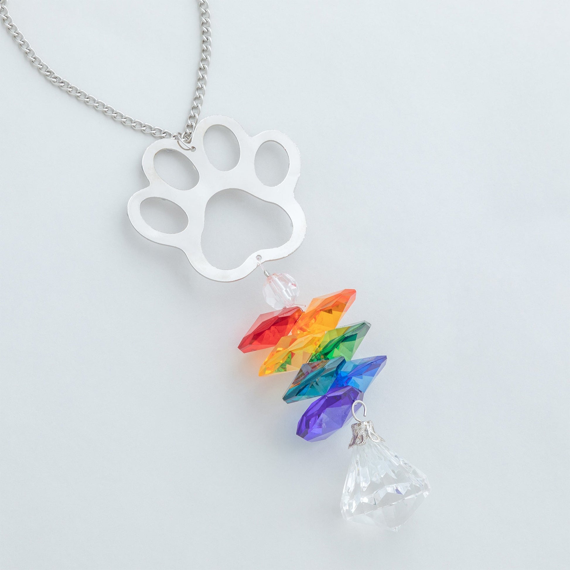 After your best friend crossed the rainbow bridge, you honor their memory in ways big and small. Perfect for hanging on your tree or anywhere in your home year-round, each silver ornament with rainbow colored beads is a beautiful way to keep your furry friend's memory close.