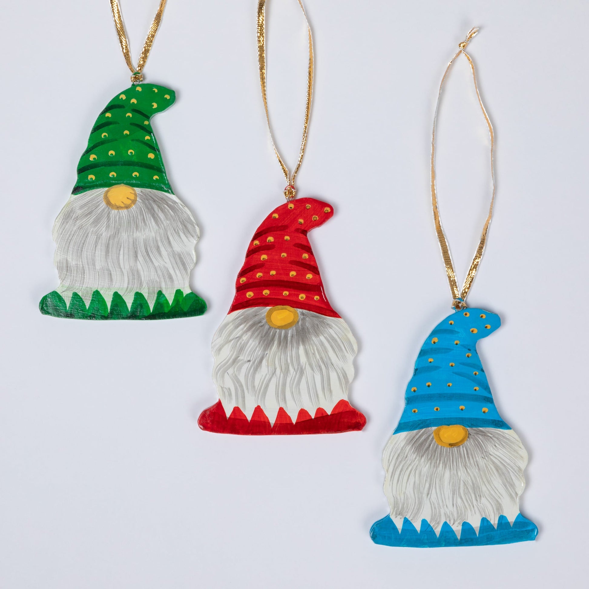 Handpainted in blue, red, or green, each darling bearded gnome adds whimsy to your Christmas tree! Made with wood and featuring one-of-a-kind hand-painted designs, it's a sweet ornament on its own or paired with the other colors.