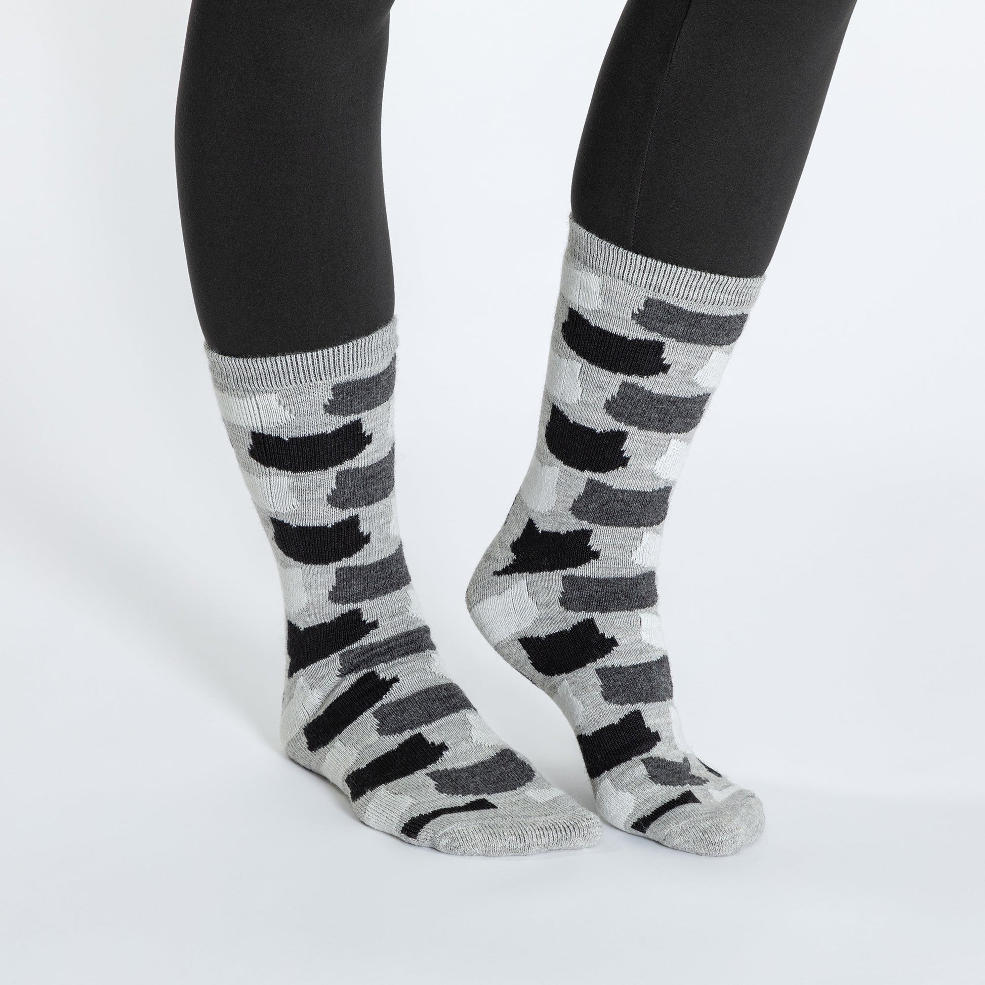 Incredibly soft, moisture-wicking, and the perfect temperature for your feet, this alpaca pair of women's socks is a luxurious addition to your sock drawer! Patterned in colorful feline faces and made to last for years to come.