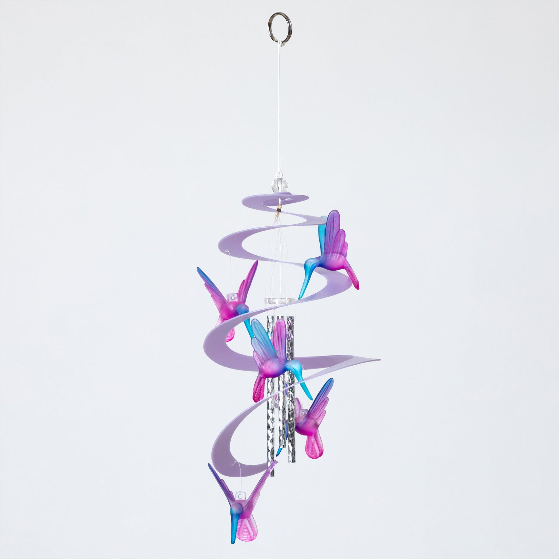 Embrace the soothing melodies that dance through the air as the gentle breeze caresses this purple, pink and blue ombre wind chime. Crafted with precision, each hummingbird and metal tube is tuned to perfection, creating a symphony to enjoy for years to come!
