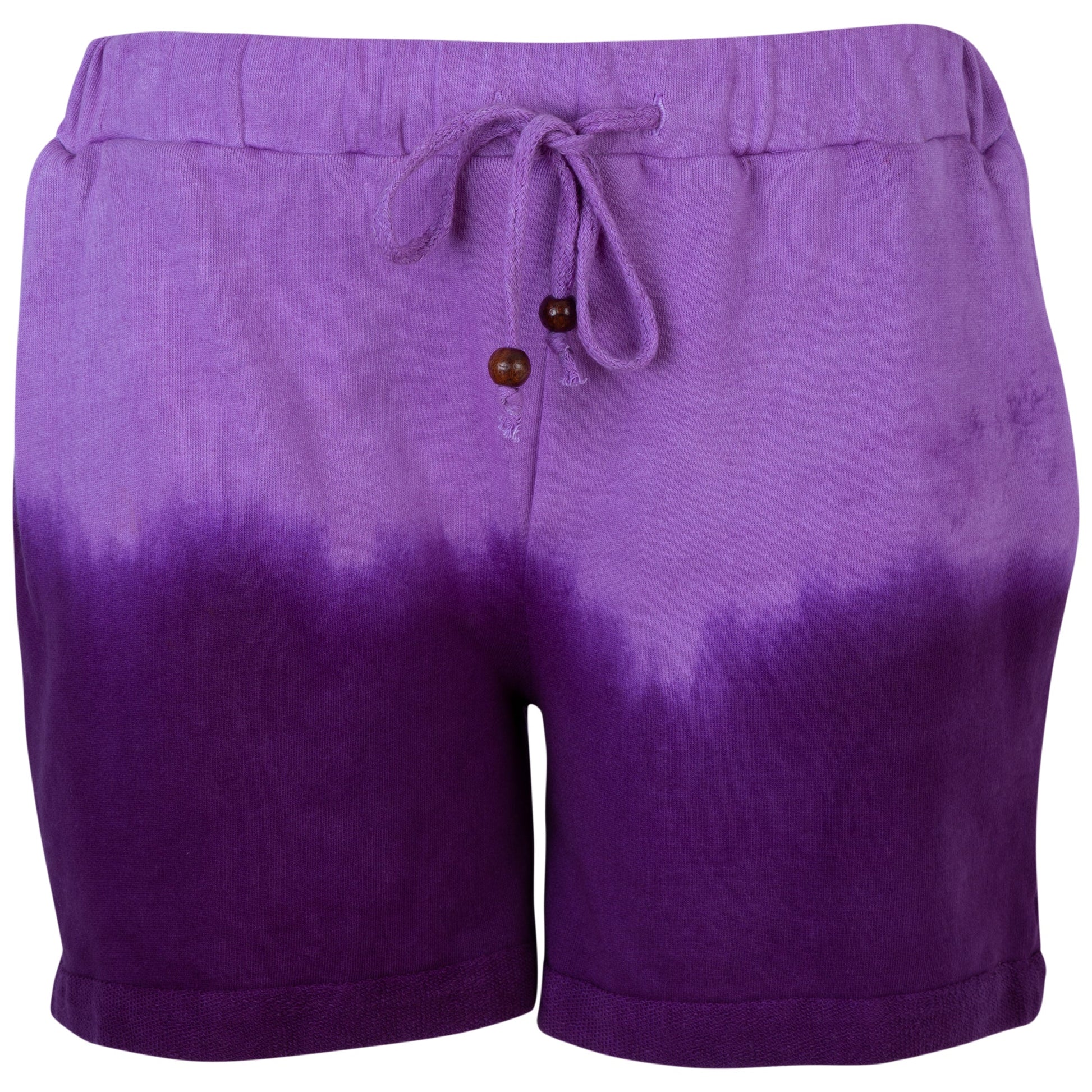 Drenched in colorful hues and a stylish ombre effect, this casual cotton pair offers color and comfort to your day! Made with drawstring elastic waist for the perfect fit, and accented with details like wooden beads on the drawstring and folded hems. The perfect warm weather wear!